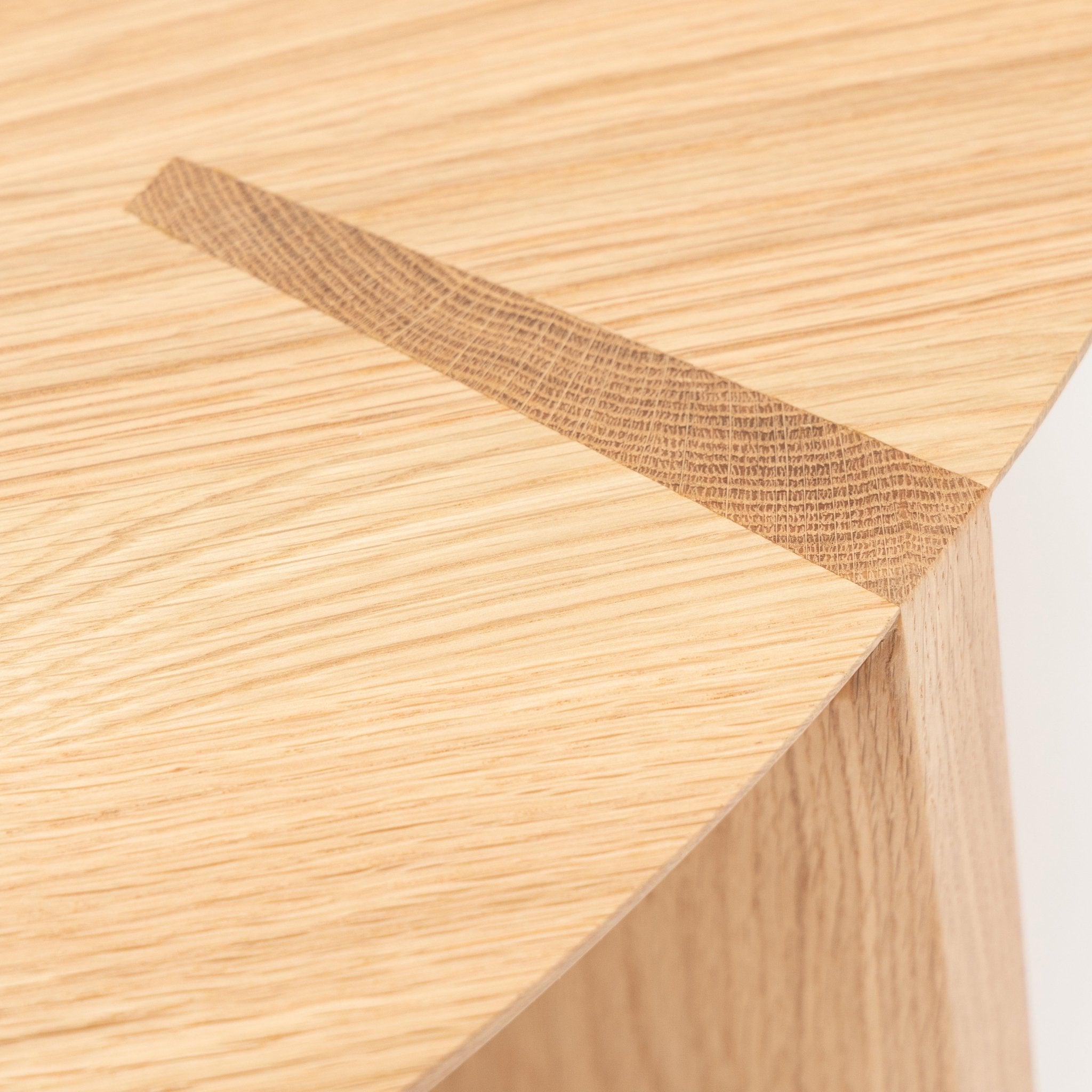 "كايل" كلمة نرويجية تعني "إسفين"، وهي تقنية ربط استخدمها ستاين آس ببراعة في طاولة القهوة الخشبية البسيطة هذه. تبدو أرجل الطاولة الأربعة، الشبيهة بالألواح، وكأنها تتقاطع مع سطح الطاولة الدائري بزوايا مختلفة، وهي ميزة تتجلى في التقاء حبيبات الخشب.