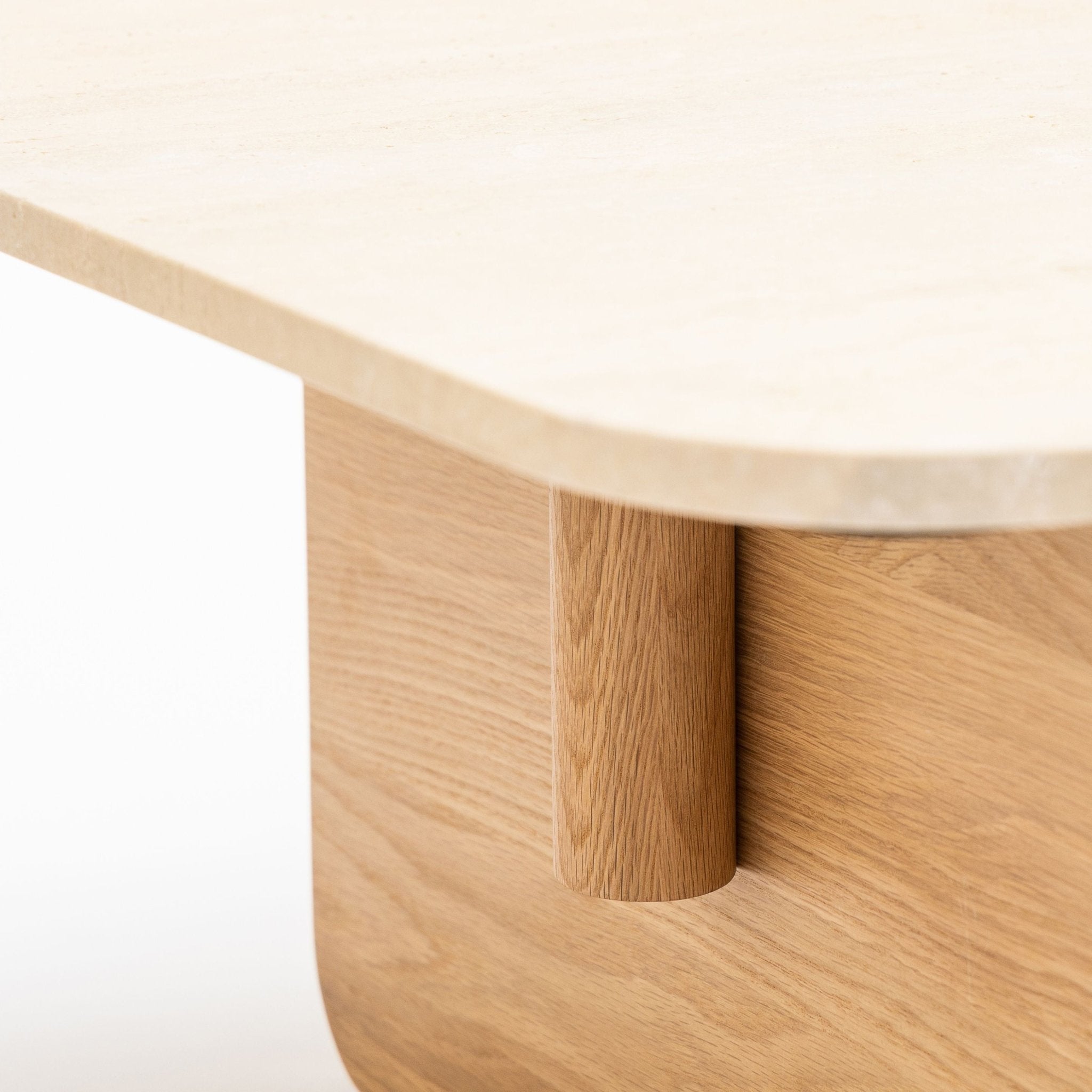 طاولة قهوة محورية - خشب البلوط الفاتح والترافرتين