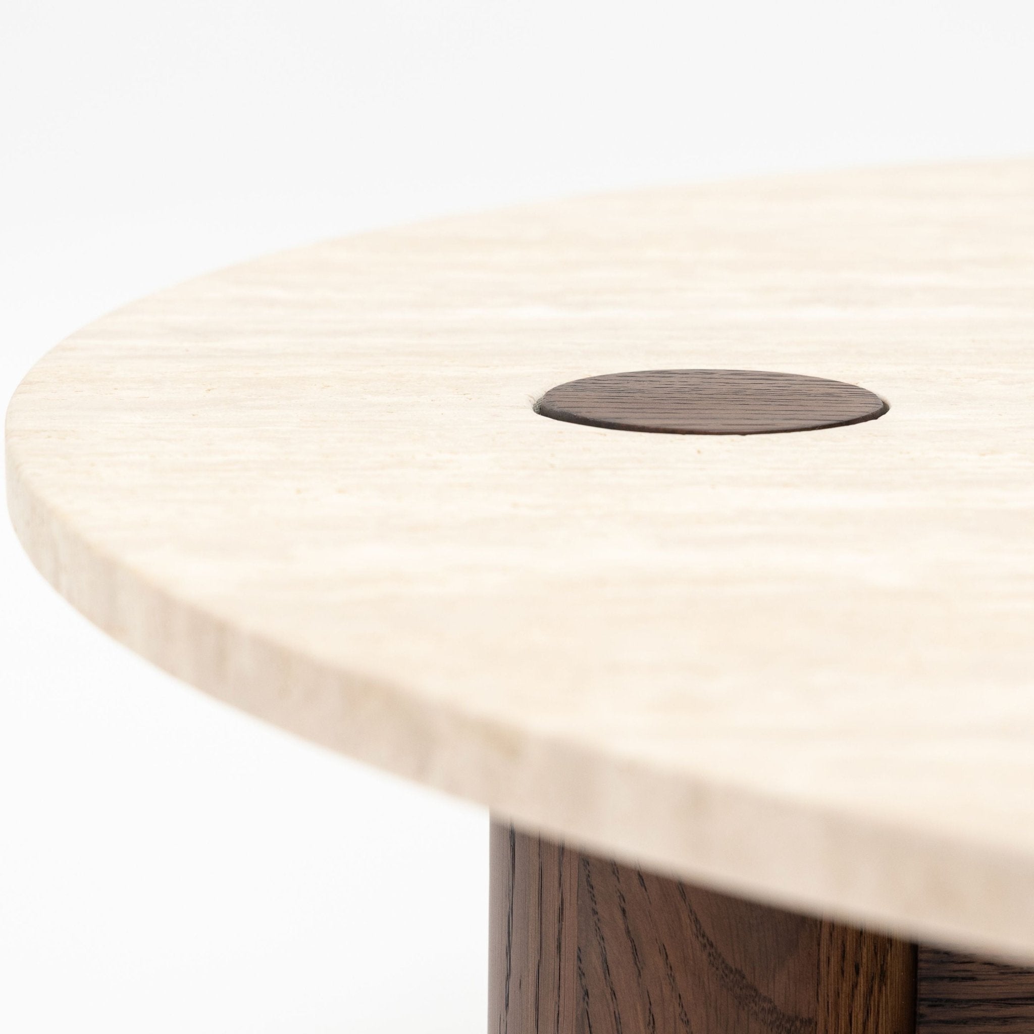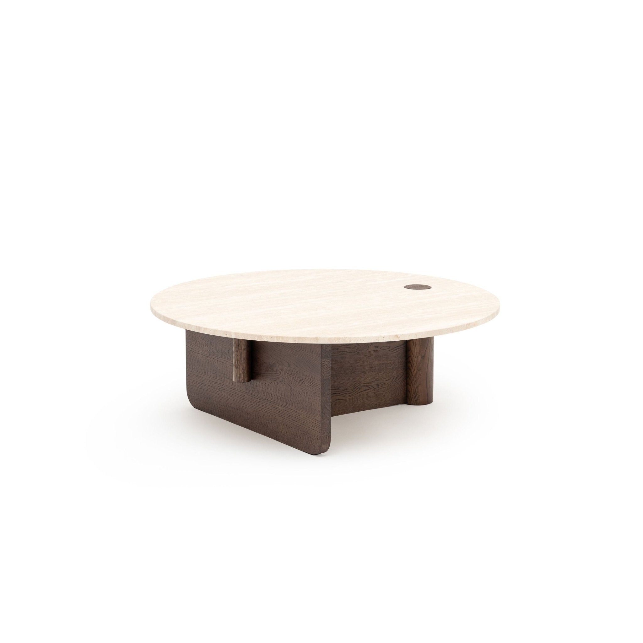 طاولة قهوة دائرية محورية - خشب بلوط إسبريسو وحجر ترافرتين