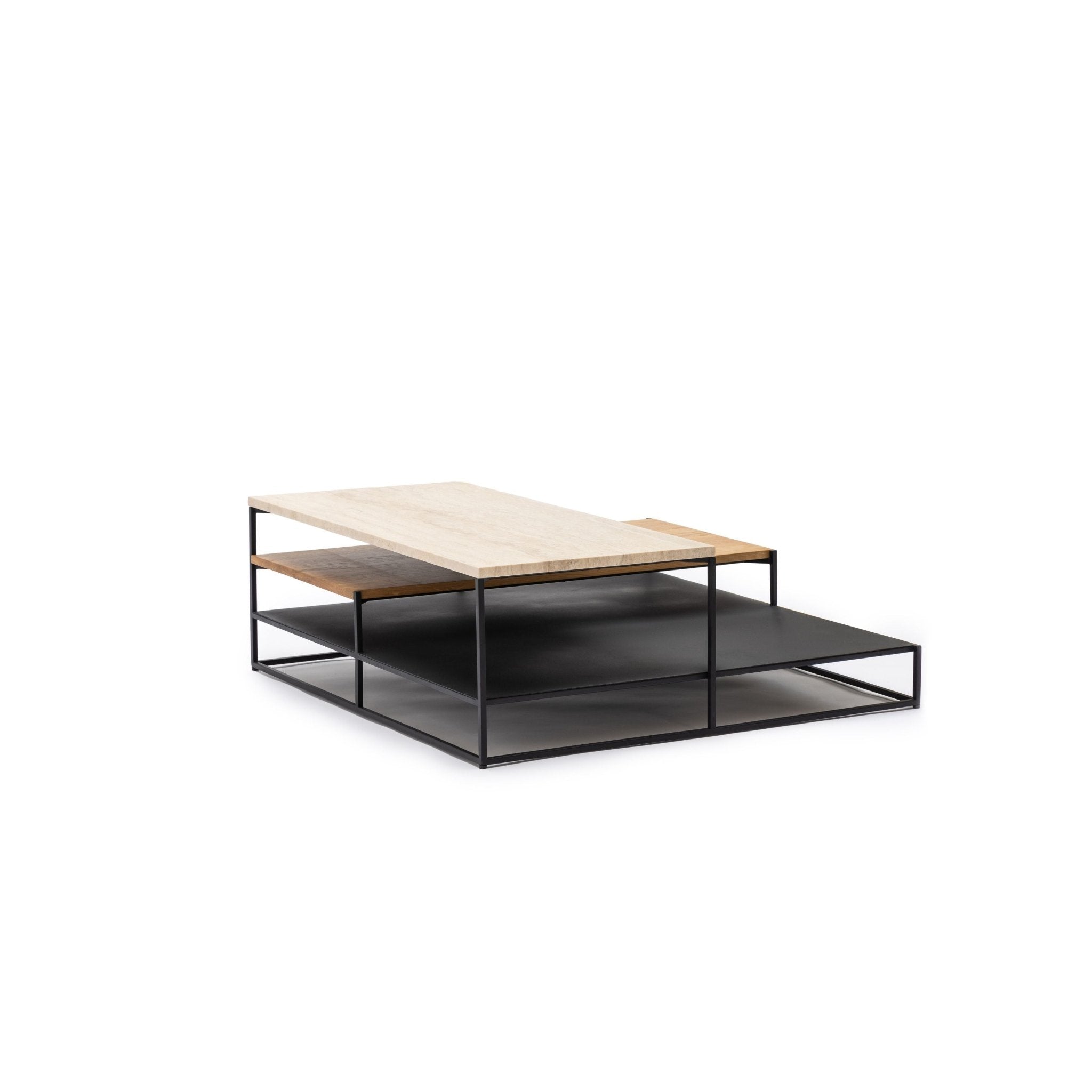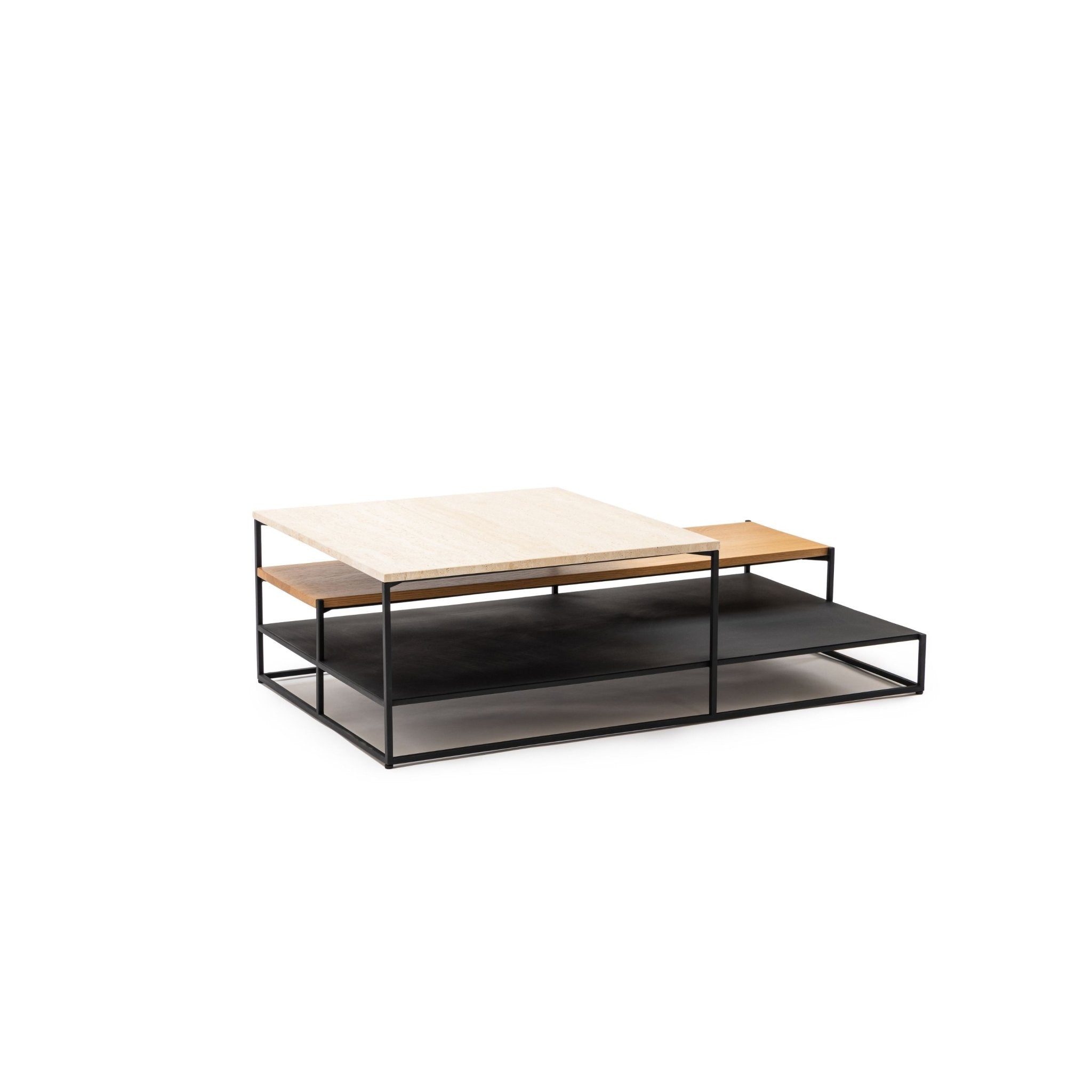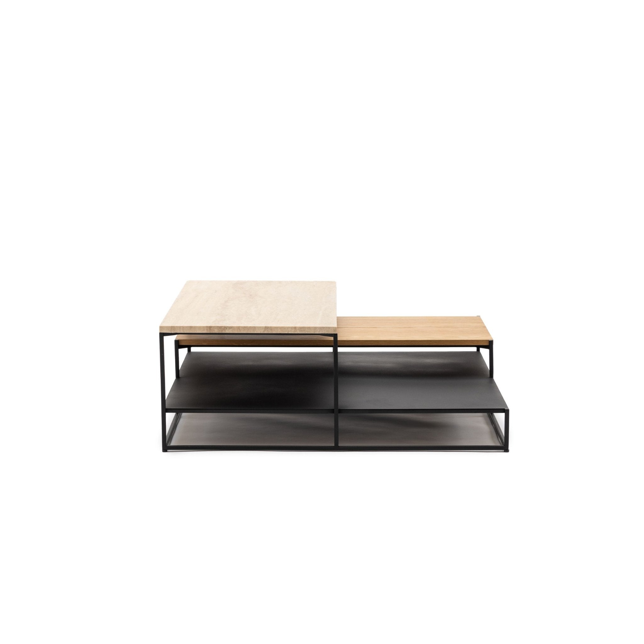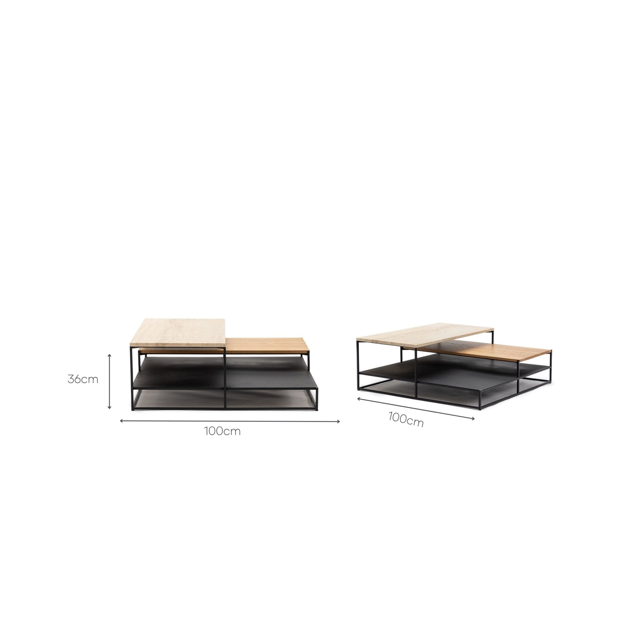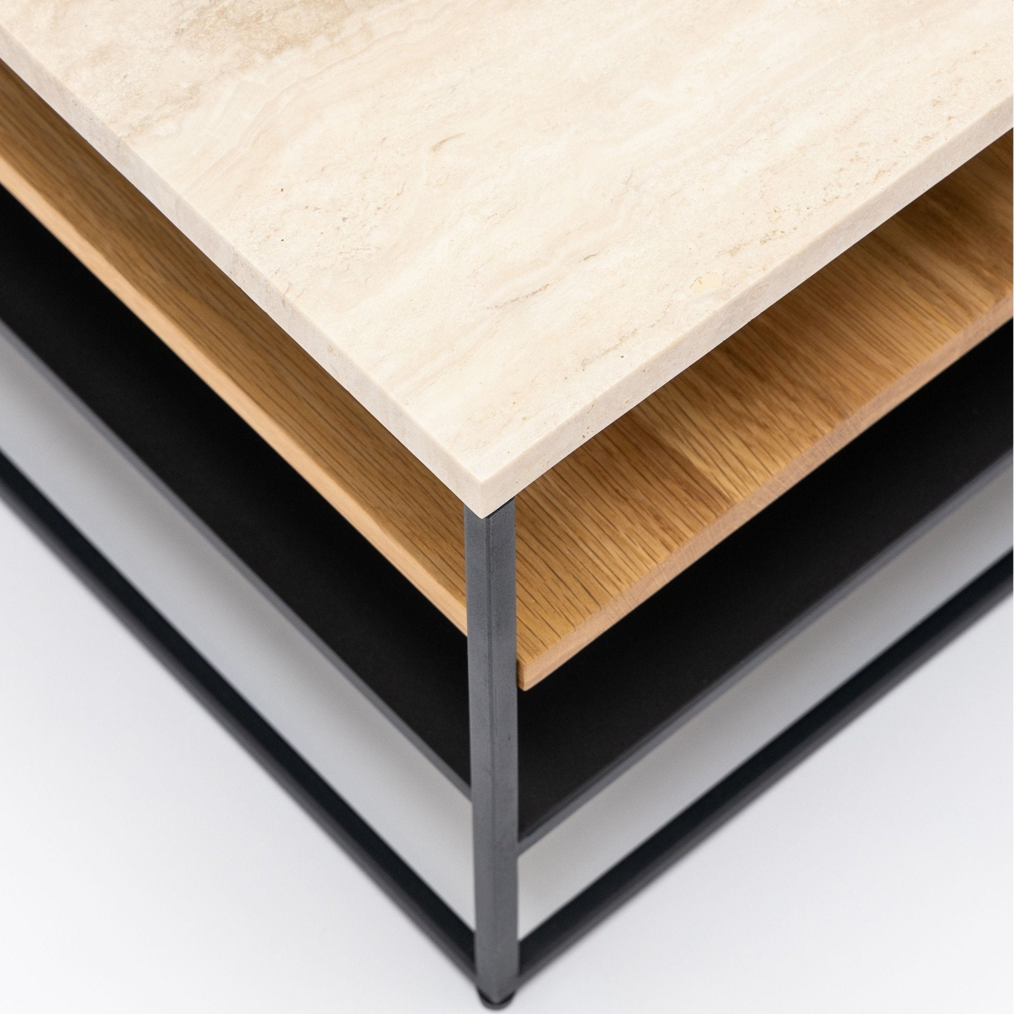 طاولة قهوة بوديوم - ترافرتين وبلوط فاتح