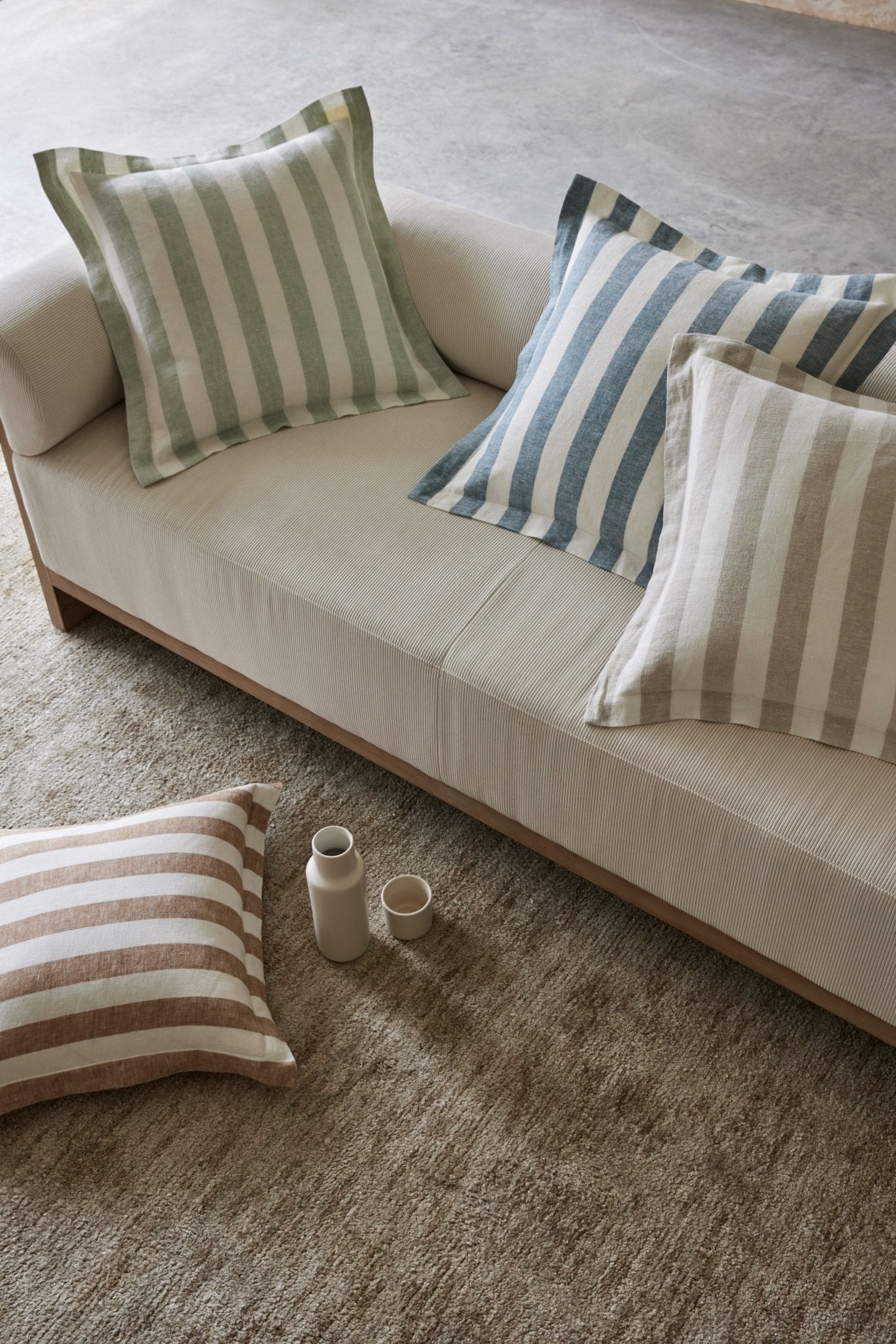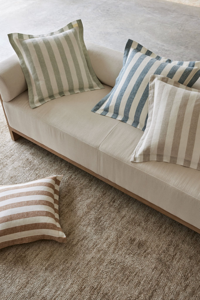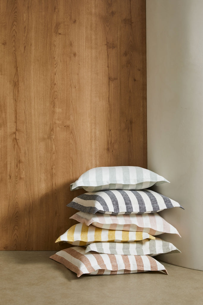 تتميز وسادة لوكا بشريط مرح مصبوغ بخيوط بطول أربعة سنتيمترات، وهي مصنوعة من الكتان بنسبة 100٪، مصدرها إيطاليا وفرنسا.