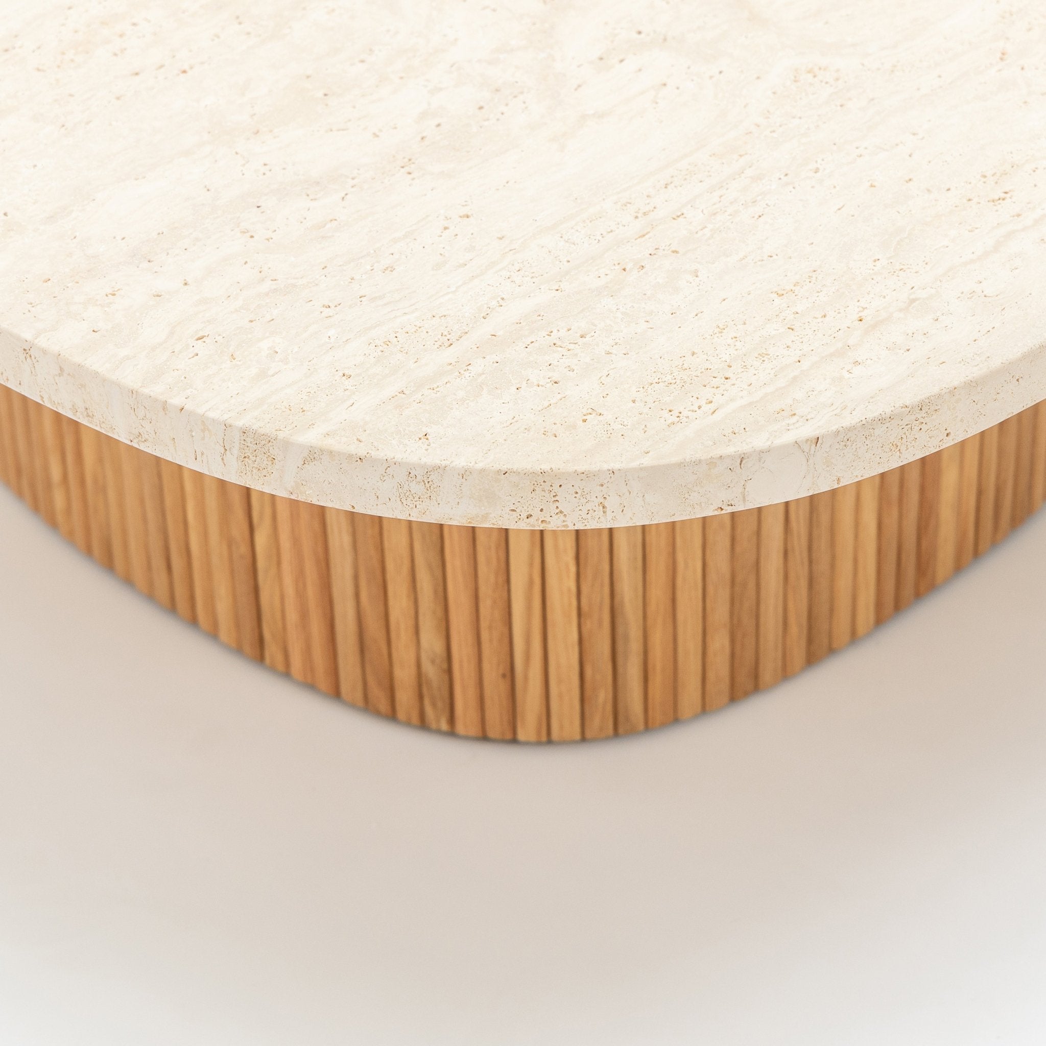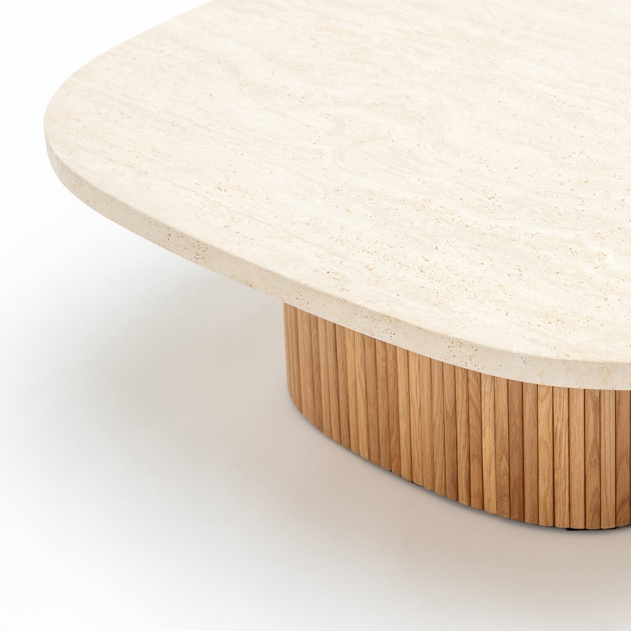 طاولة قهوة جيون 95 - خشب البلوط الفاتح والترافرتين