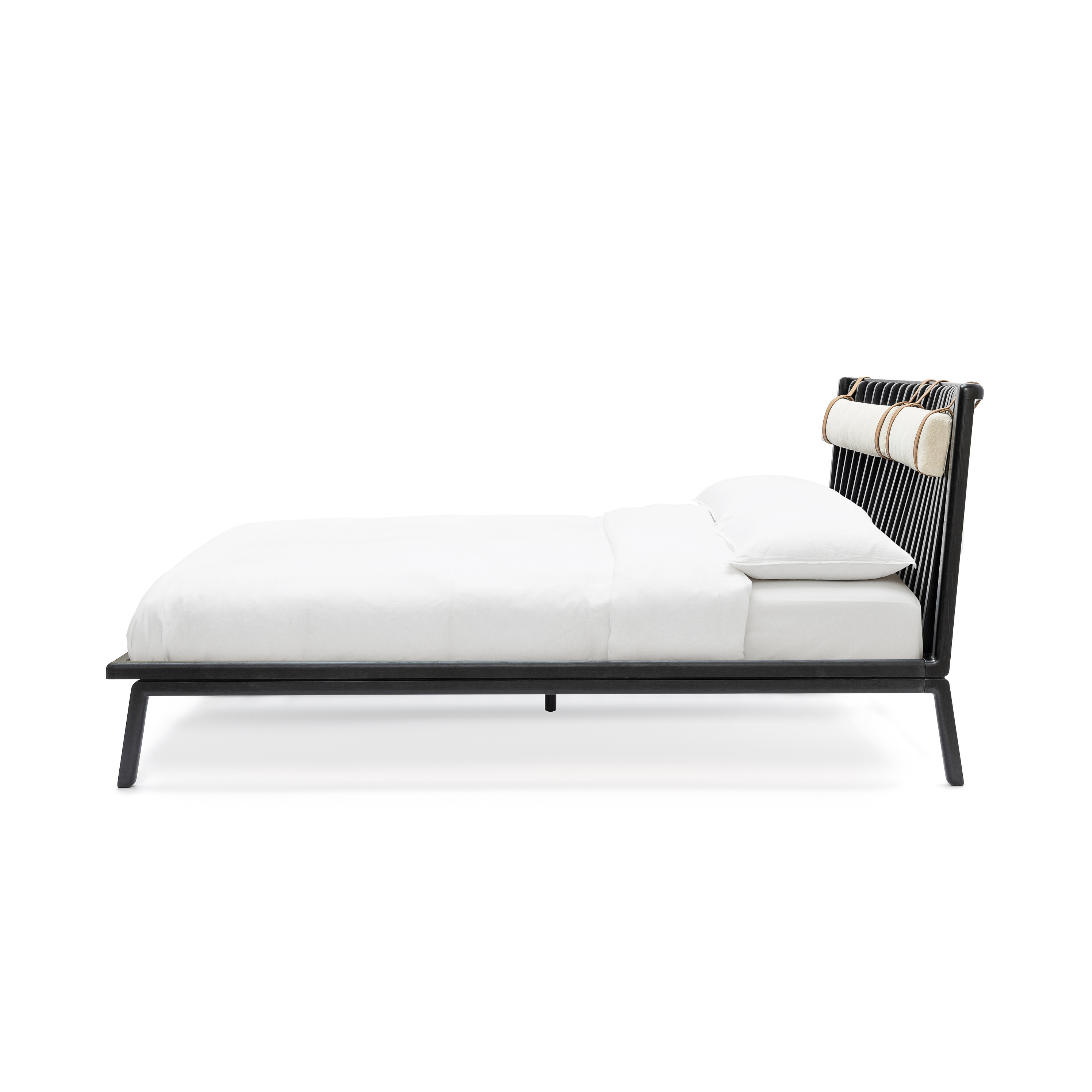 يتميز سرير سينسو ببراعة الصناعة التقليدية وحس التصميم العصري. سرير مستوحى من المغزل، مصنوع من الخشب الصلب والوسائد مع أحزمة جلدية وتنجيد من الكتان، يضفي لمسة عصرية من منتصف القرن على غرفة نومك. اختر لوح رأس السرير مع أو بدون وسائد لإضفاء لمسة طبيعية وراحة مثالية في منزلك.