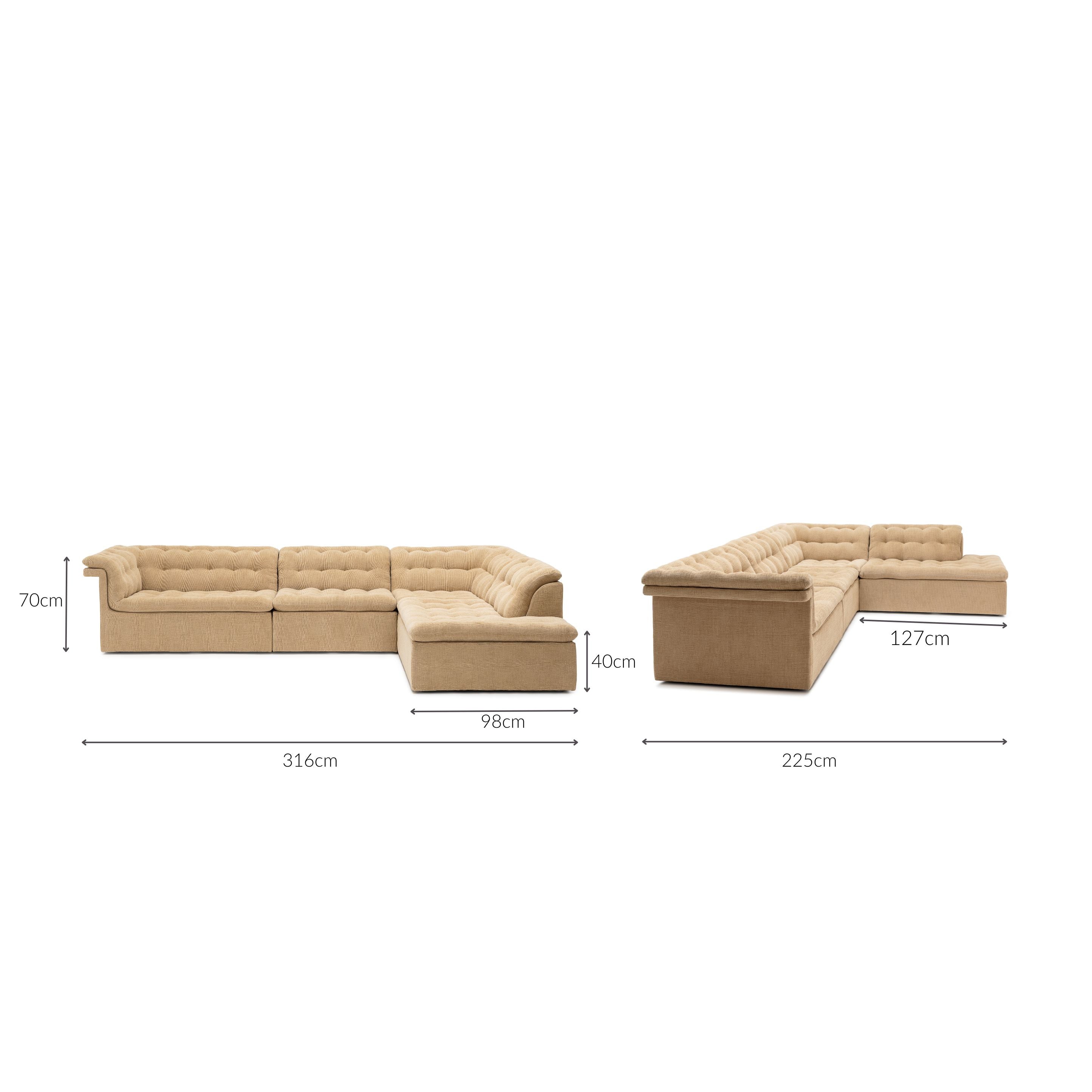 | أبعاد | 316 سم طول × 225 سم عرض × 70 سم ارتفاع |