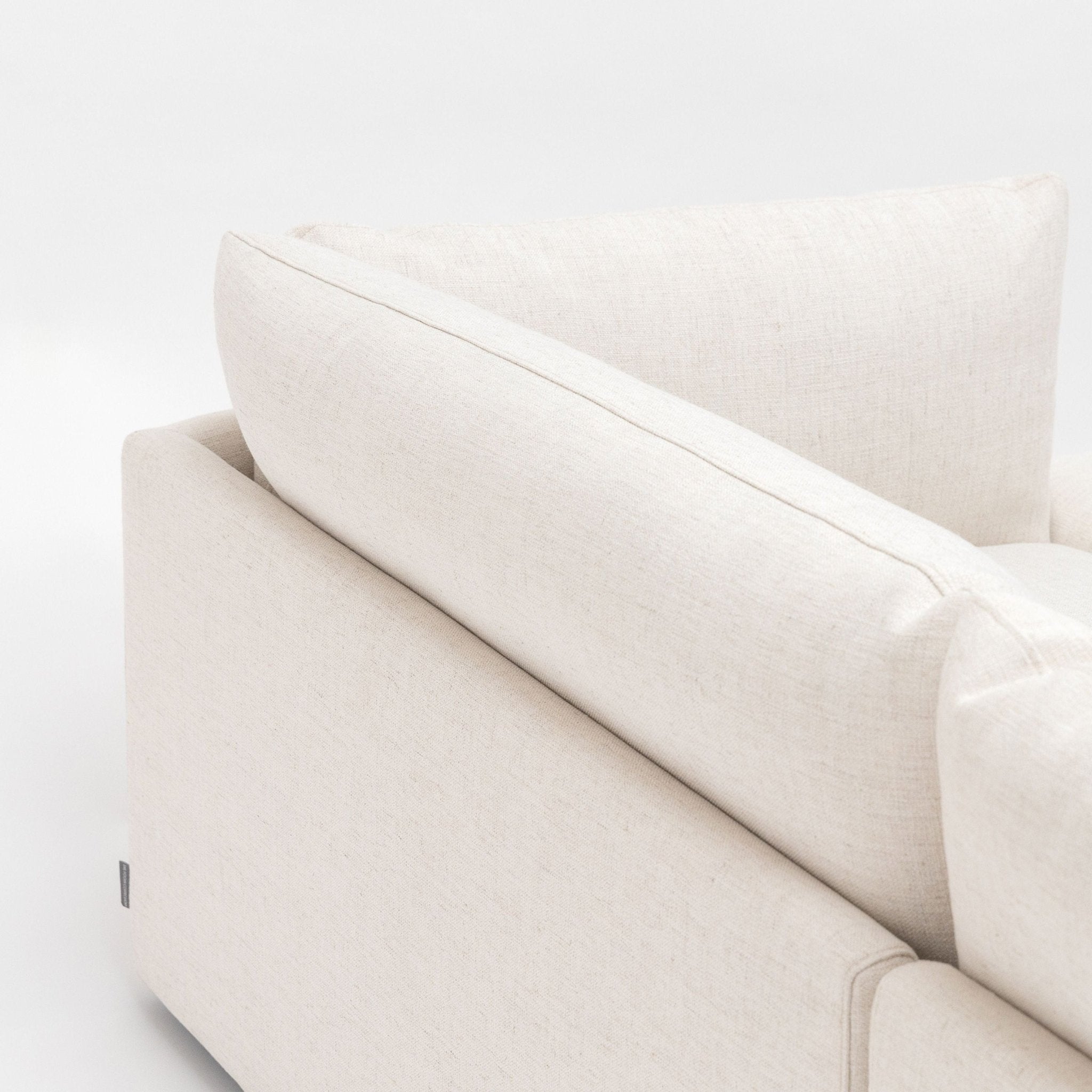 اجمع مساحاتك المفضلة مع "أيفري"، وهي مجموعة جديدة من الأثاث العصري تتيح لك تصميم جلسة مريحة وأنيقة. هذه المجموعة المعيارية المريحة، الجاهزة للتكيف مع أي مساحة، تعدك بالراحة والتنوع بفضل منحنياتها الرقيقة وقاعدتها العائمة الأنيقة. يضفي تنجيد "أيفري" الفاخر باللون الأبيض الرملي ملمسًا راقيًا، بينما تضمن الوسائد الممتلئة المصنوعة من الإسفنج عالي الكثافة والحشوة البوليسترية راحة فائقة. تجمع مجموعة "أيفري" بين الحداثة المذهلة واللمسة الكلاسيكية الجريئة.