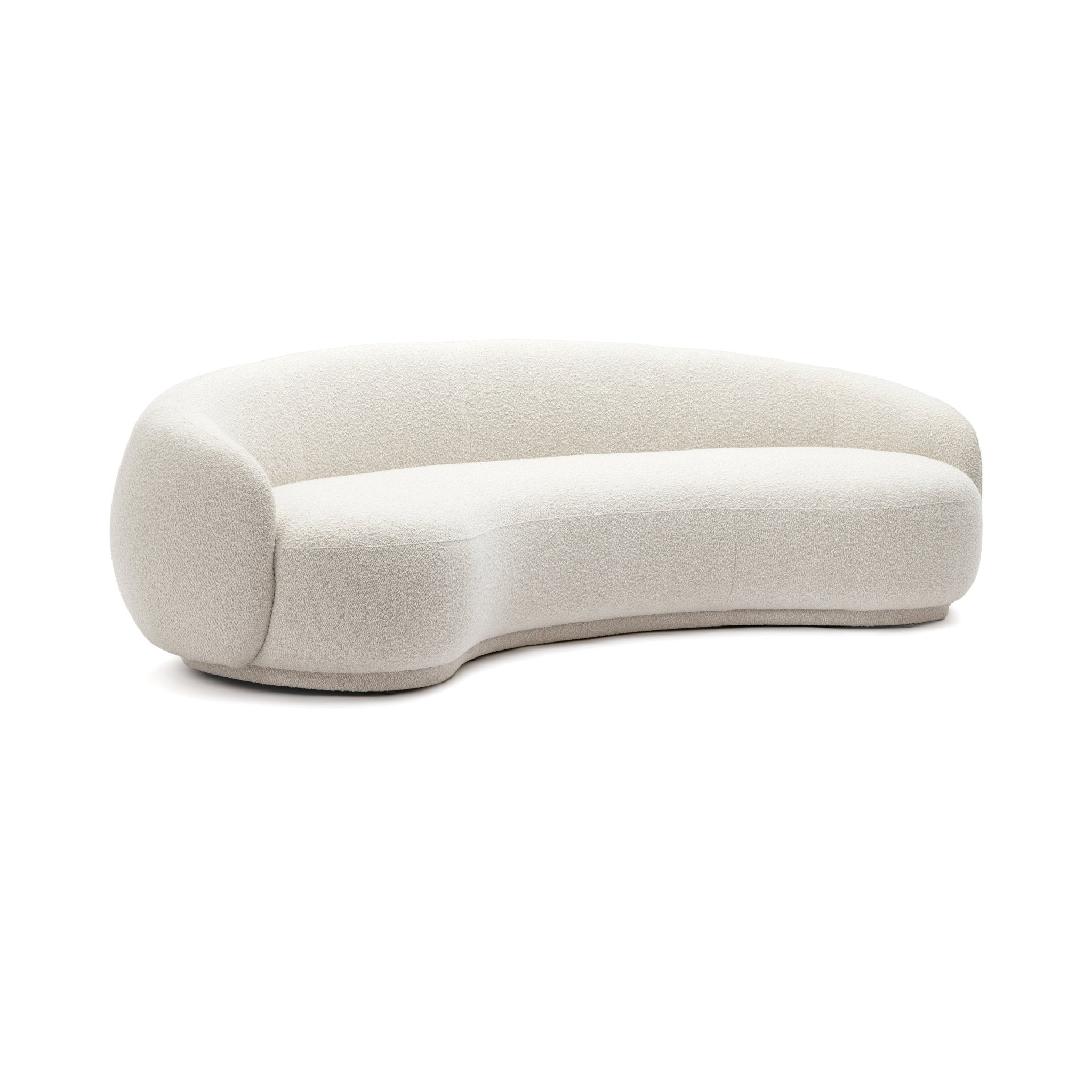أريكة كاجو هي أريكة منحنية مميزة بزواياها المستديرة وظهرها المميز. هذه الأريكة العصرية مغطاة بقماش بوكليه عاجي غني. تُجسّد هذه الأريكة الحرفية الأصيلة والأناقة العصرية، حيث استوحي شكلها الدائري وقماشها من تصميمات منتصف القرن الماضي الكلاسيكية، ولكن بلمسة عصرية. تضمن لك وسادة الإسفنج عالية الكثافة في المقعد ومسند الظهر راحة فائقة.