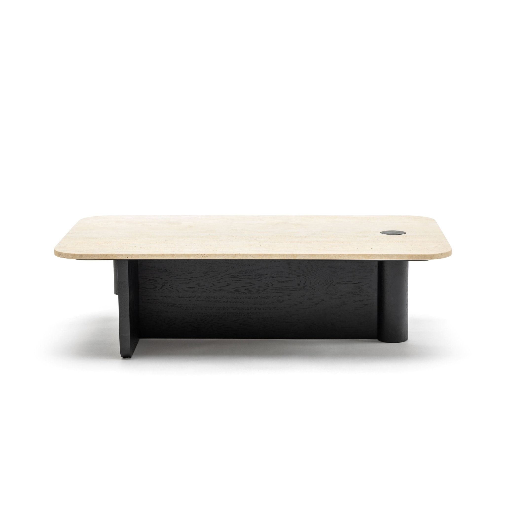 طاولة قهوة محورية - خشب البلوط الأسود والترافرتين