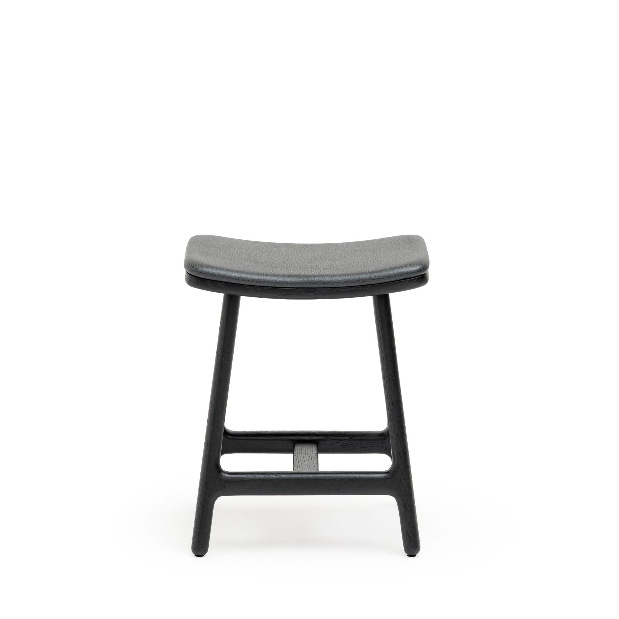 كرسي منخفض غريب - جلد من خشب البلوط الأسود والفحمي