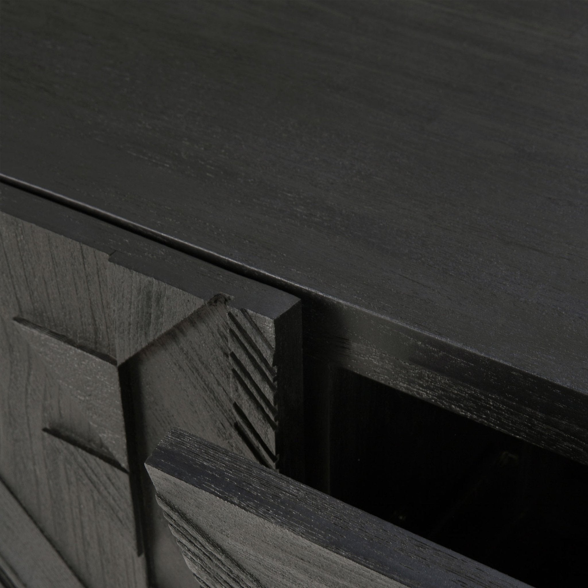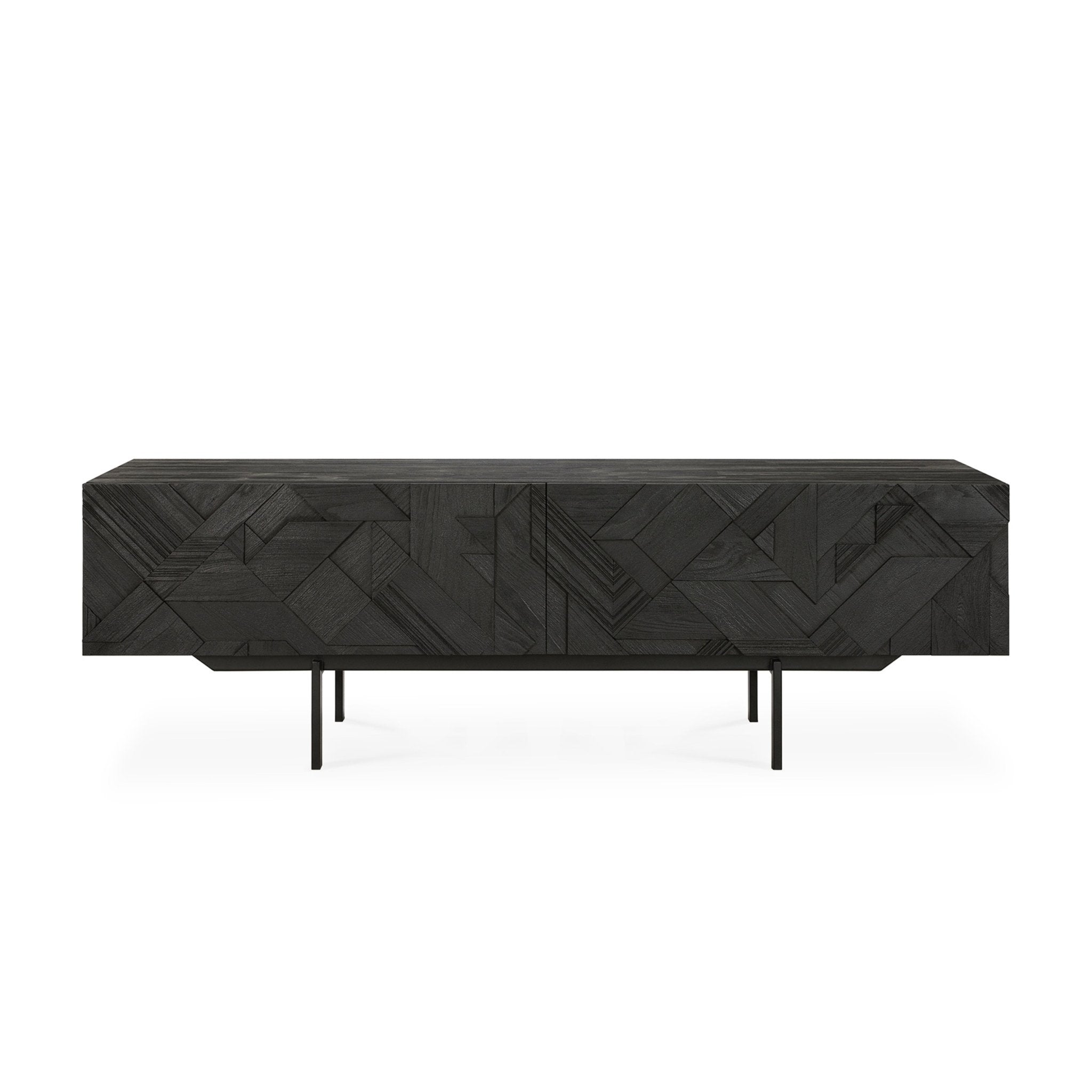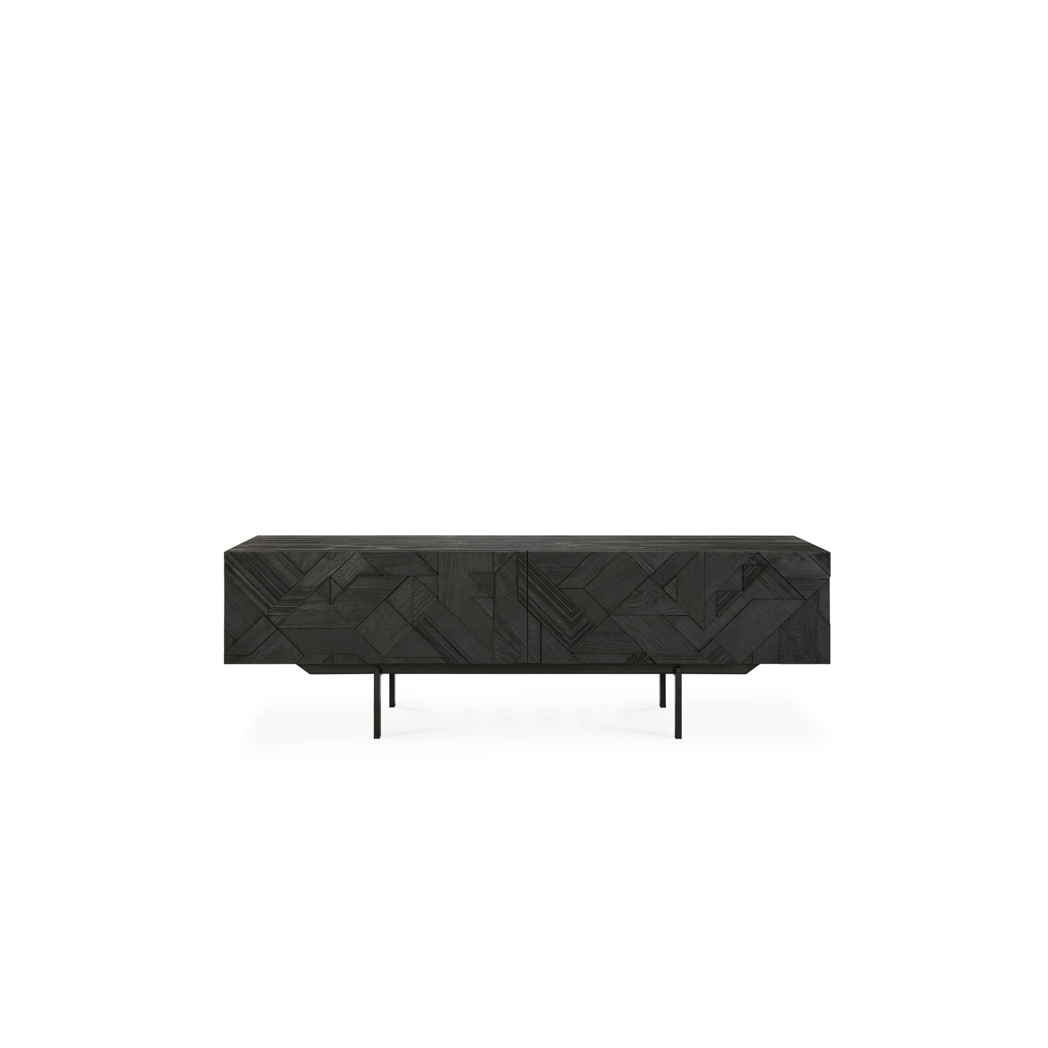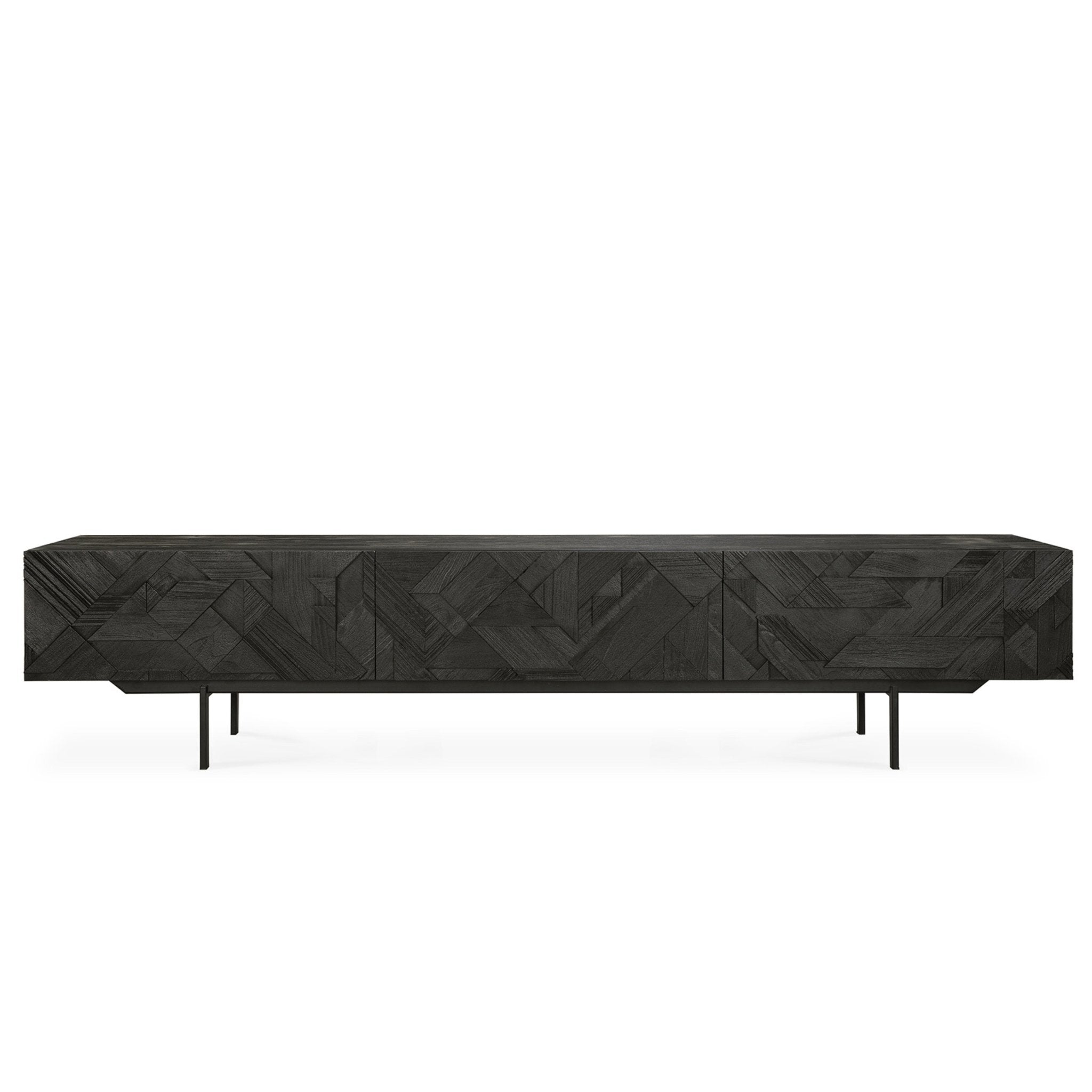 في سعيه لإضافة الحركة إلى السطح، بدأ مصممنا ألان فان هافر في وضع طبقات ودمج الأشكال المثلثية. وقبل أن يدرك ذلك، كان قد ابتكر تركيبة مثيرة للاهتمام من خشب الساج. وانتهى بنا الأمر بتنظيف السطح بالفرشاة لإبراز الحبوب والتأكيد بشكل أكبر على الشعور بالحركة. وقد استُخدم هذا النمط في الأصل في خزانة جانبية Teak Graphic الشهيرة لدينا، والآن يمكن ترجمته بشكل مثالي إلى خزانة تلفزيون جديدة.