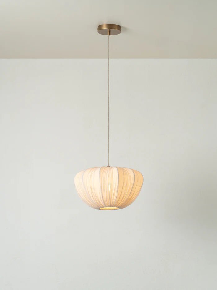 يجمع مصباح أوستريا المعلق الصغير بين الكلاسيكية والحداثة، وهو متعدد الاستخدامات بشكل رائع، ويتناسب مع الديكورات القديمة والحديثة على حد سواء. يتميز بتصميمه الناعم، حيث يلتف الكتان الأبيض الكريمي ذو الملمس المميز حول إطار منحني. يبدو المصباح أنيقًا حتى في الظلام، ويشع بضوء دافئ ومريح في الليل. معلقًا بواسطة سلك قابل للتعديل من الكتان بلون الأوتاميل، يبدو المصباح لافتًا للنظر عند تعليقه ضمن مجموعة من المصابيح.