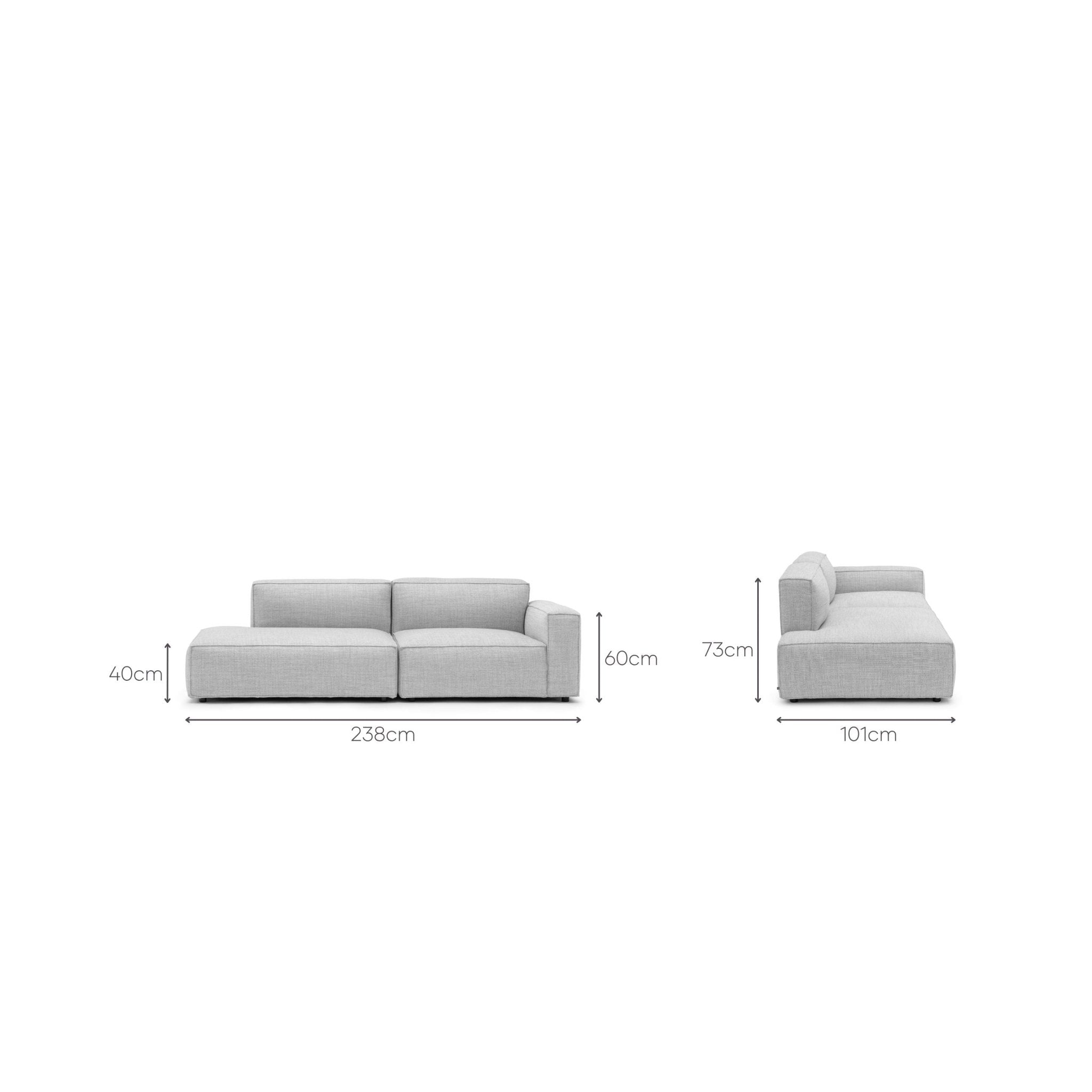 أبعاد  73 سم ارتفاع × 238 سم عرض × 101 سم عمق