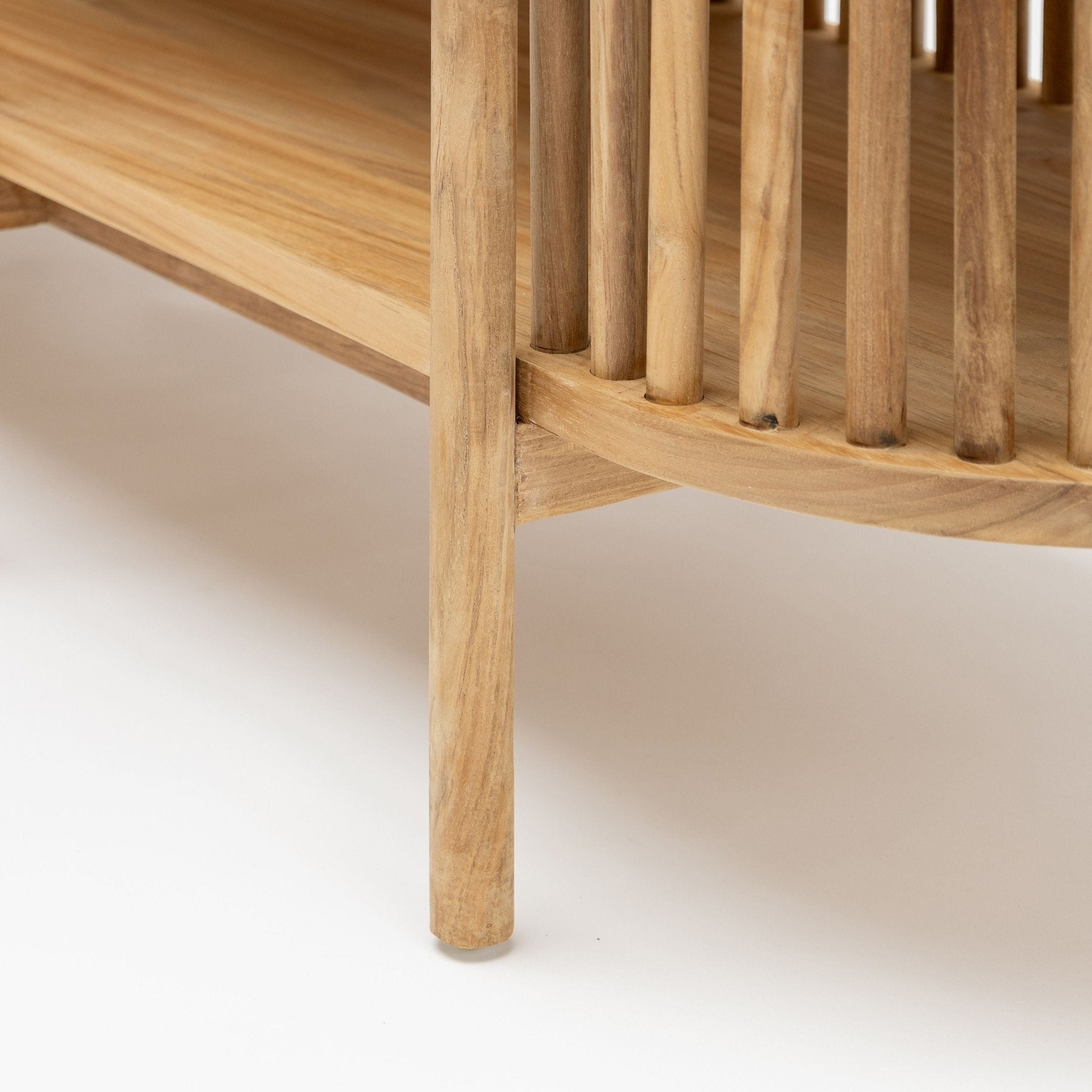 بلمسة مستوحاة من الطراز الباليني، تتميز مجموعة زارا برفوف مفتوحة مصنوعة من خشب الساج الصلب. لمسة نهائية طبيعية غنية تُضفي تناغمًا رائعًا بين درجات الألوان.
