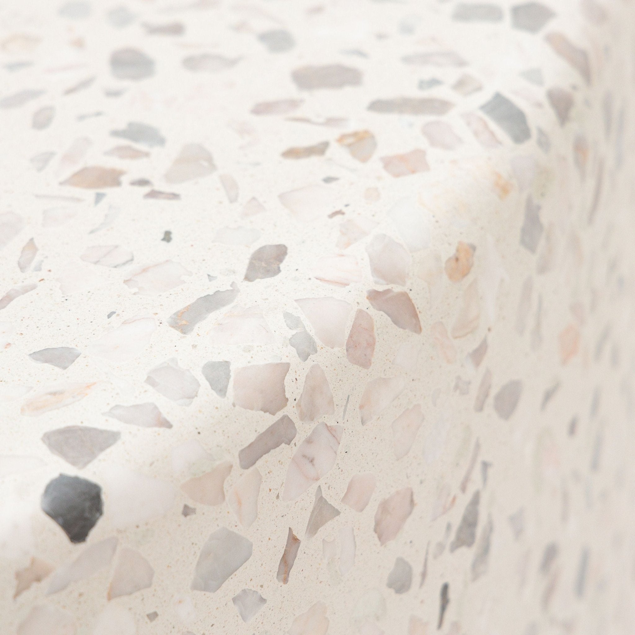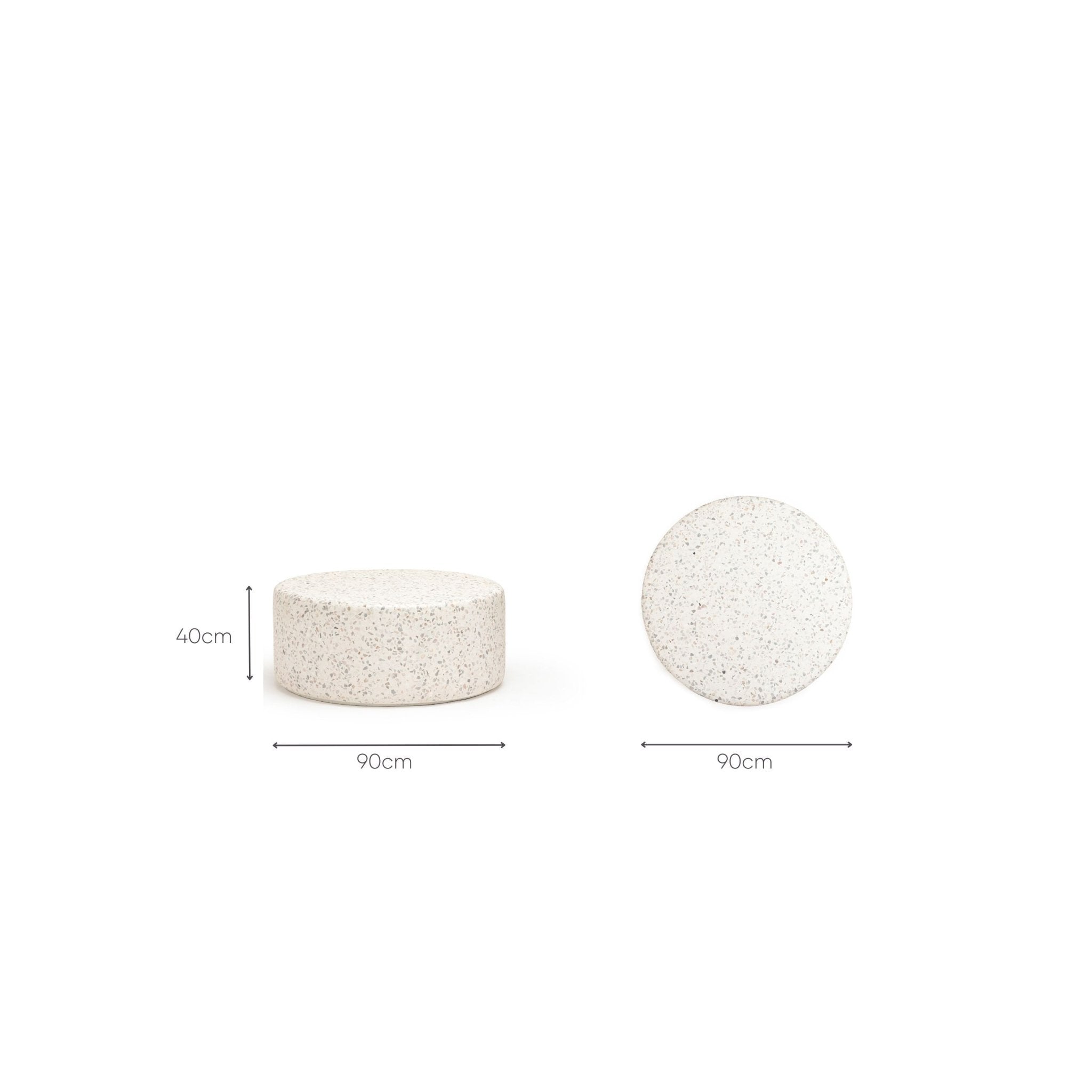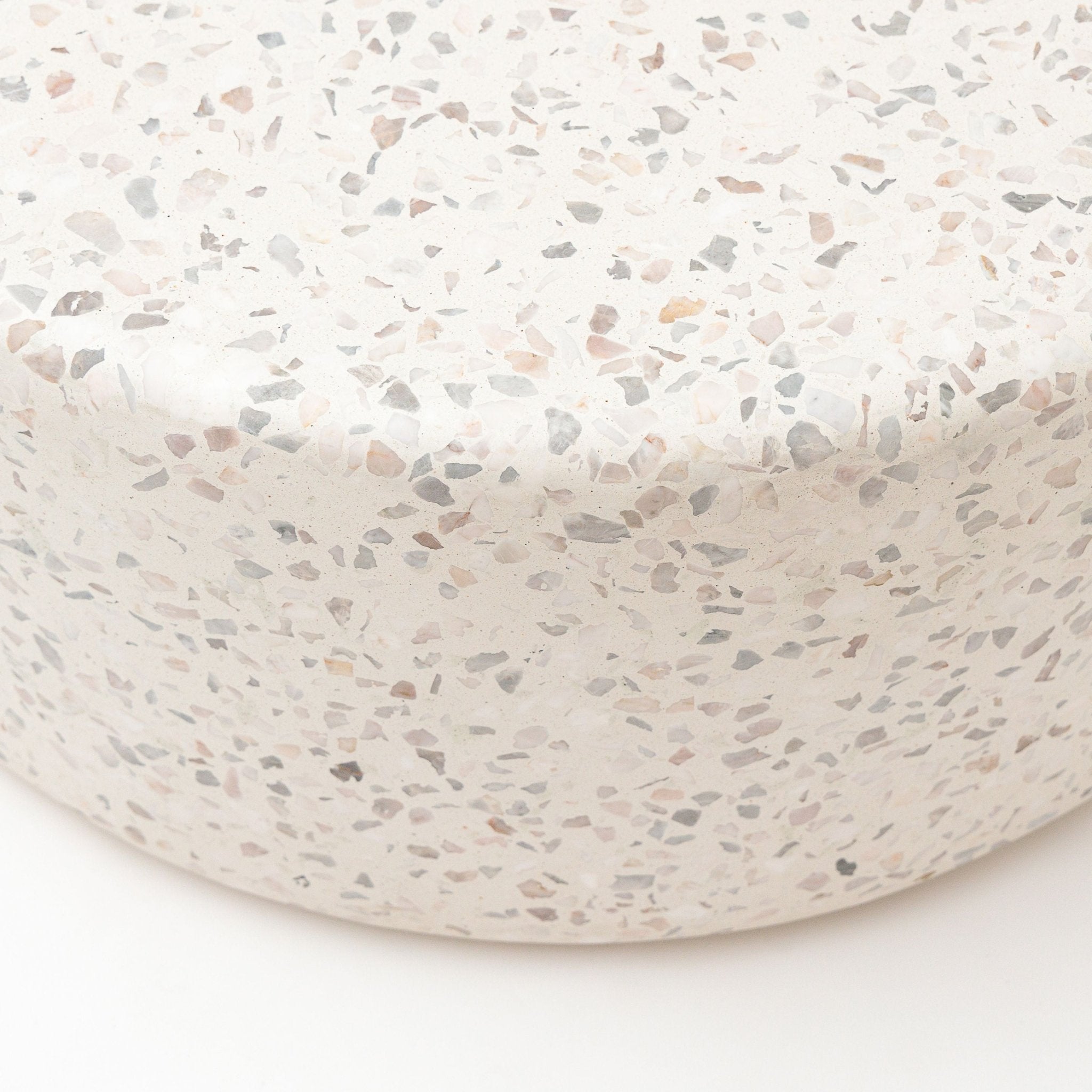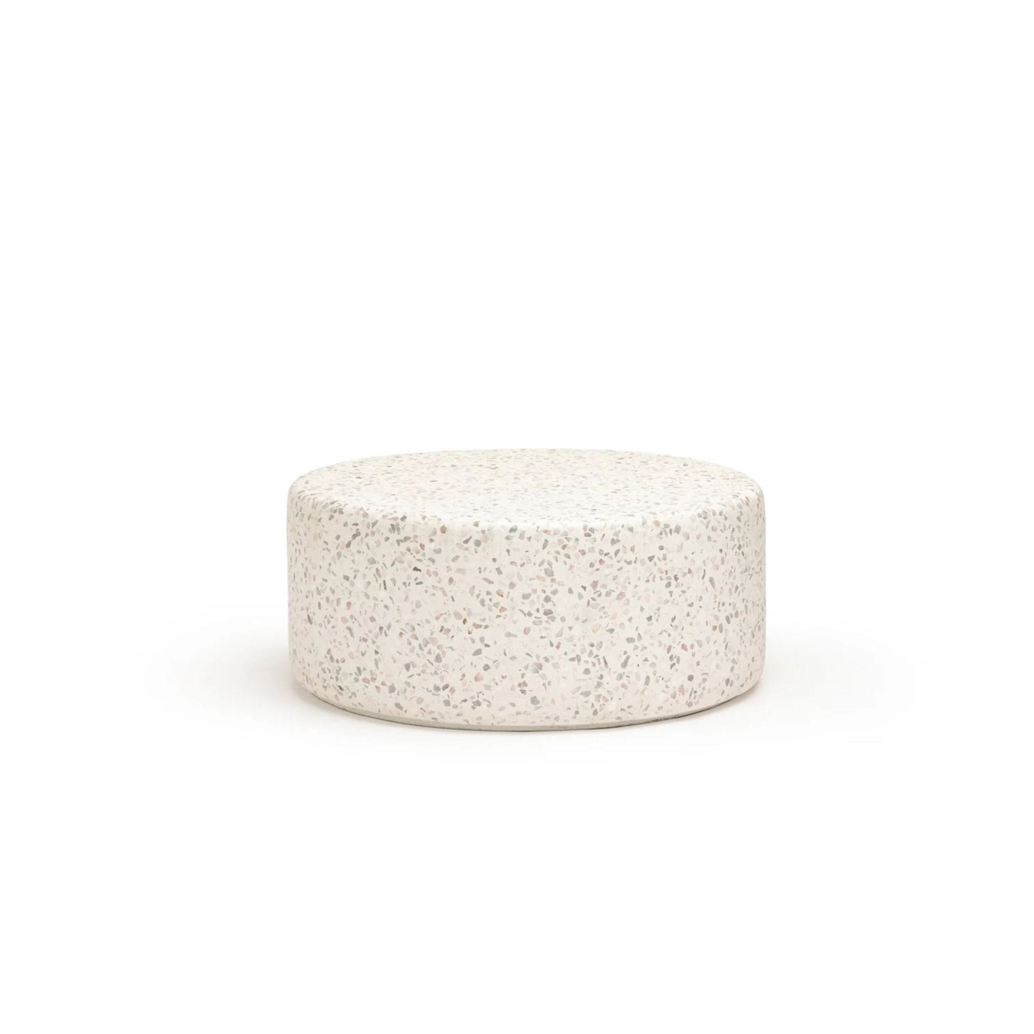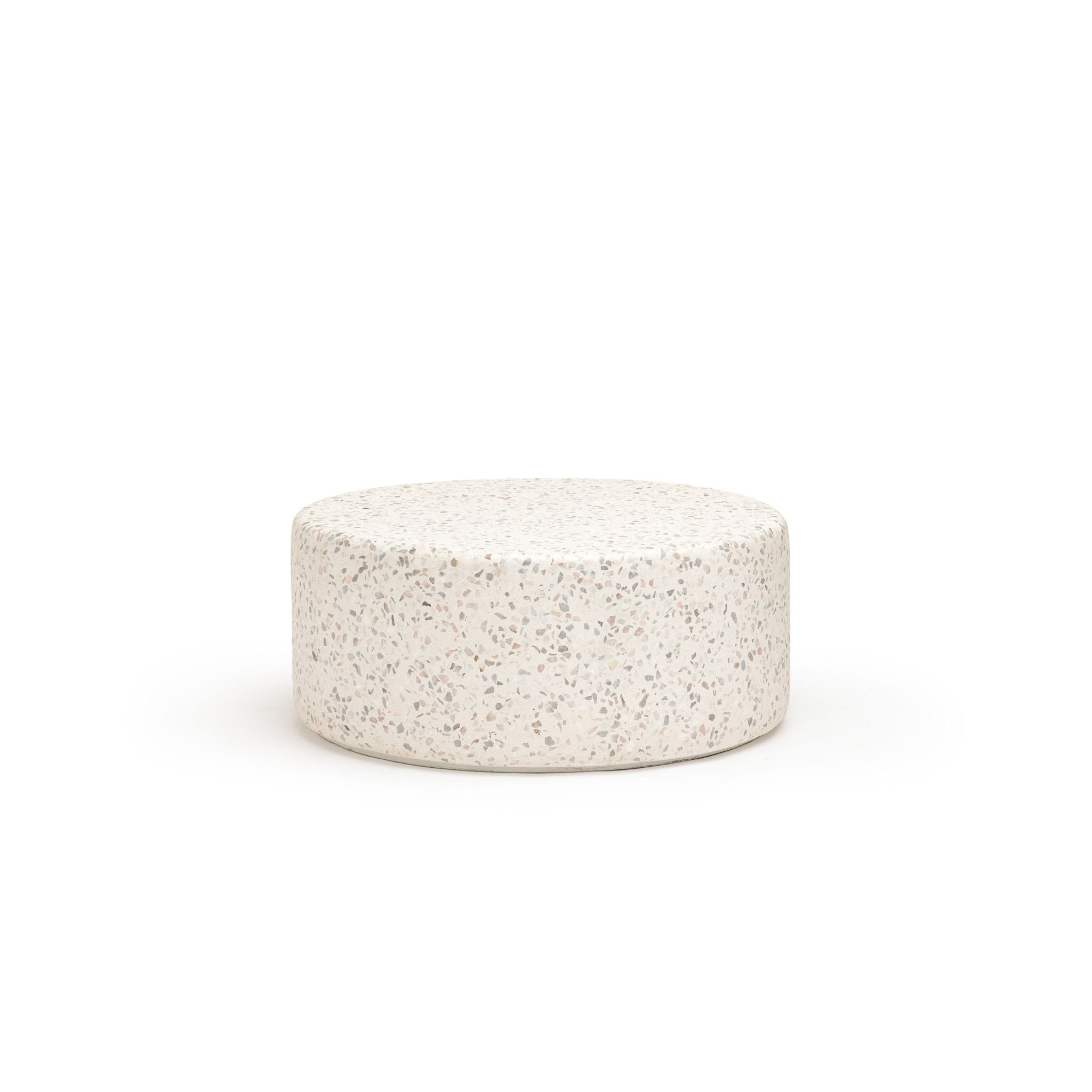 طاولة قهوة فرامنتي، مستوحاة من شوارع إيطاليا المرصوفة بالحصى، مصنوعة من الخرسانة مع بقع تيرازو كبيرة. شكلها الأسطواني وتصميمها الدائري يجعلها إضافة أنيقة وسهلة العناية، ومتينة، لأي مساحة، بينما تُضفي الطاولة الجانبية لمسةً مميزةً مميزة.