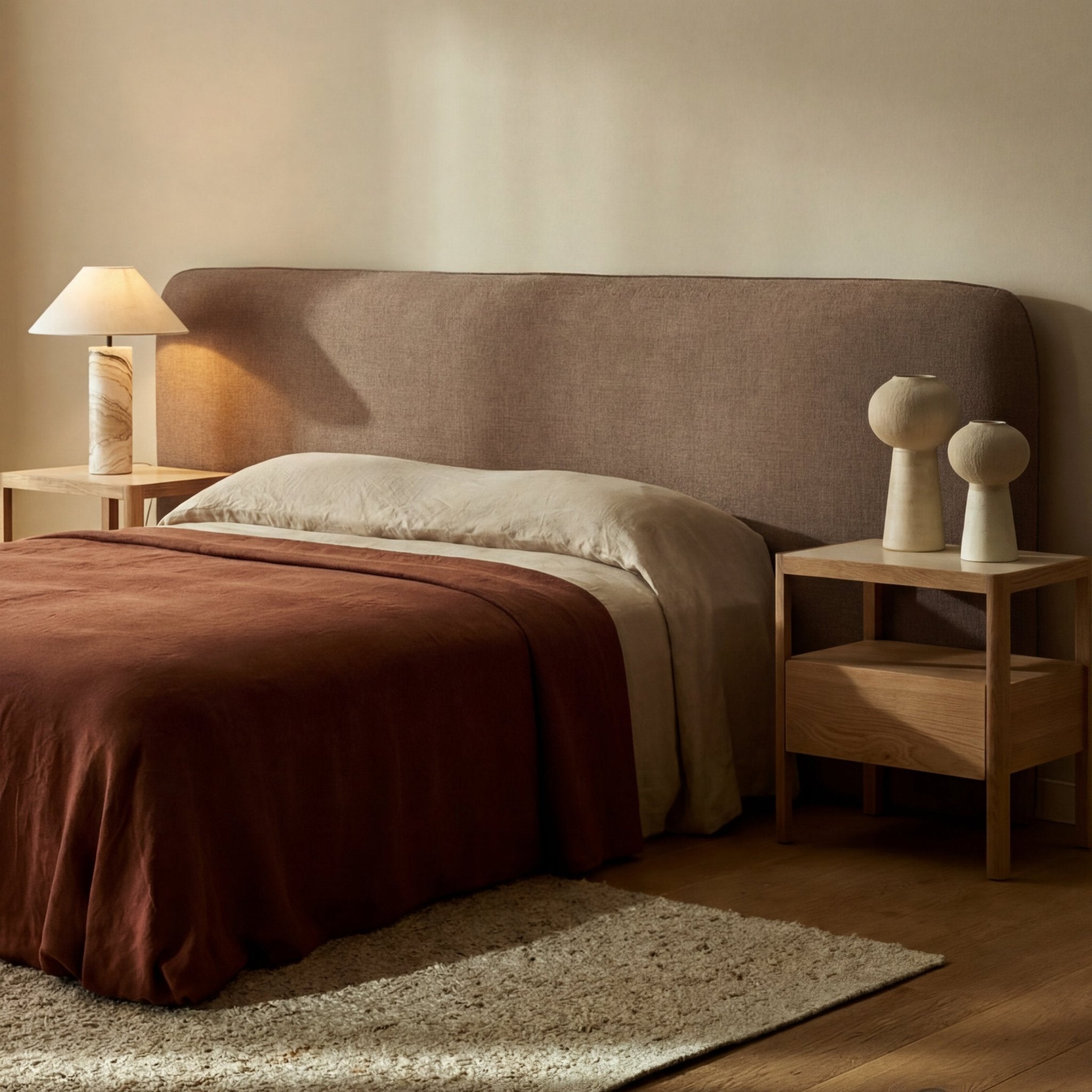 رأس سرير مبطن الخشب الرقائقي الصلب المصنوع يدويًا حاصل على شهادة FSC |