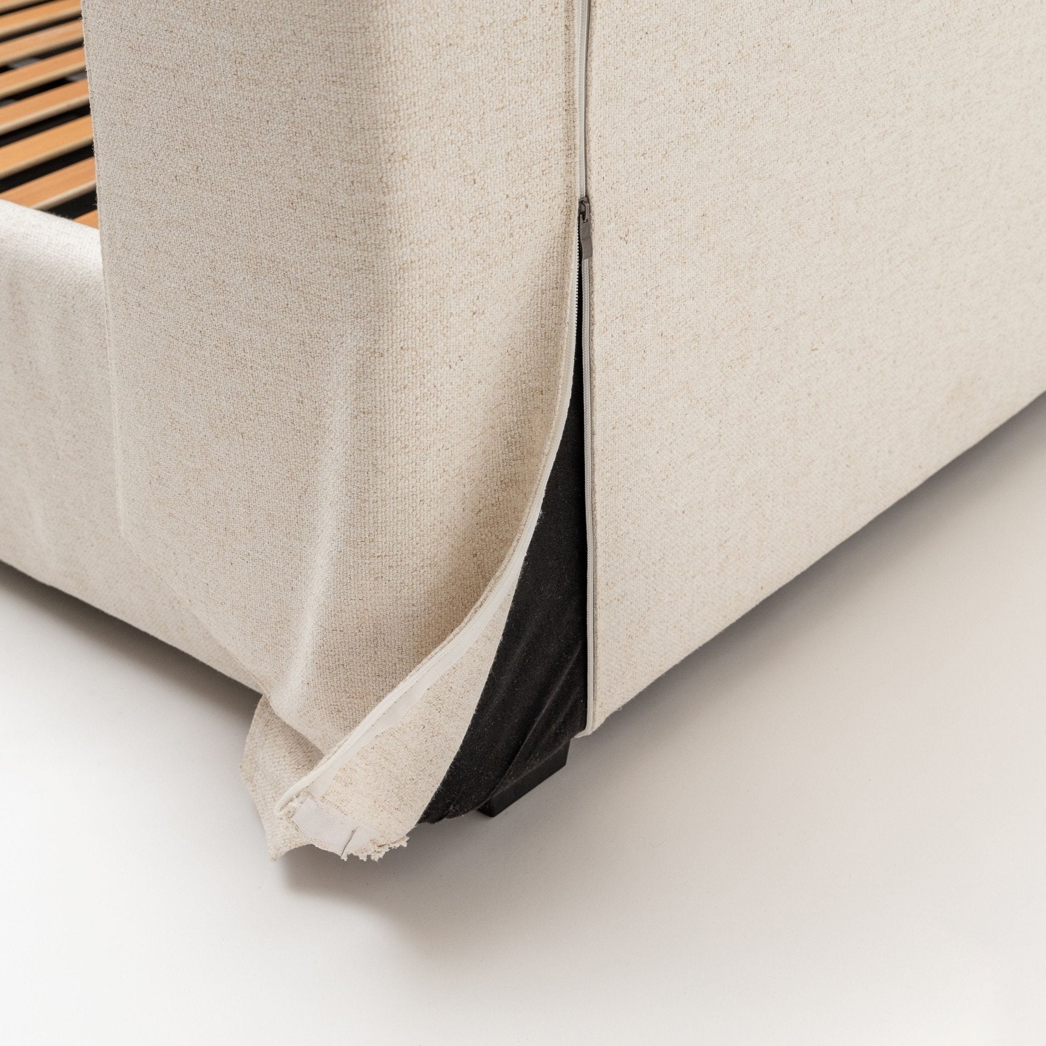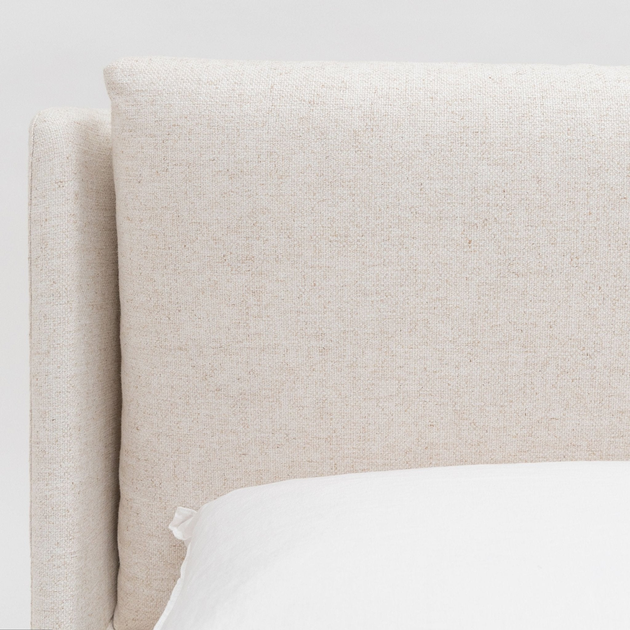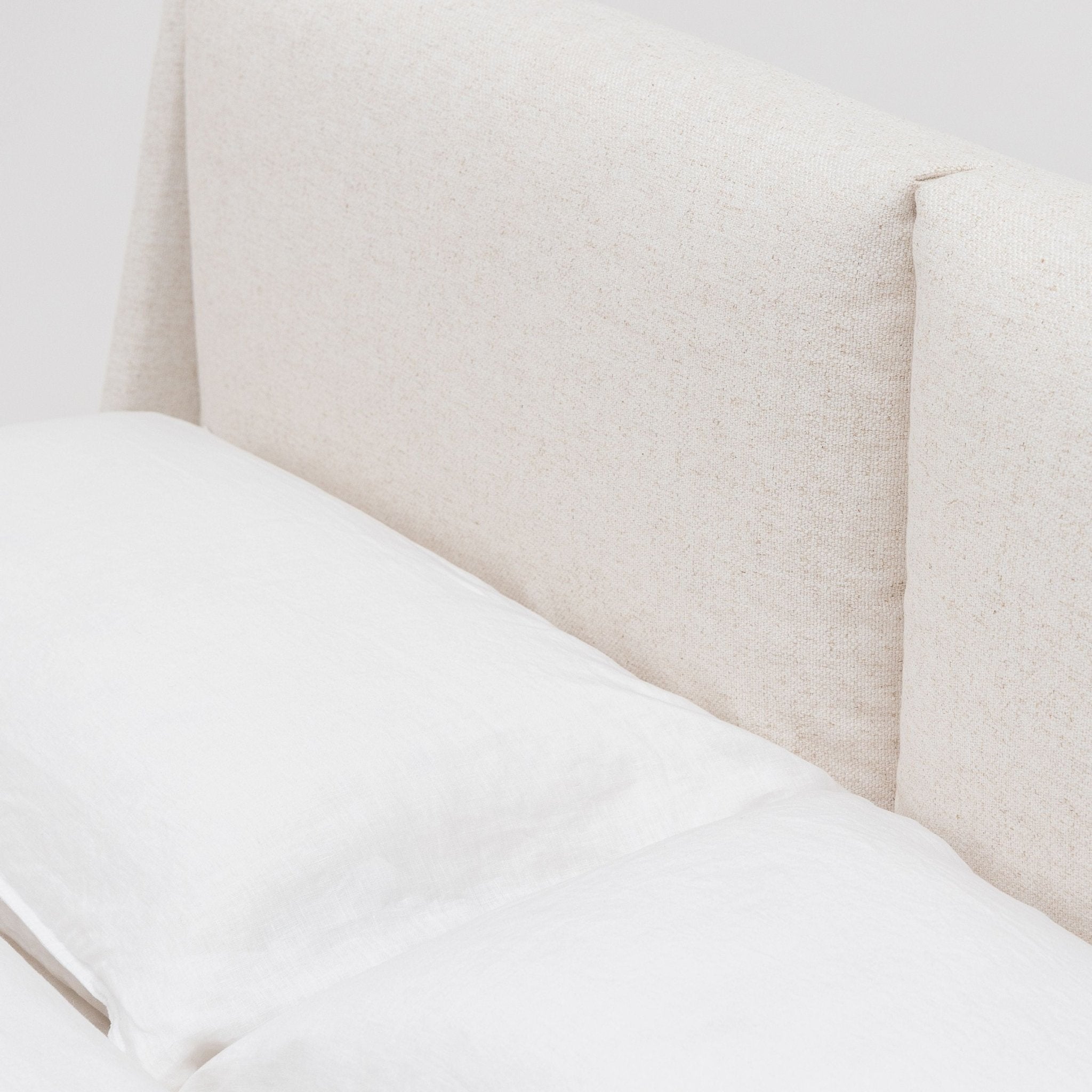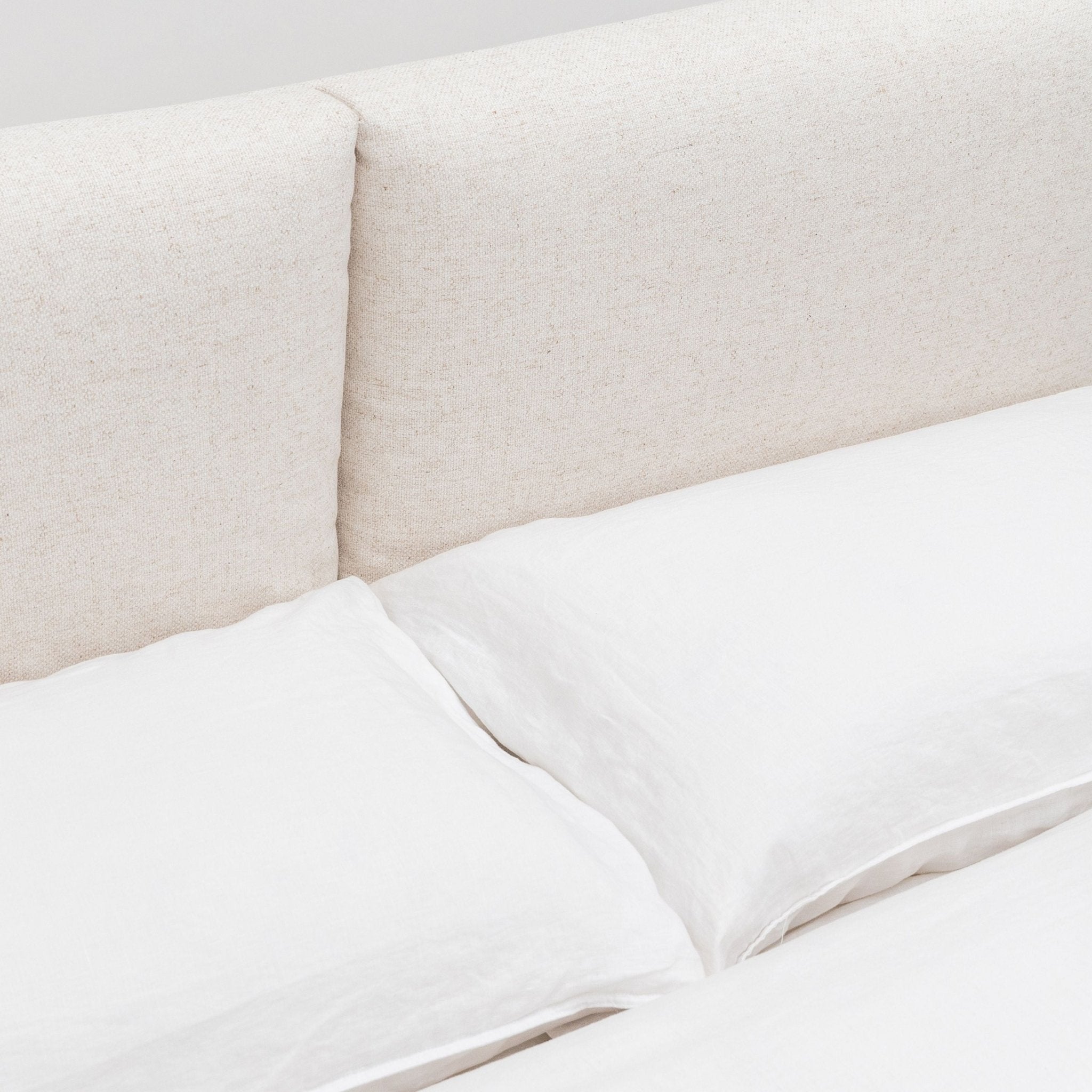 رأس سرير مبطن بقماش ناعم وأشكال. الخشب الرقائقي الصلب المصنوع يدويًا حاصل على شهادة FSC |