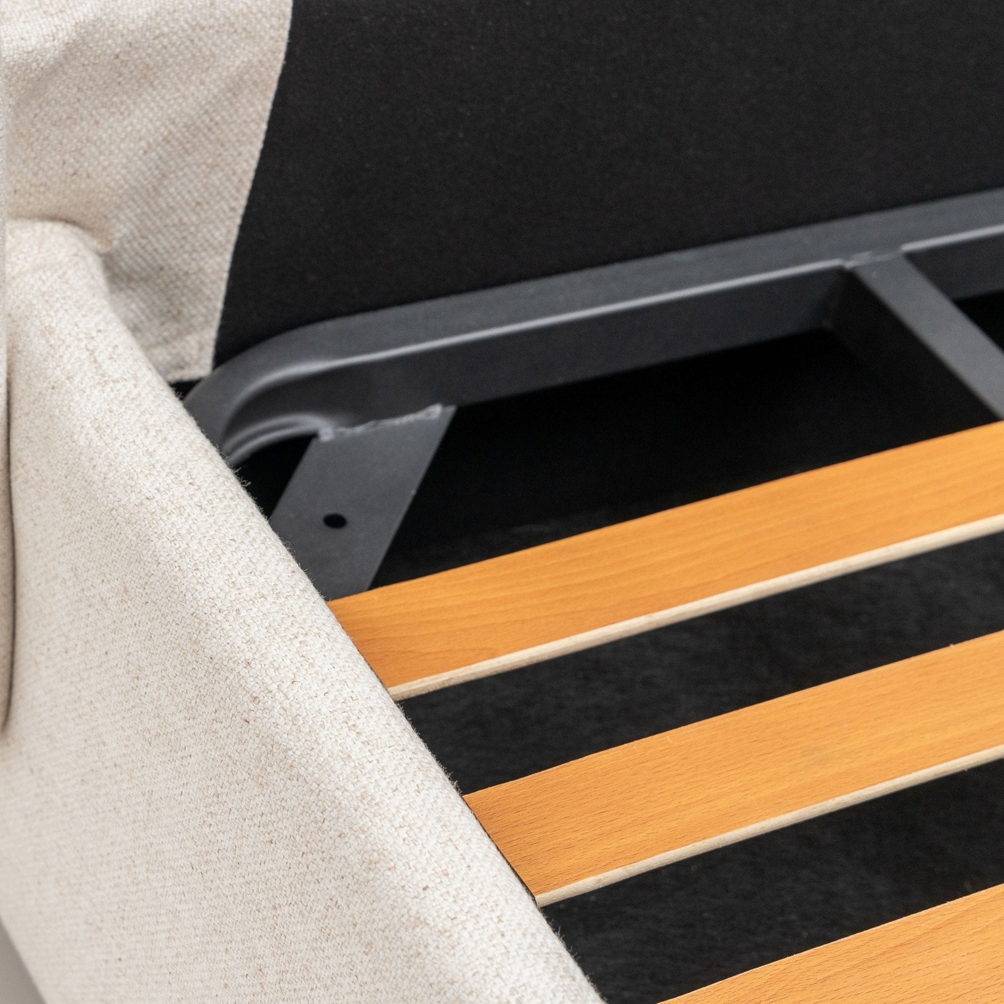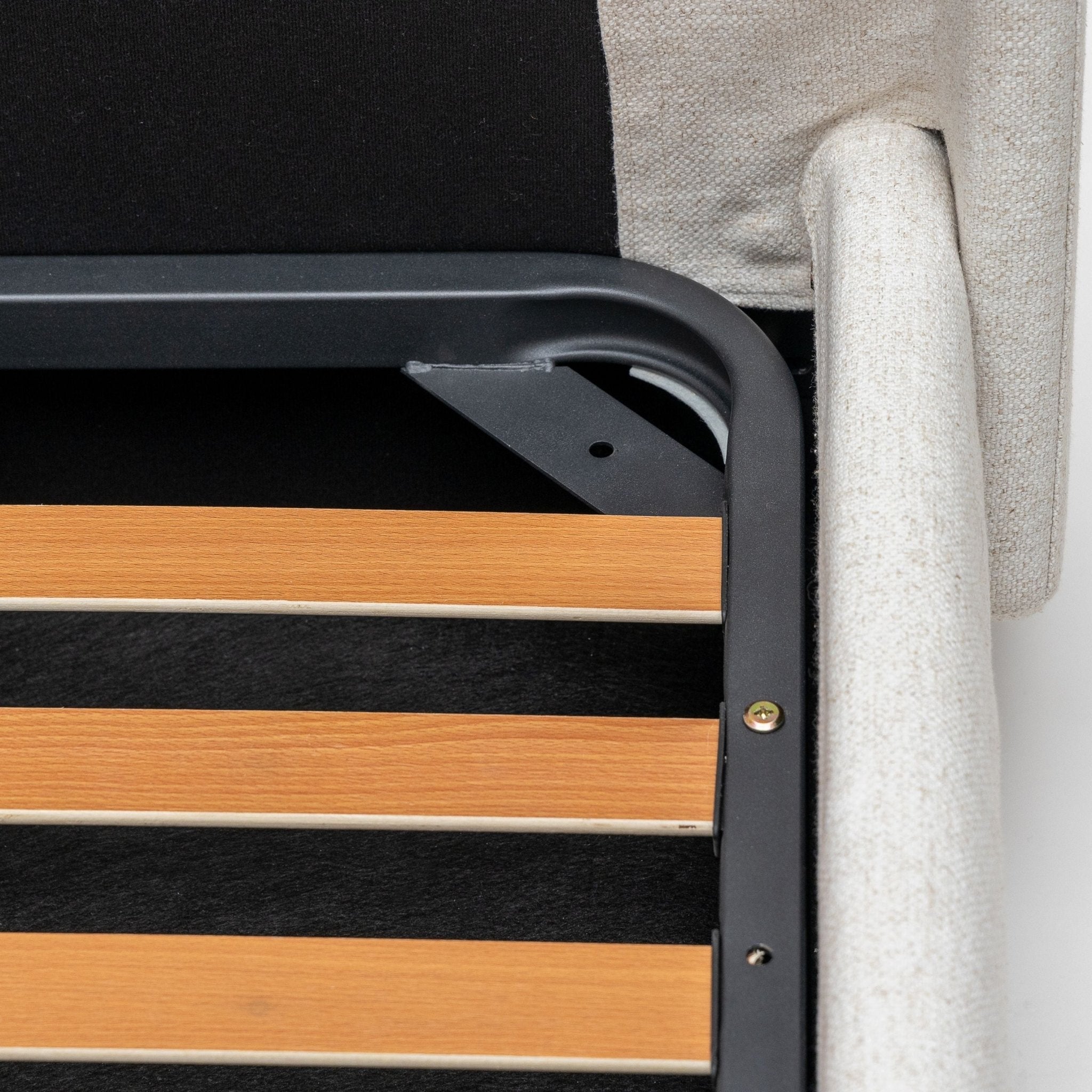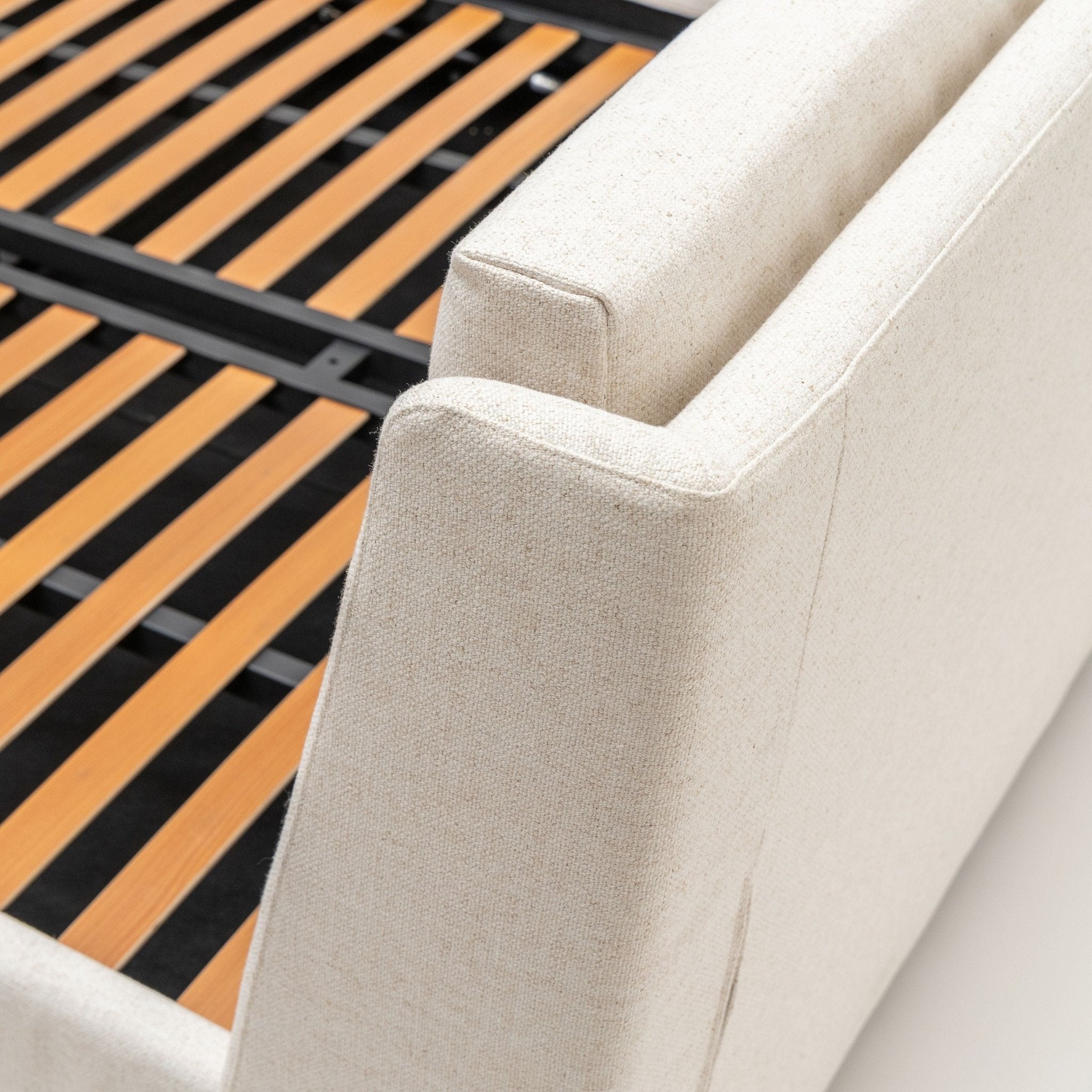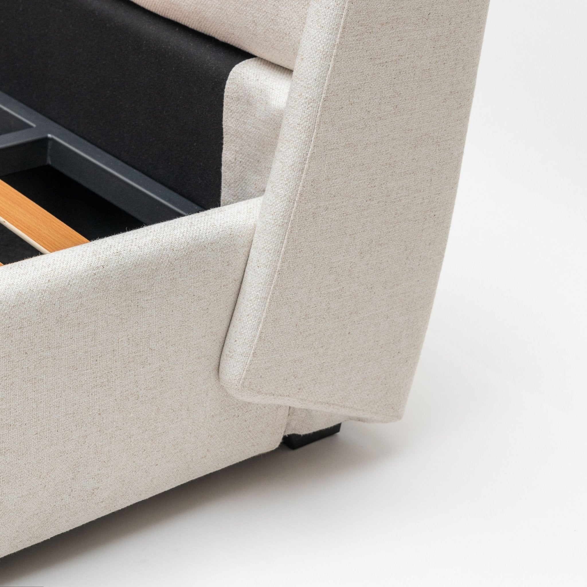 رأس سرير مبطن بقماش ناعم وأشكال. الخشب الرقائقي الصلب المصنوع يدويًا حاصل على شهادة FSC |