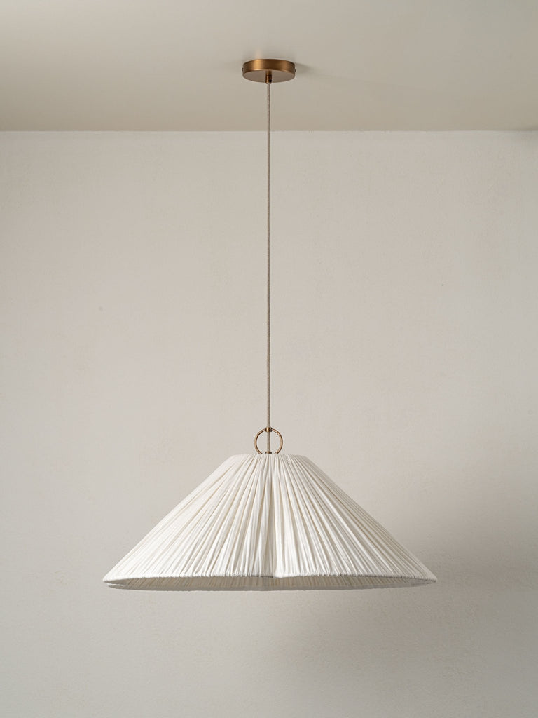 تتحد النحاس والروطان والزجاج الأوبال بطرق أنيقة ومدهشة، فتمزج بين الأجواء المصنوعة يدويًا والشعور بالفخامة والانحطاط والرقي. تعمل قلادة الروطان الكبيرة الحجم من باردي بذكاء فوق طاولة مستديرة أو مربعة. تغلف هذه القلادة التي تشبه اللؤلؤ كرة كبيرة من الأوبال غير اللامع، وهي عبارة عن بيان لأي ديكور داخلي.