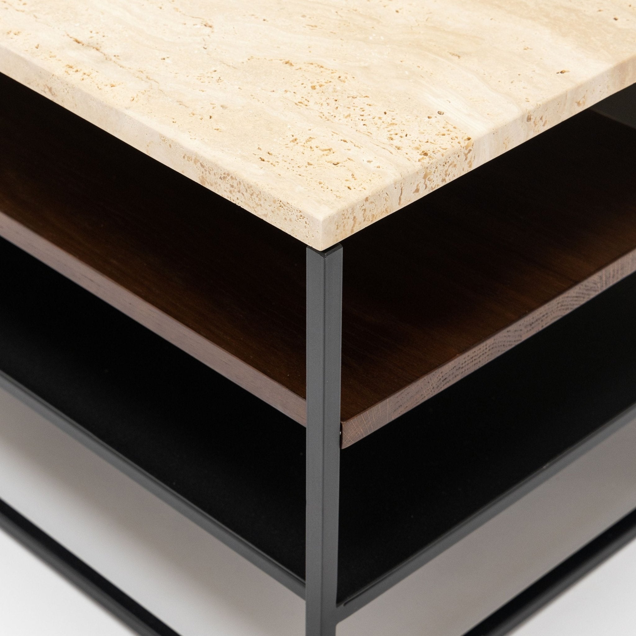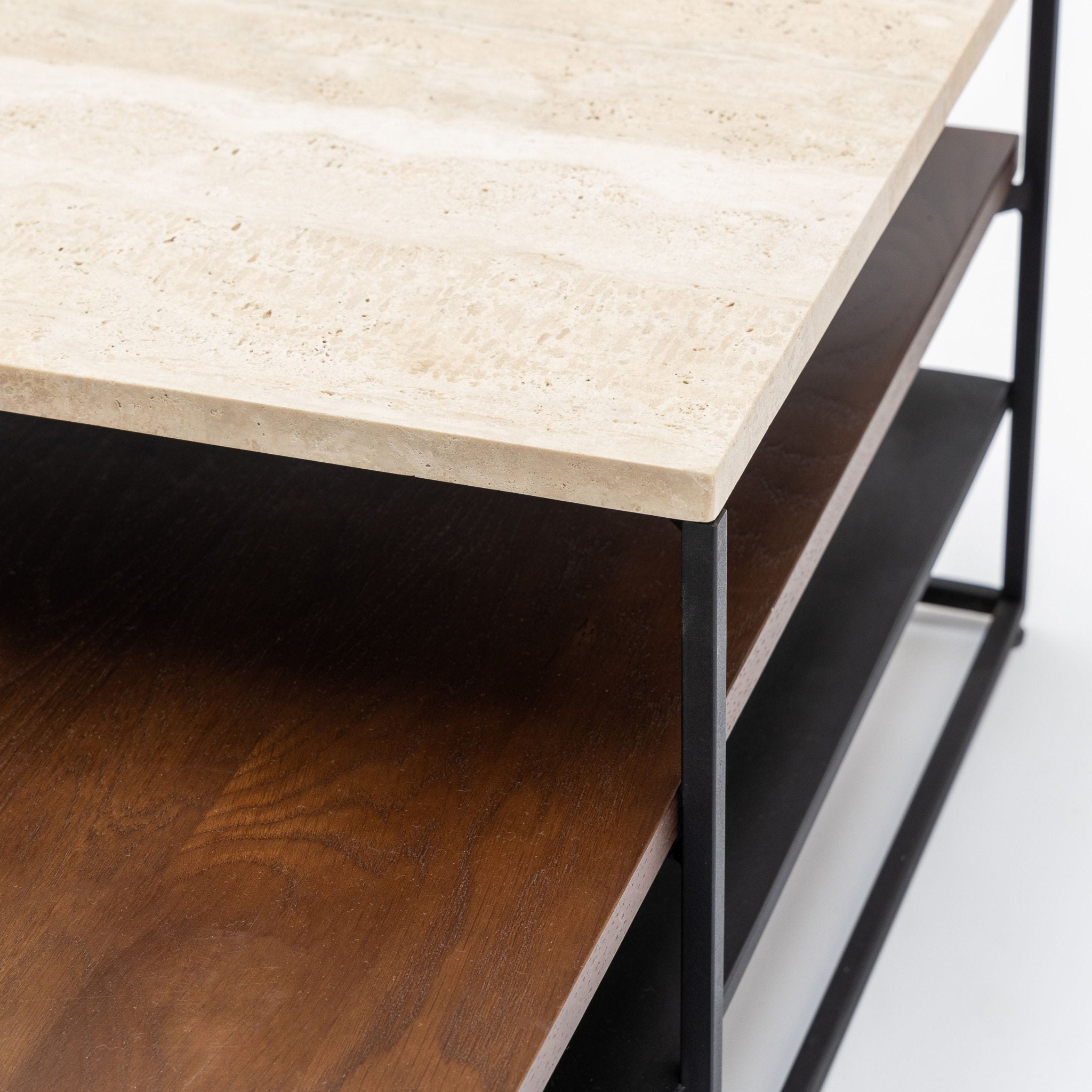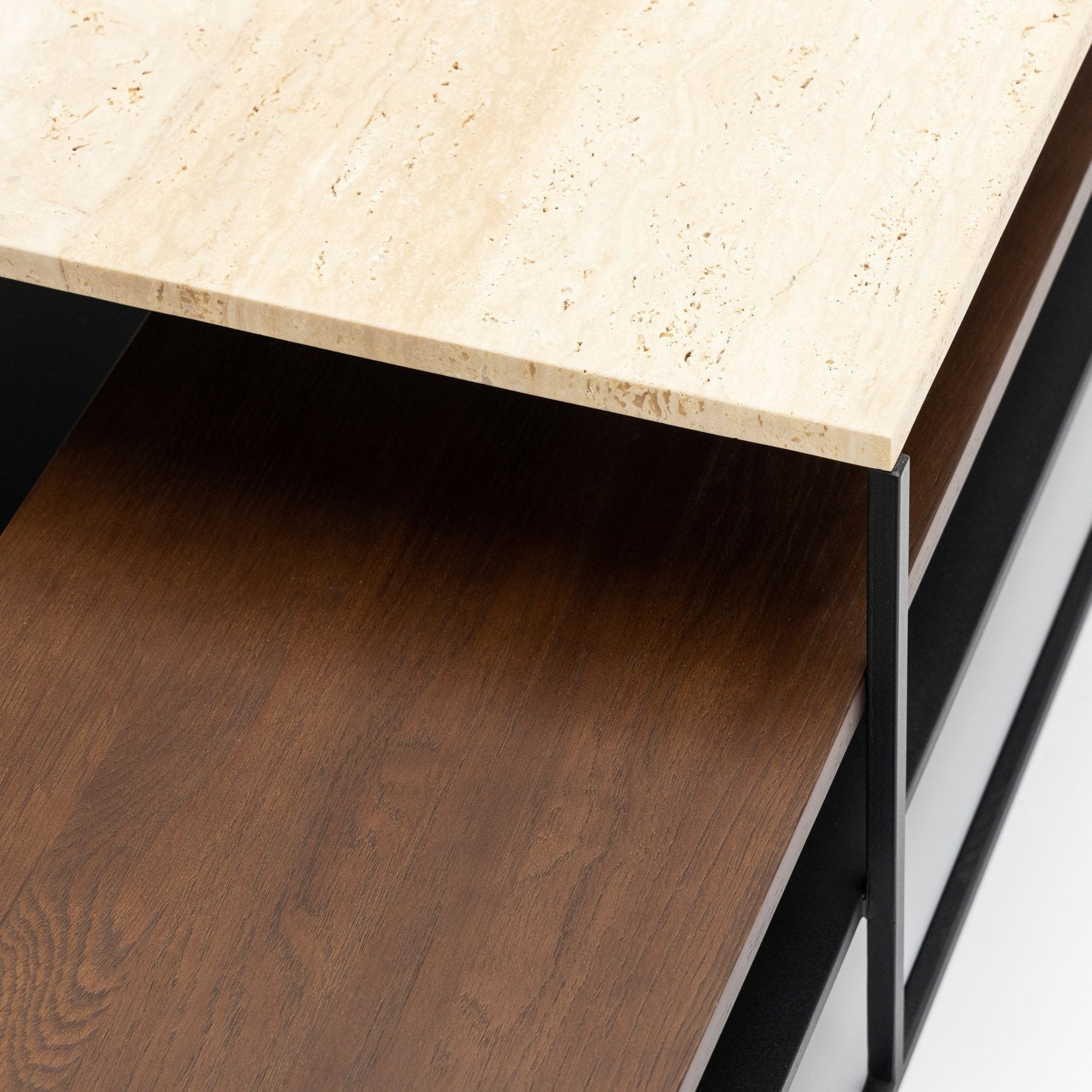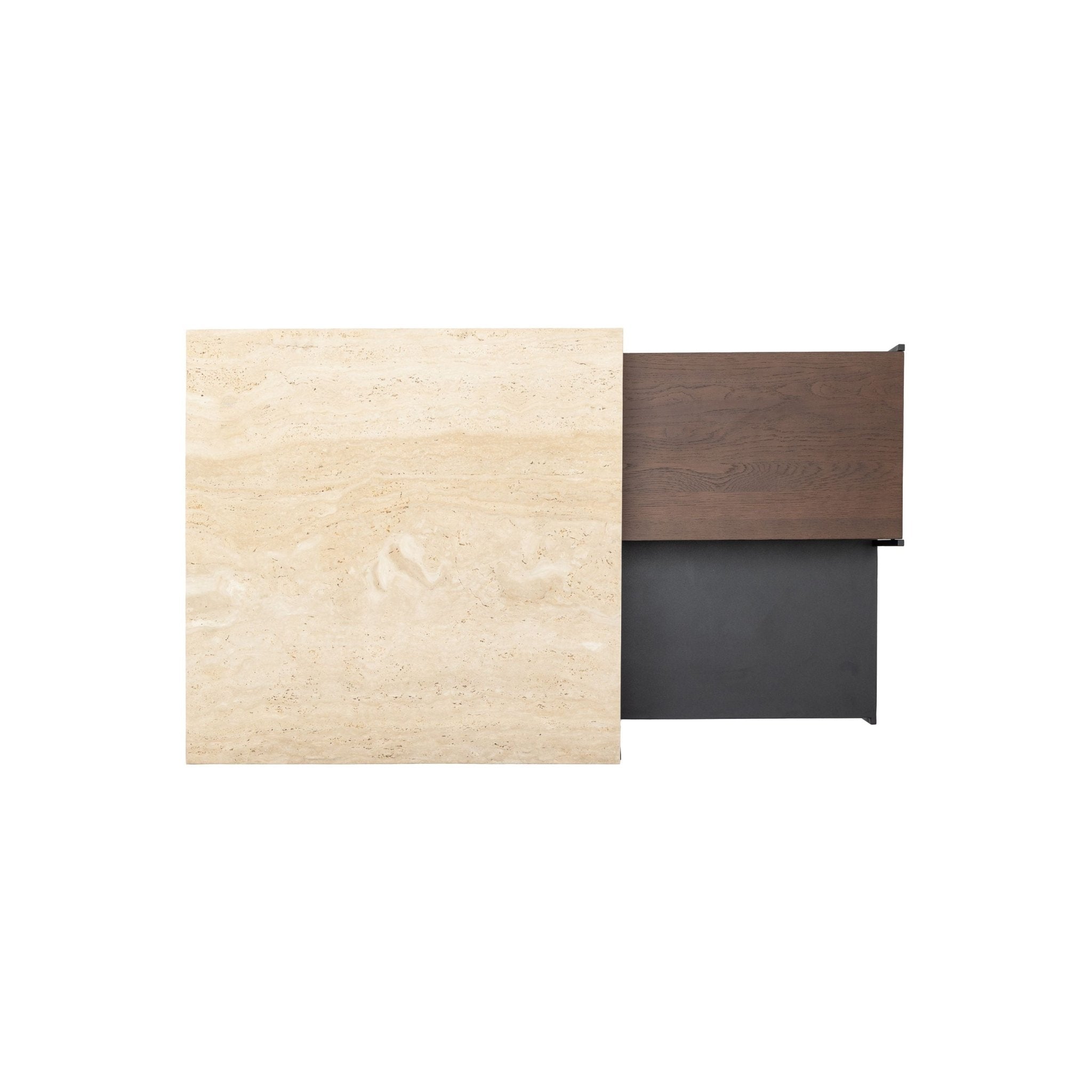 طاولة قهوة بوديوم - ترافرتين وبلوط مدخن