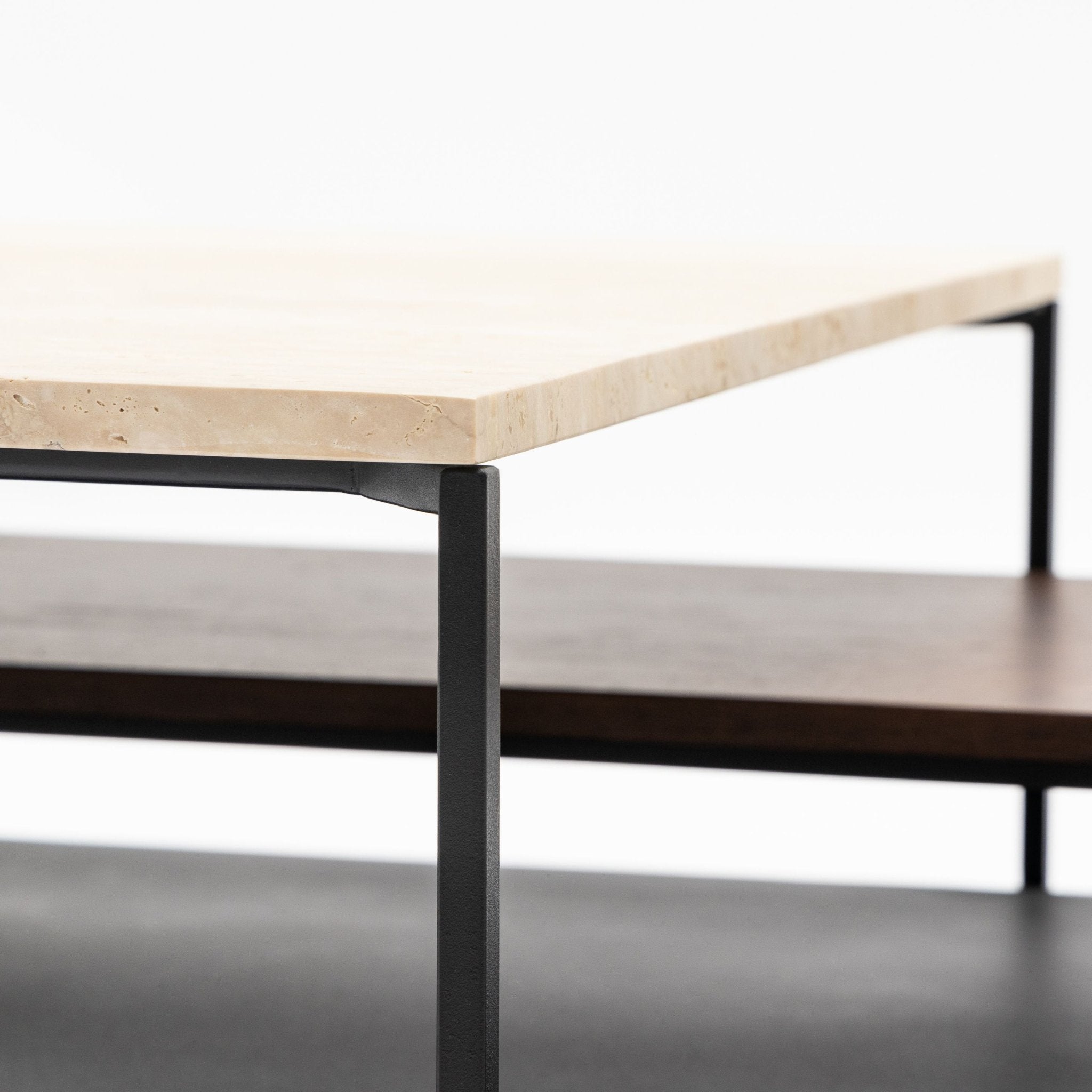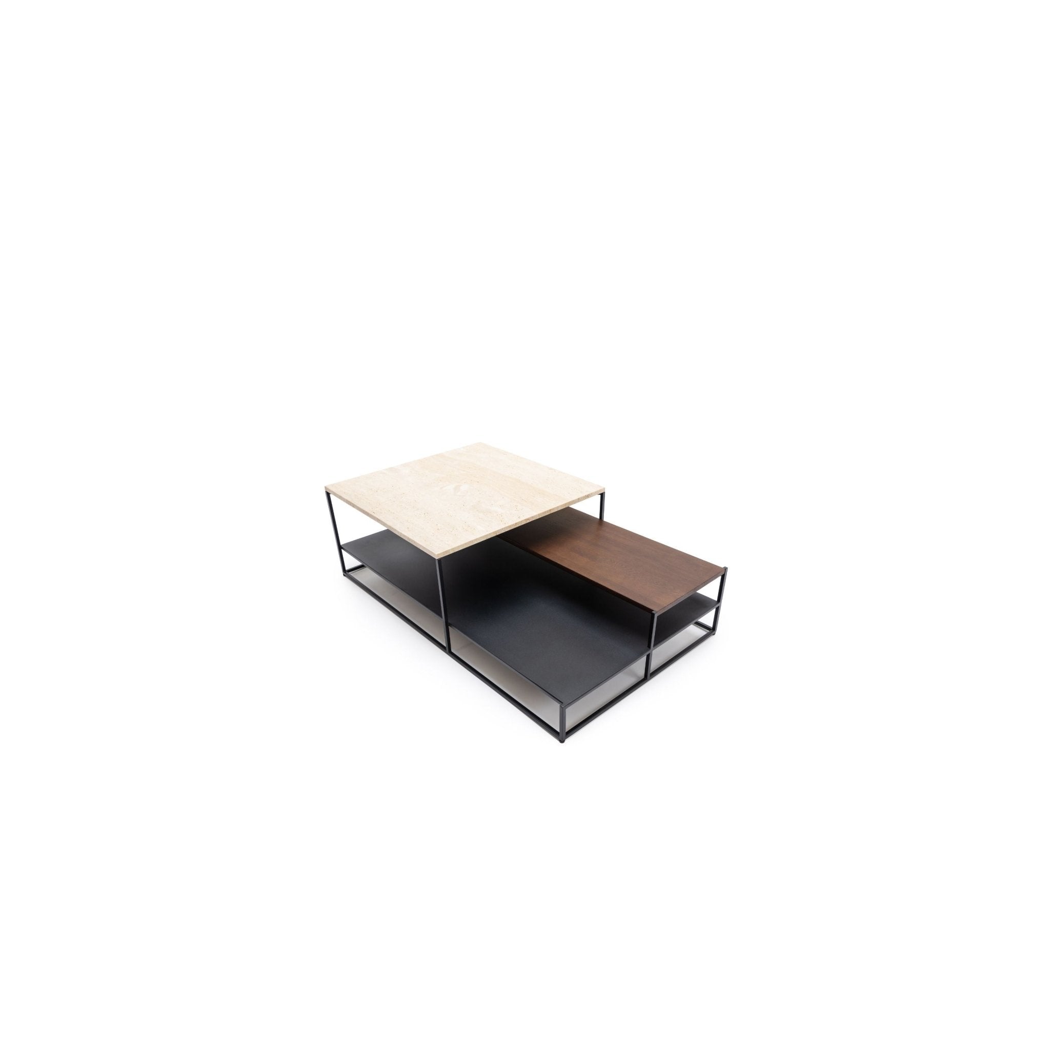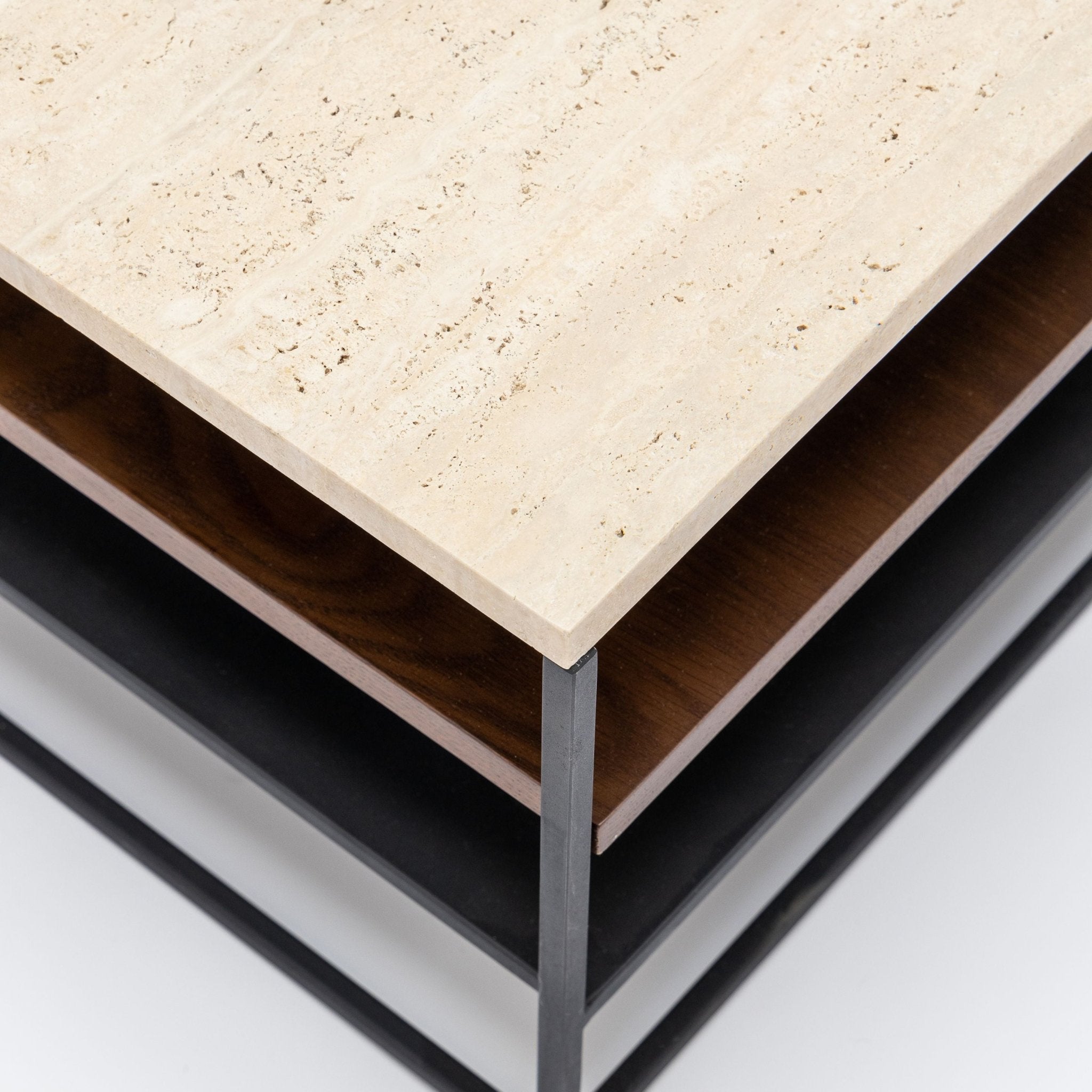 طاولة قهوة بوديوم - ترافرتين وبلوط مدخن