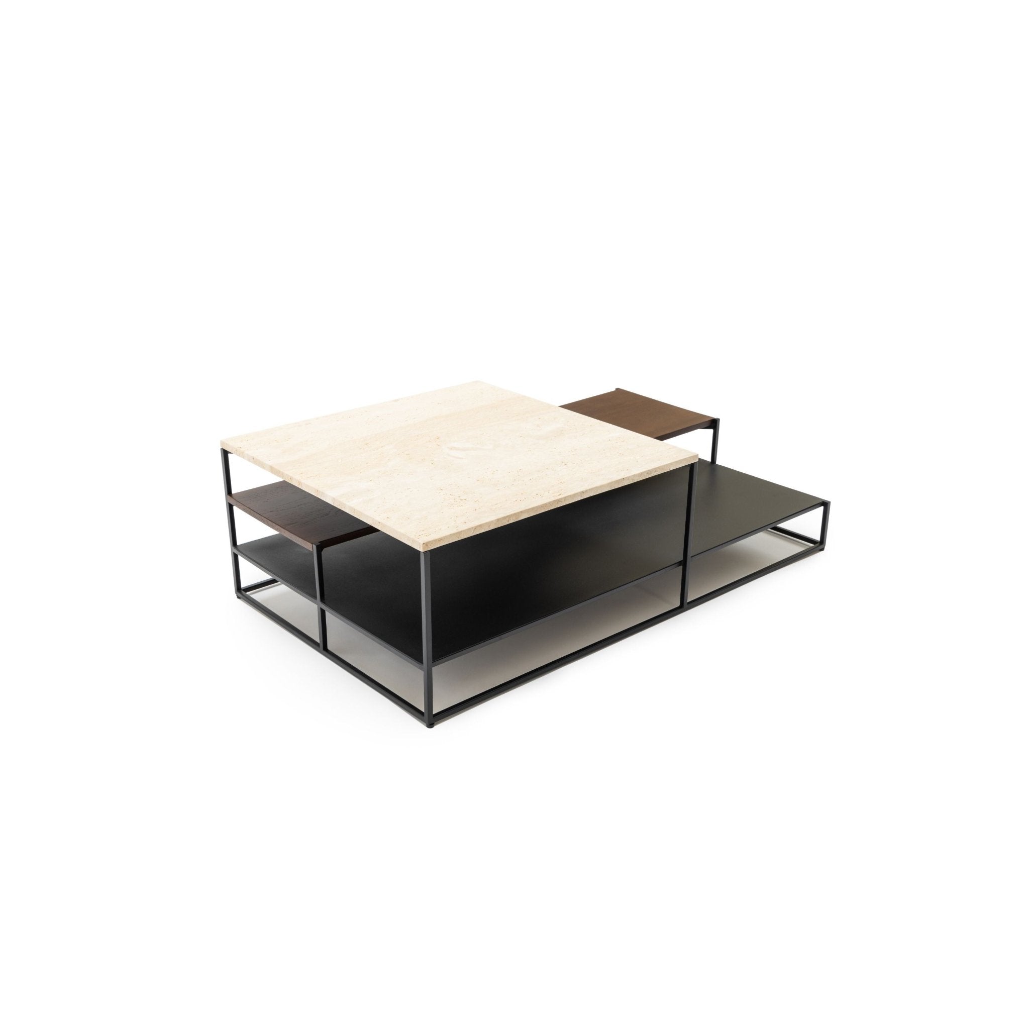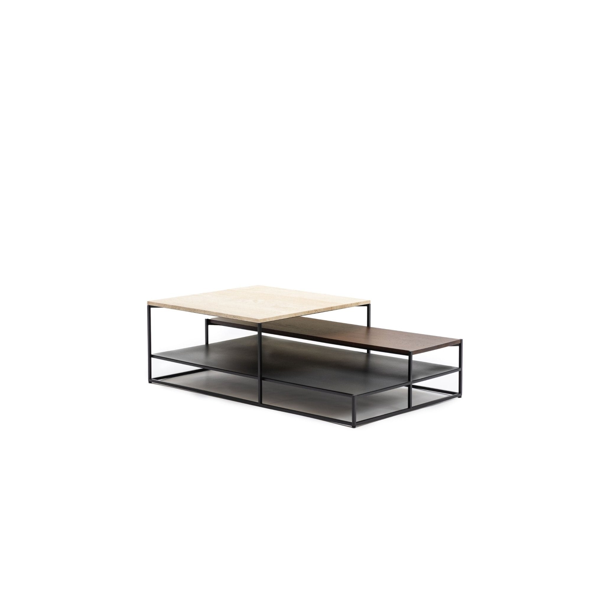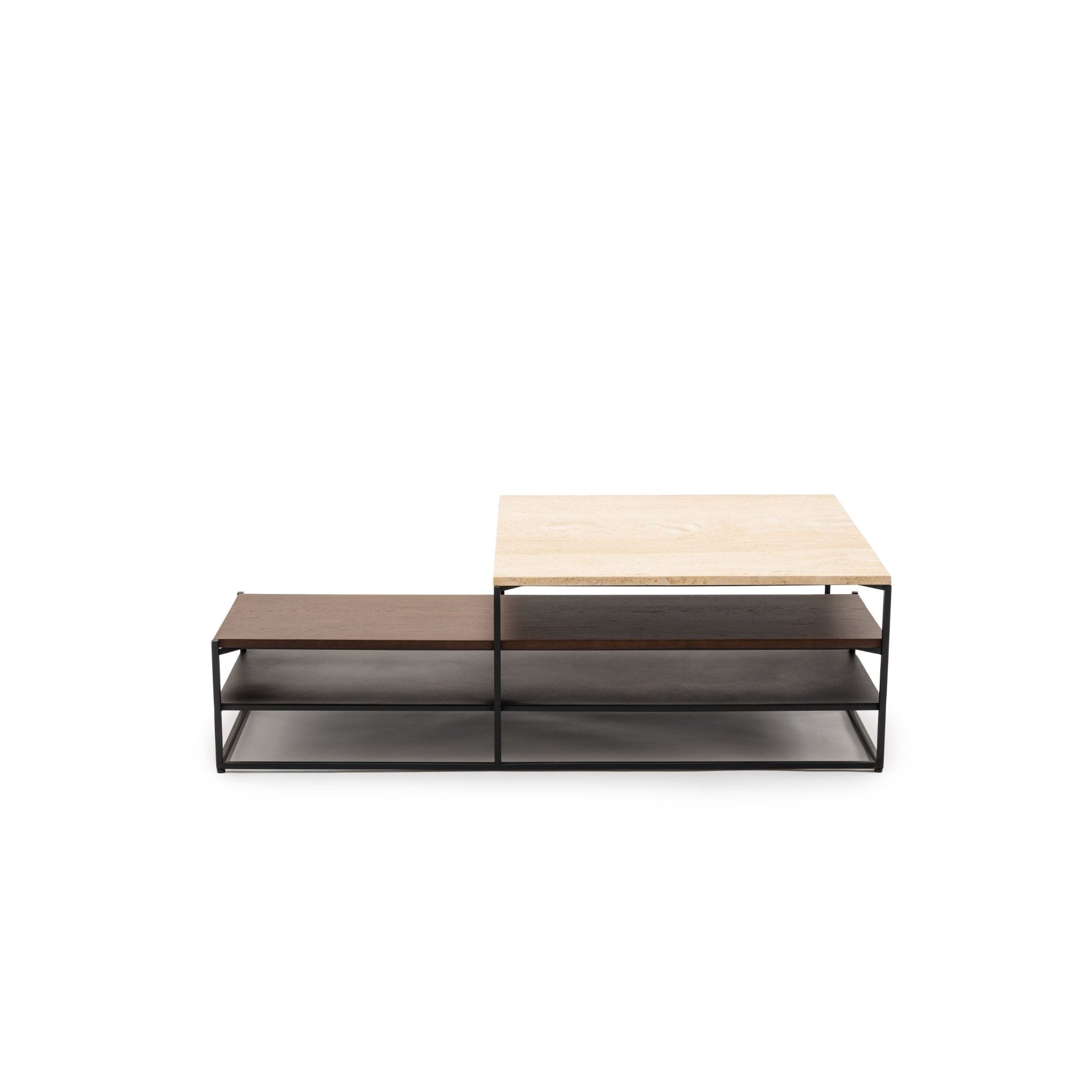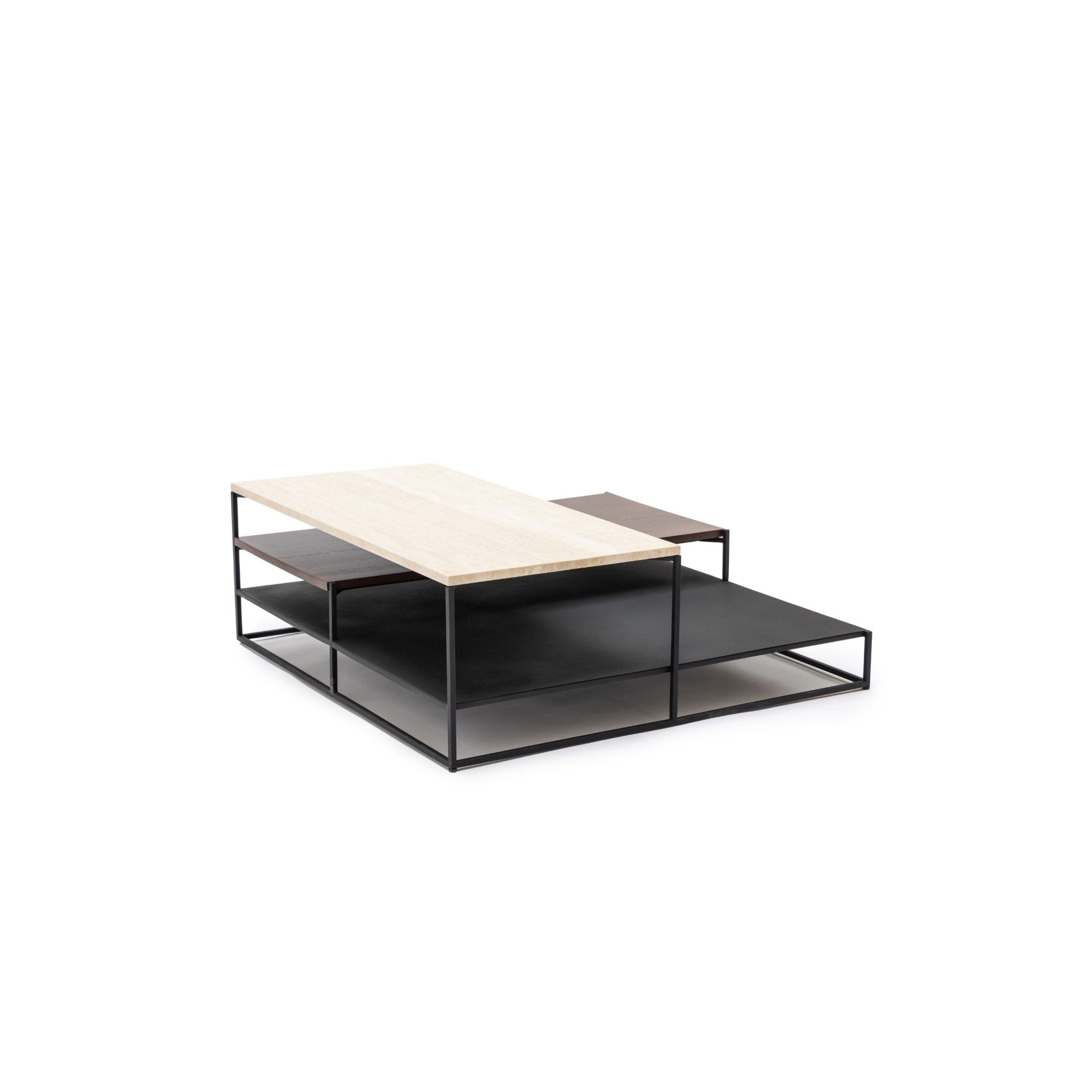 طاولة قهوة بوديوم - ترافرتين وبلوط مدخن