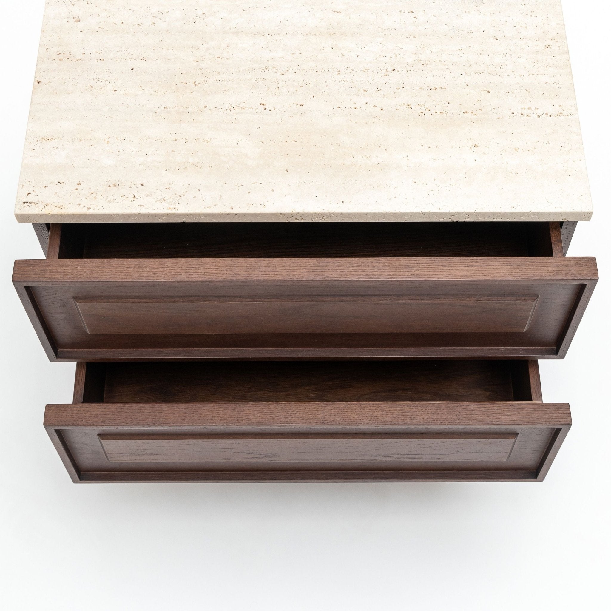 طاولة جانبية يورك - خشب البلوط الإسبريسو والترافرتين