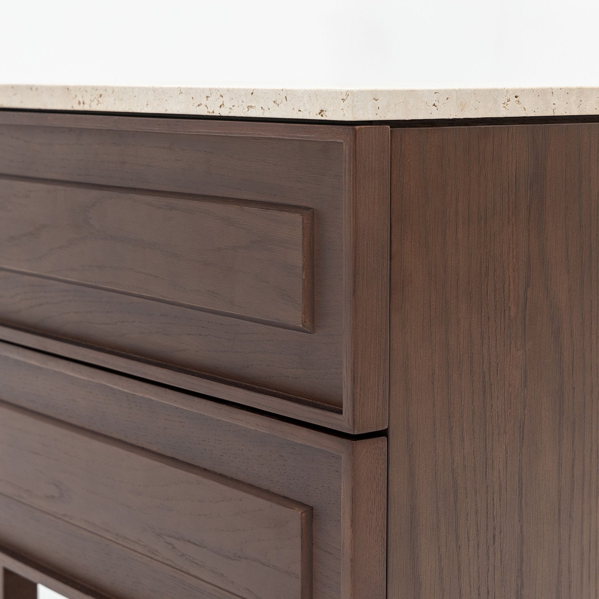 | مواد | خشب بلوط أمريكي صلب ممتاز سطح من حجر الترافرتين الإيطالي الأصلي ألواح MDF مع قشرة خشب البلوط |