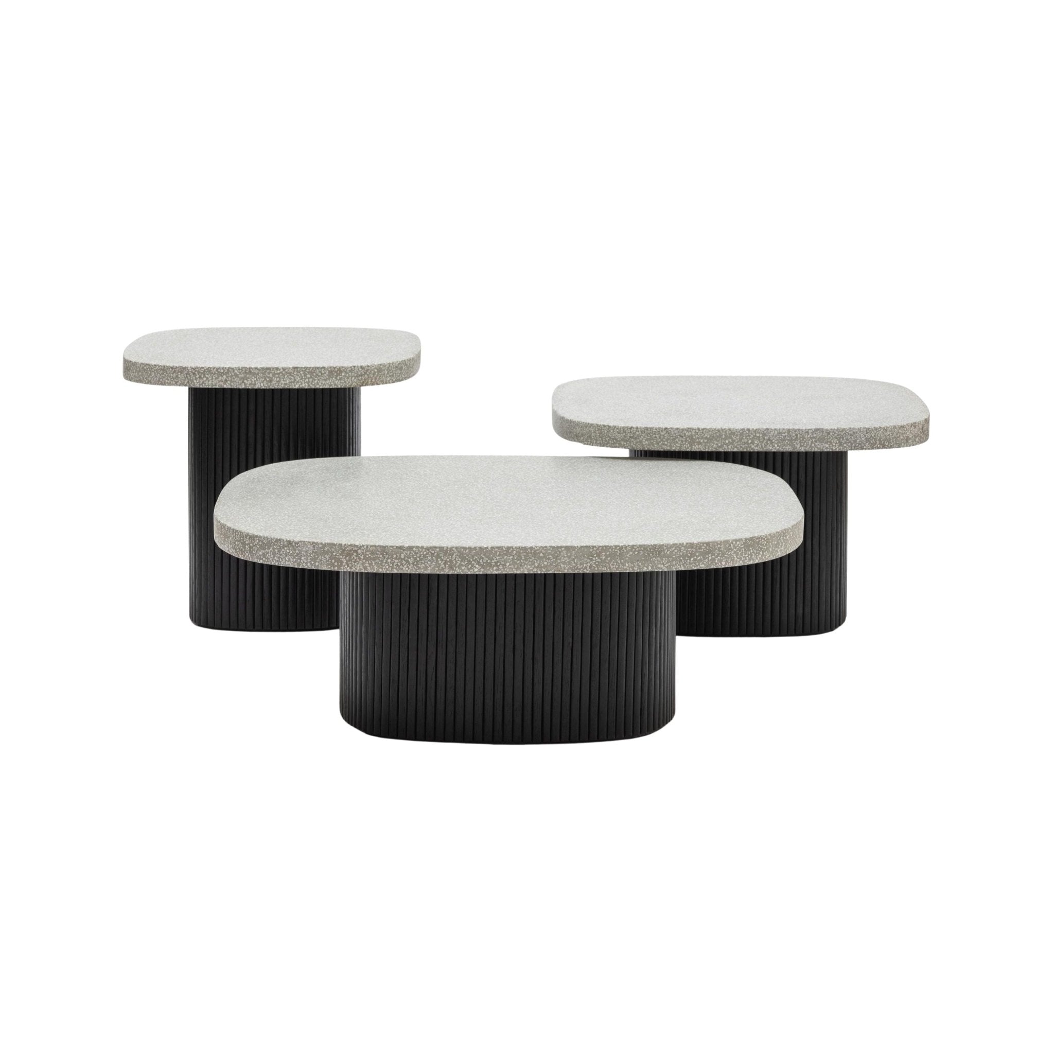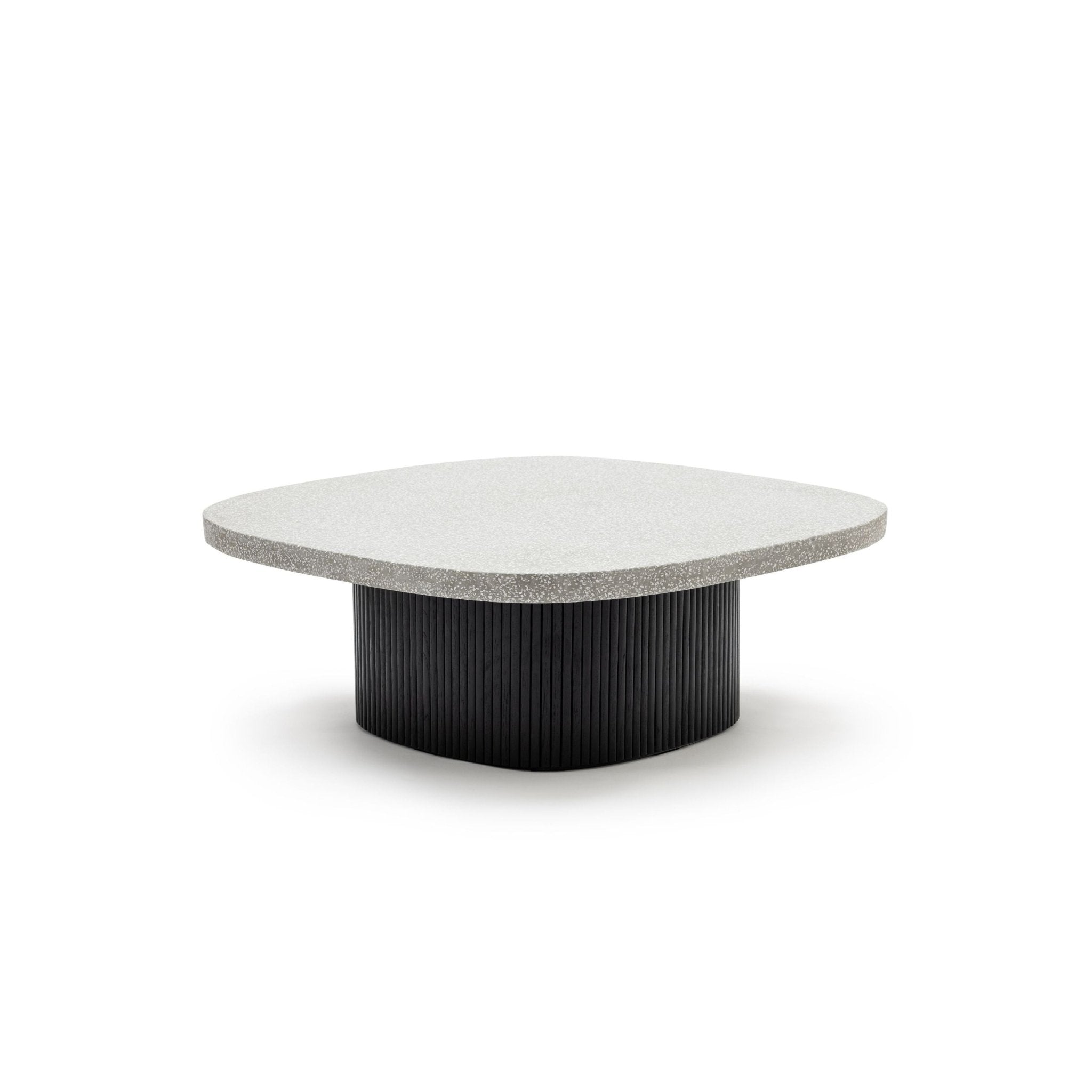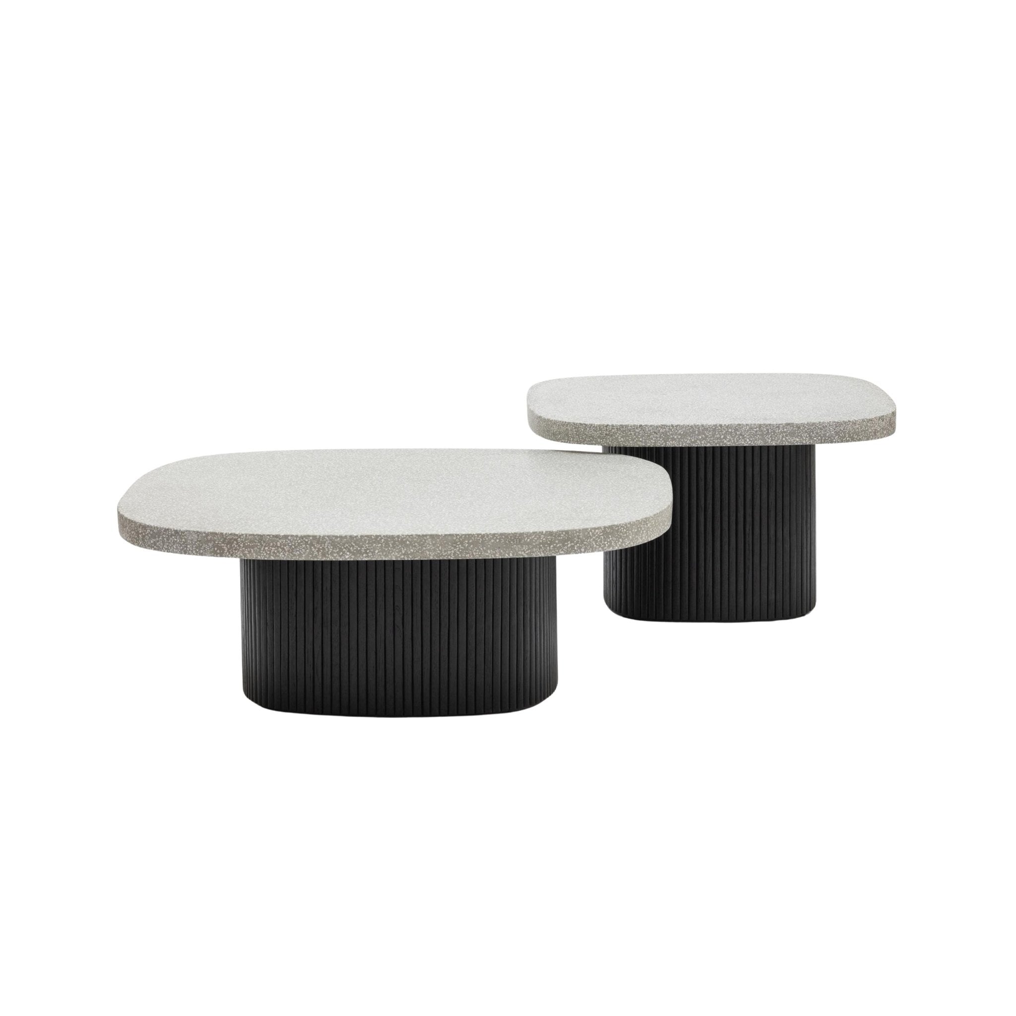 إن البنية الخشبية المضلعة لقاعدة طاولة جيون مستوحاة من سمة معمارية لبيوت الشاي الموجودة في شوارع جيون في كيوتو. يتناقض الترتيب المنظم للأضلاع الخشبية بشكل جميل مع الترتيب الأكثر عشوائية للحجارة التي تشكل سطح التيرازو. تبدو طاولات القهوة رائعة بمفردها، أو يمكن تداخلها مع الحجمين الآخرين لإنشاء مشهد طاولة قهوة متداخلة.