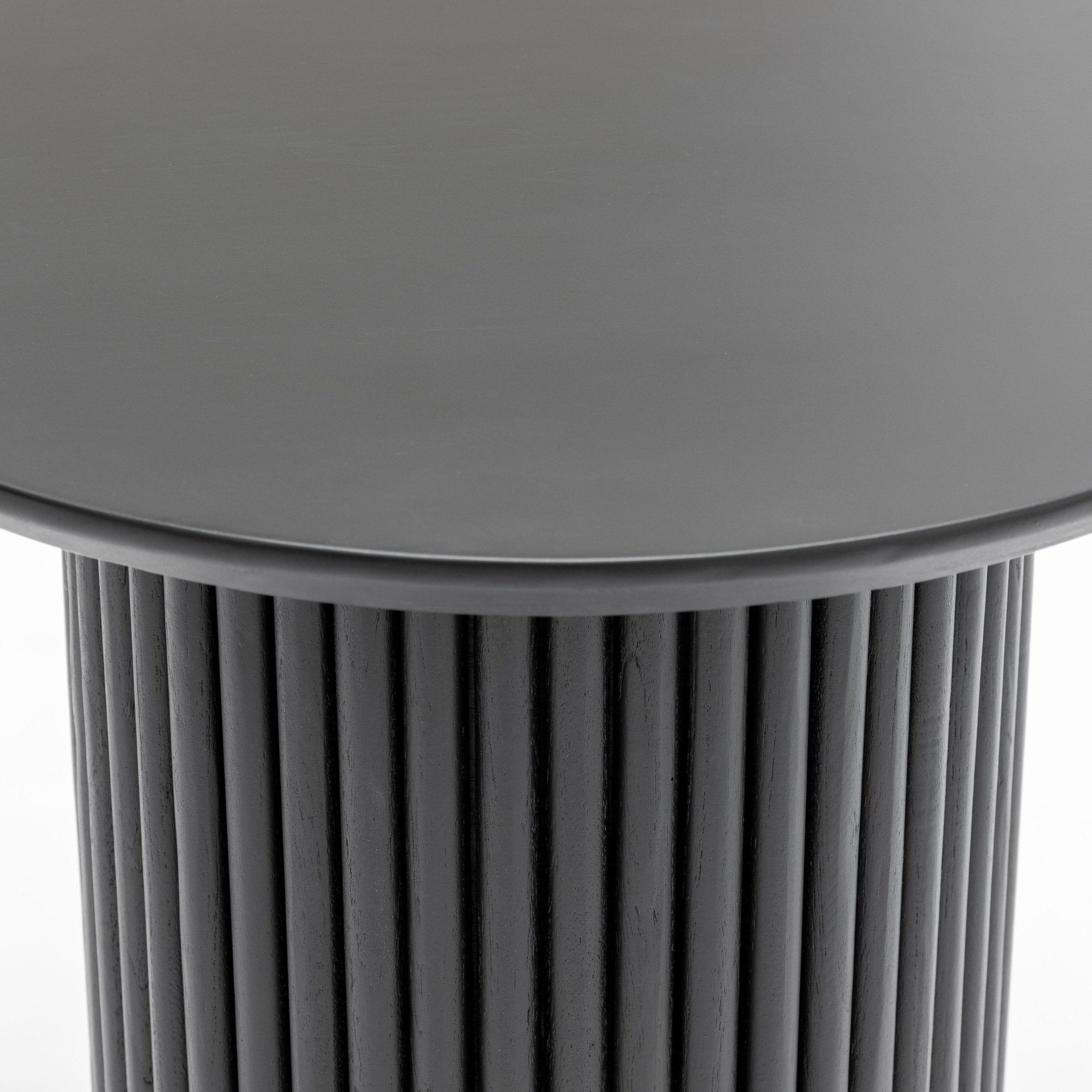This modern-shaped piece features a subtle ribbed motif and a soft rounded edge. Made out of solid teak wood, this modern side table offers a clean look with just the right amount of texture.