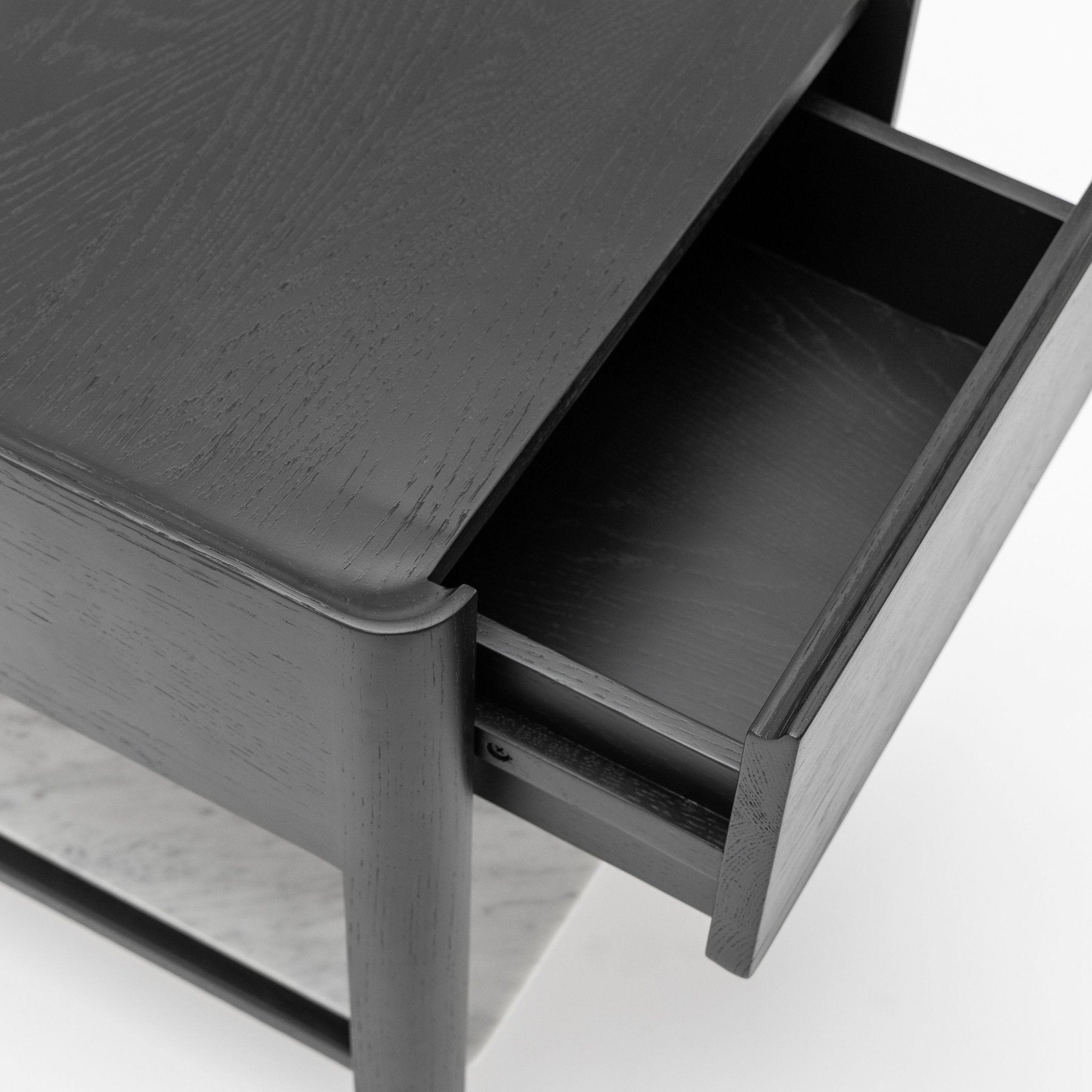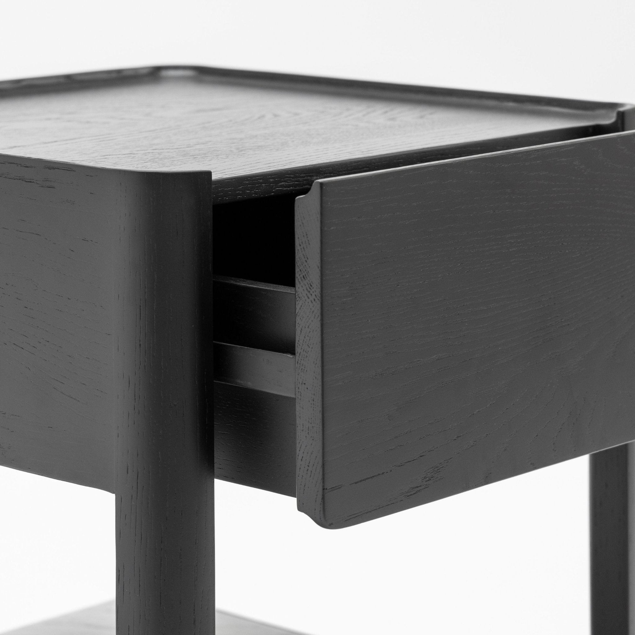 Tye was born from a place of function and minimalism. The bedroom is a place for rest, without need for distractions and ornaments. The rounded legs keeps your shins safe, and the scooped-out top provides a safe shelf for your bedroom essentials while offering a comfortable pull for the draw that stores your personal items. By choosing the marble shelf, you add an element of surprise and contrast to your sacred space.