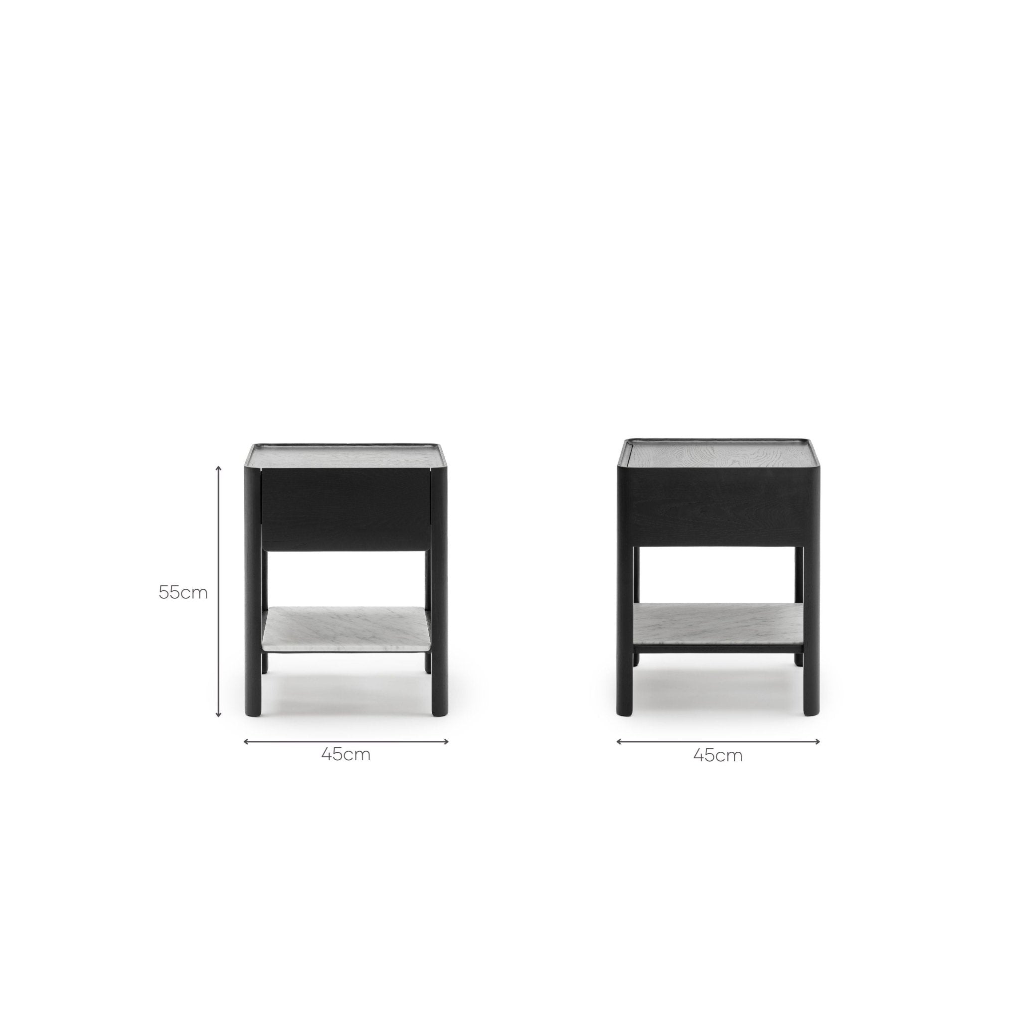 Tye Nightstand 45 - Black Oak & Bianca Carrara