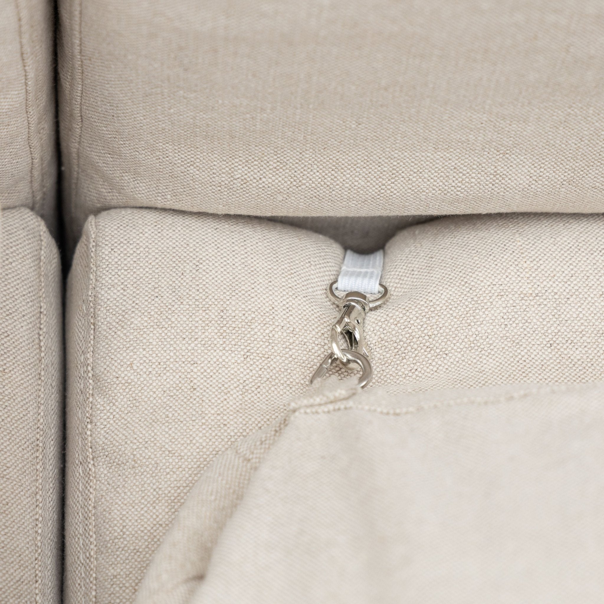 The Feather core is wrapped in a specially selected down proof fabric that does not allow feathers to penetrate and leak out of your sofa cushions Seat cushions have hidden elastic connectors for added stability of the cushion |