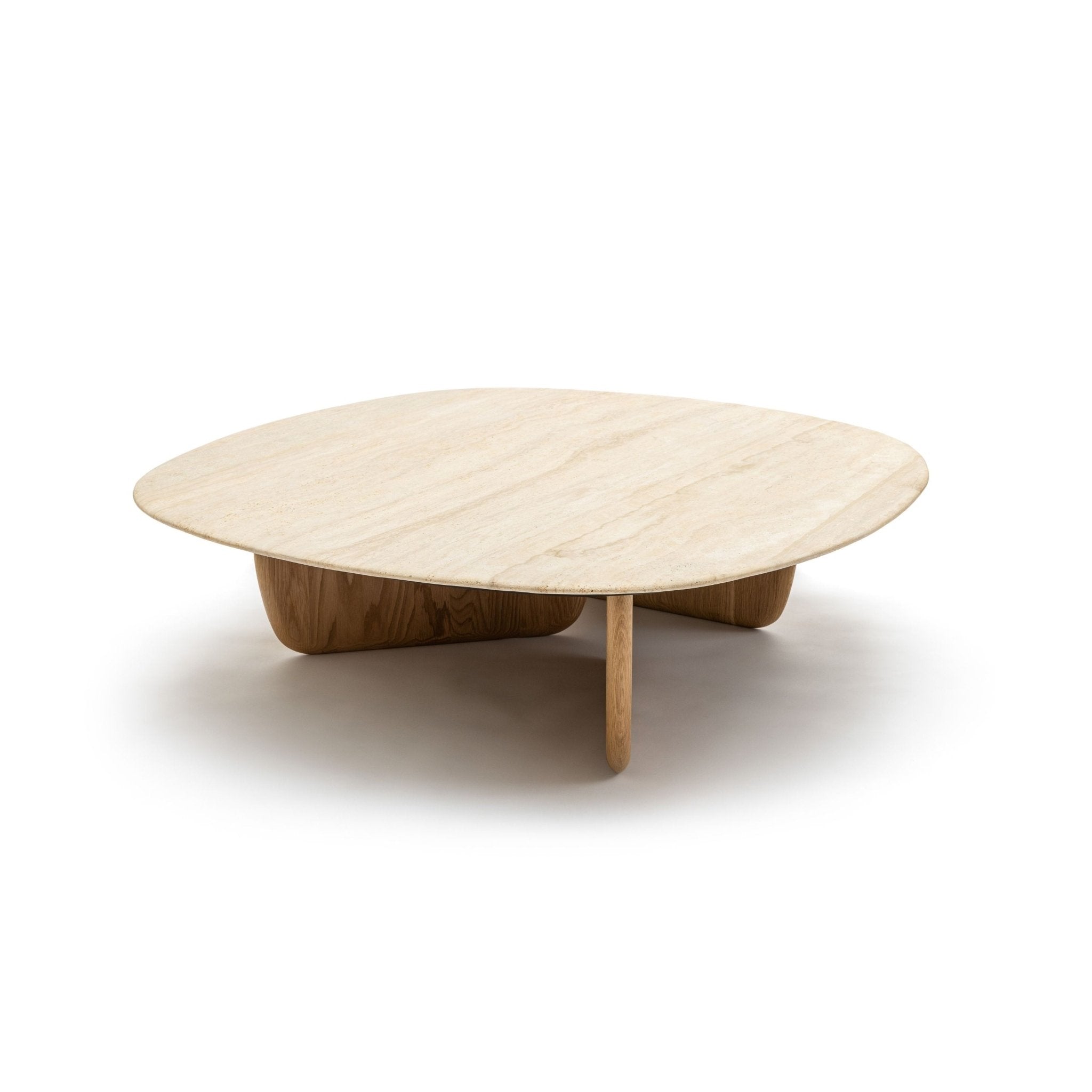 Eden coffee tables celebrate organic forms - from the travertine top, which features no edges at all, to the timber supports that reject mathematical order in their placement and shape. Perfect for a sophisticated interior celebrating honest materials and seeking relief from geometry. Like ancient geological formations, these coffee tables represent a balance and composure that is only ever found in nature.