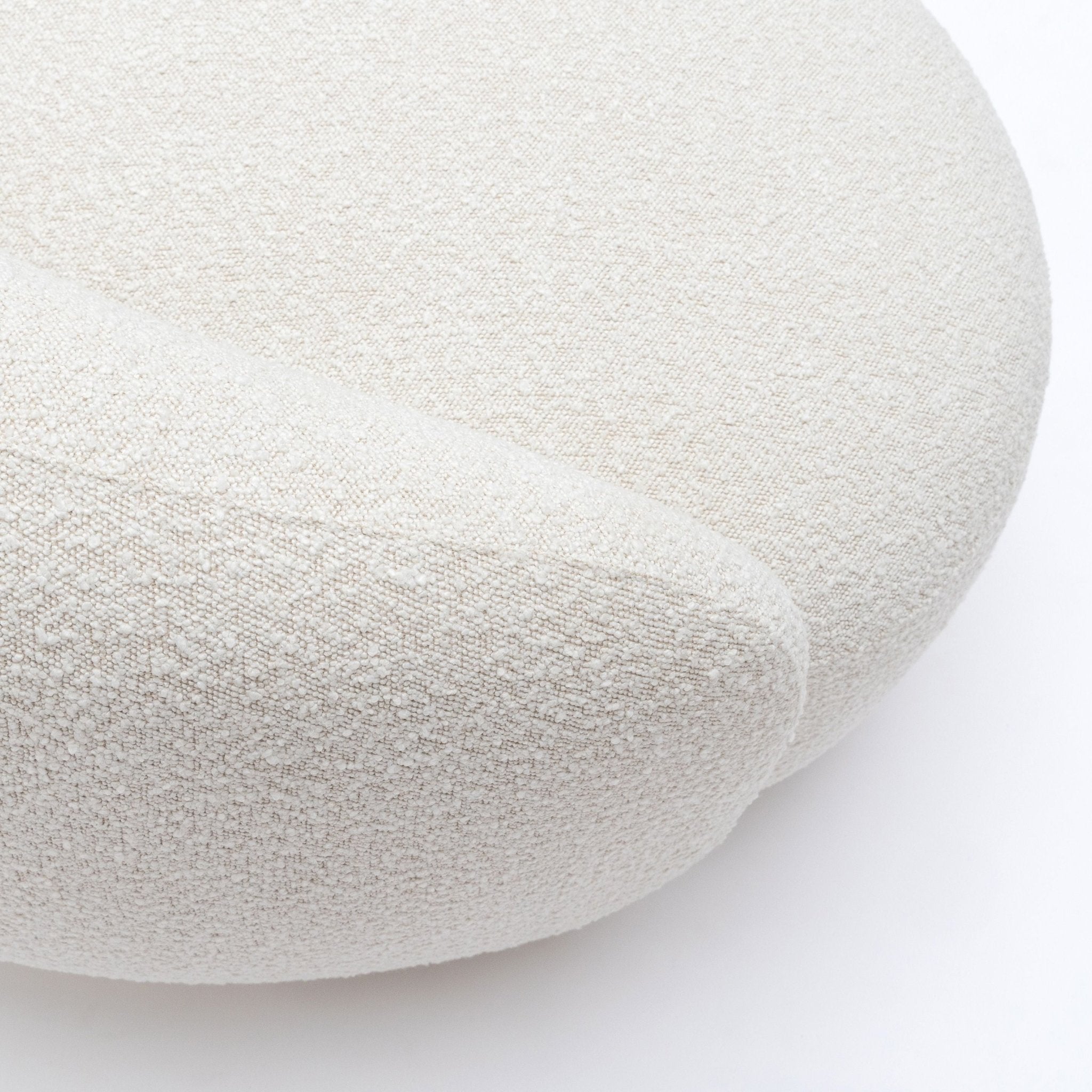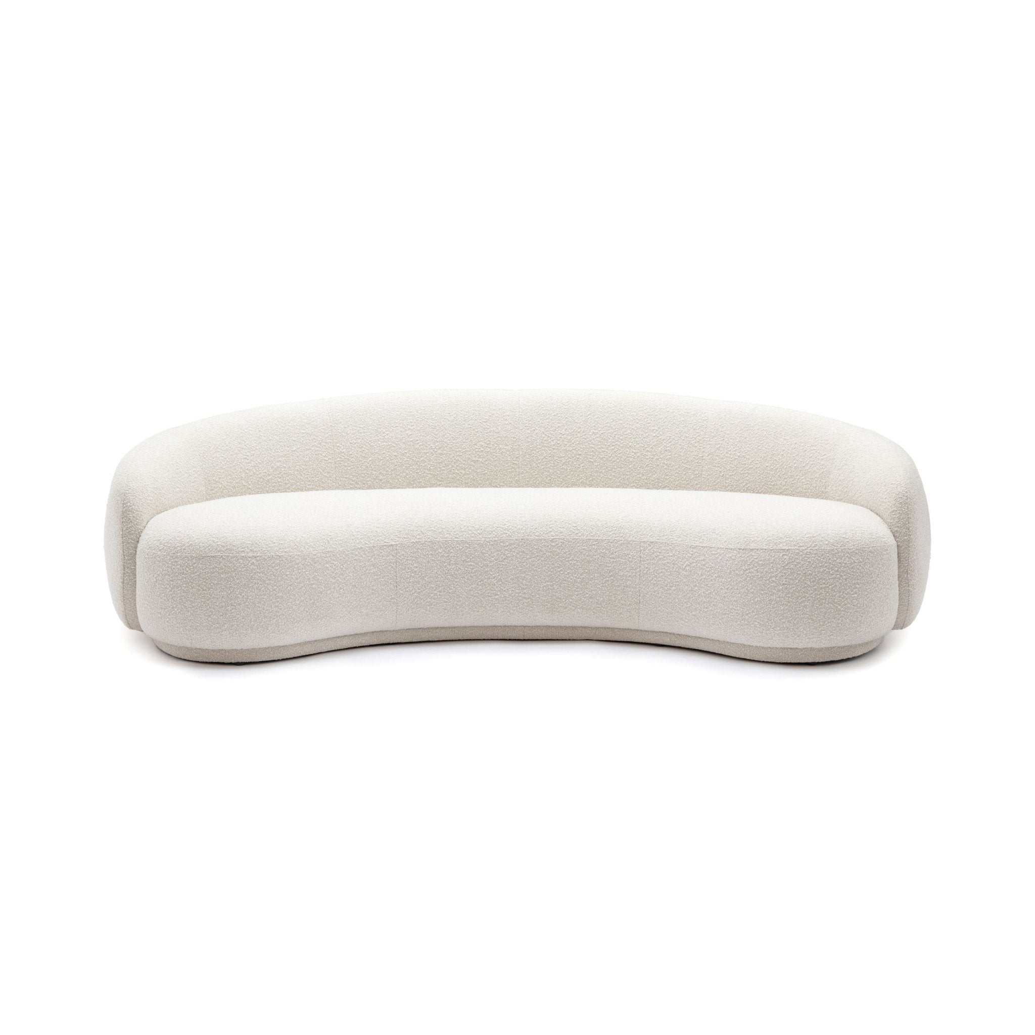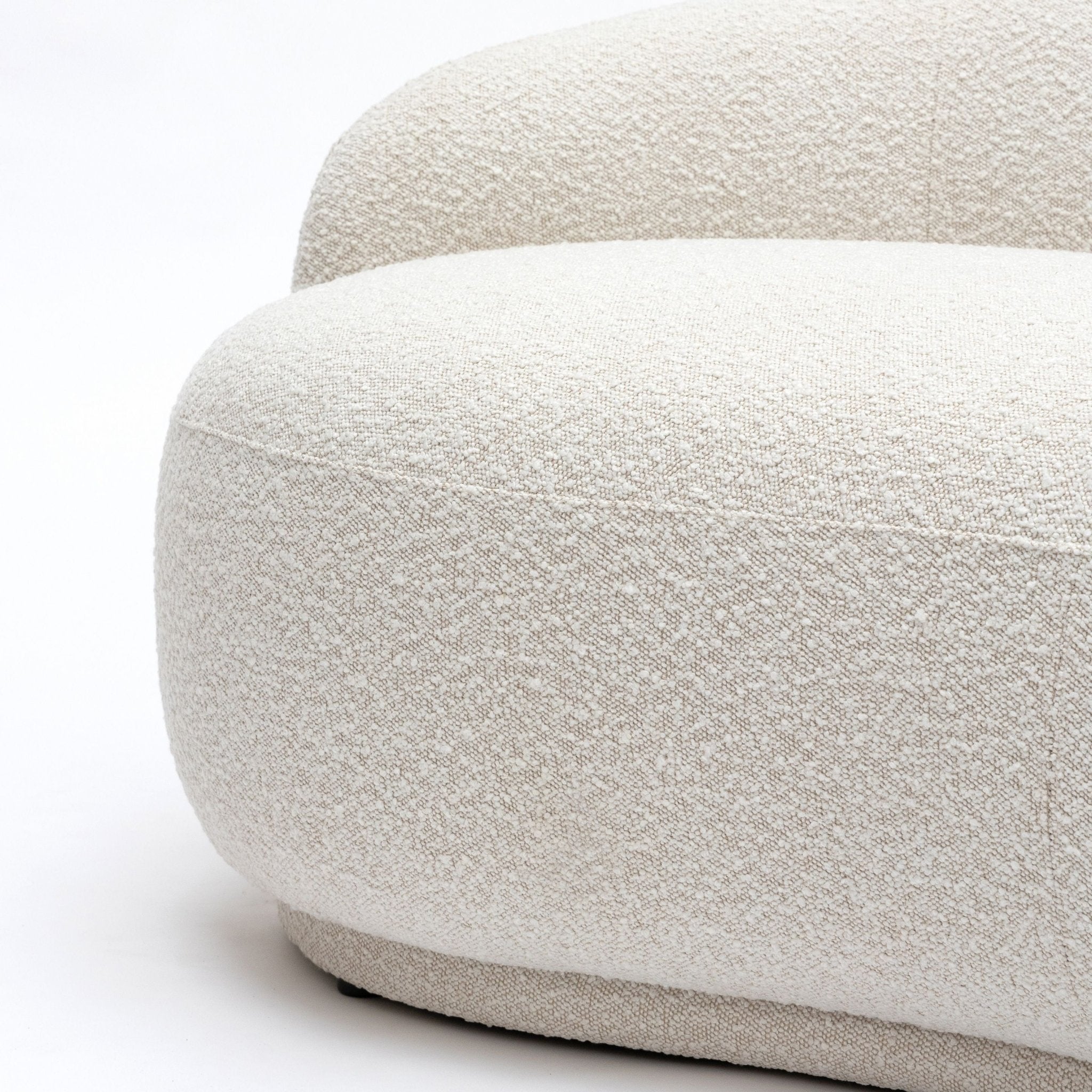 The Cashew sofa is a curved statement sofa with rounded angles and an exaggerated back. This modern sofa is covered in a rich, ivory boucle fabric. The epitome of true craftsmanship and contemporary style, its rounded shape and fabric are inspired by mid-century, retro design but updated with a modern twist. The high-density foam cushioning in the seat and backrest promises superior comfort.