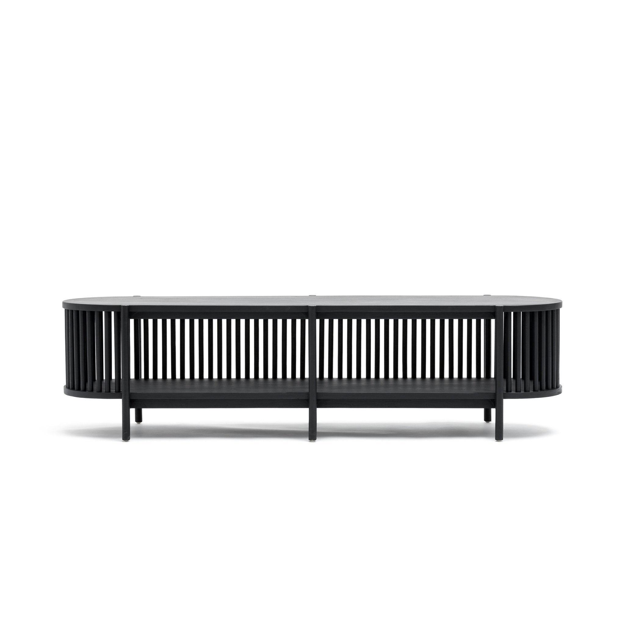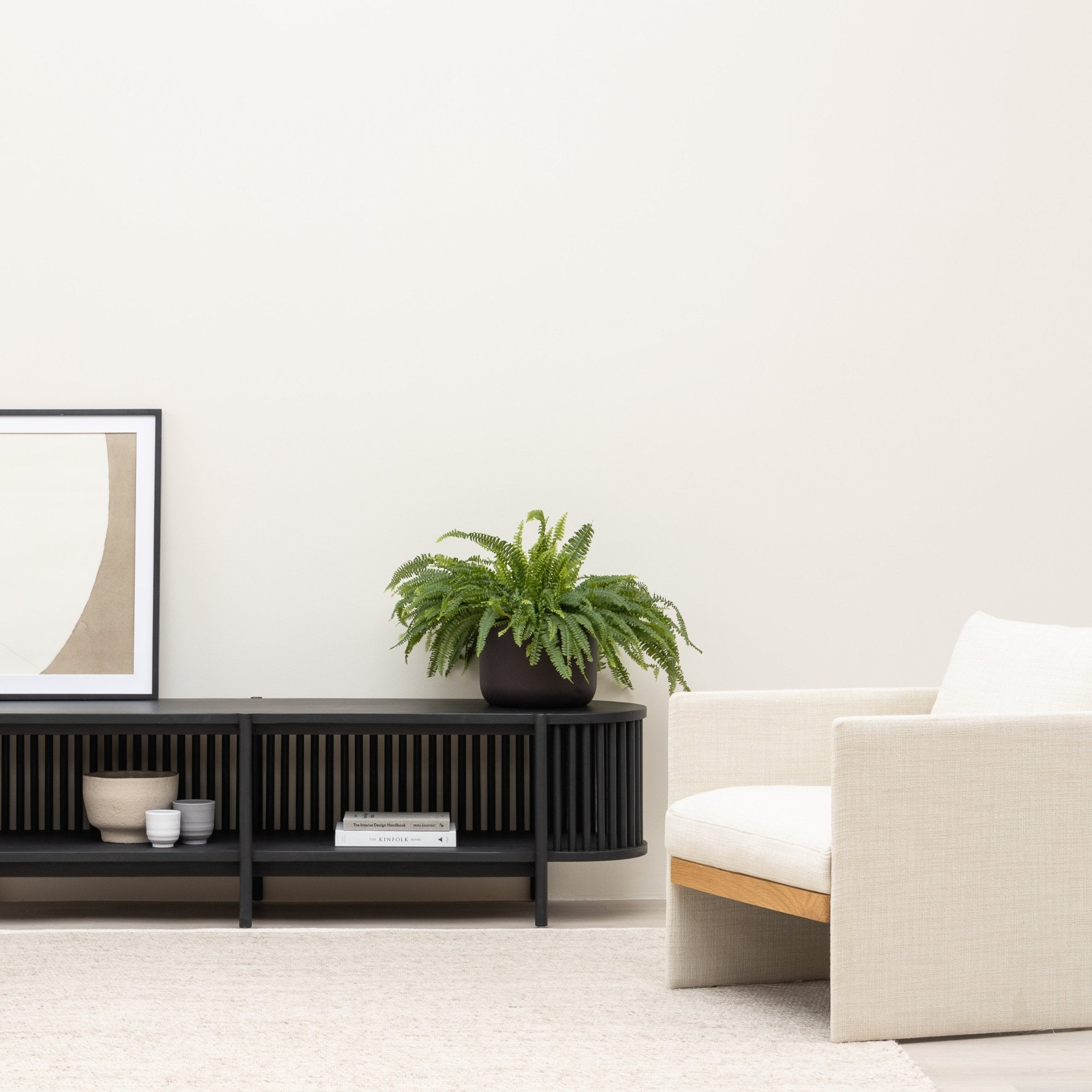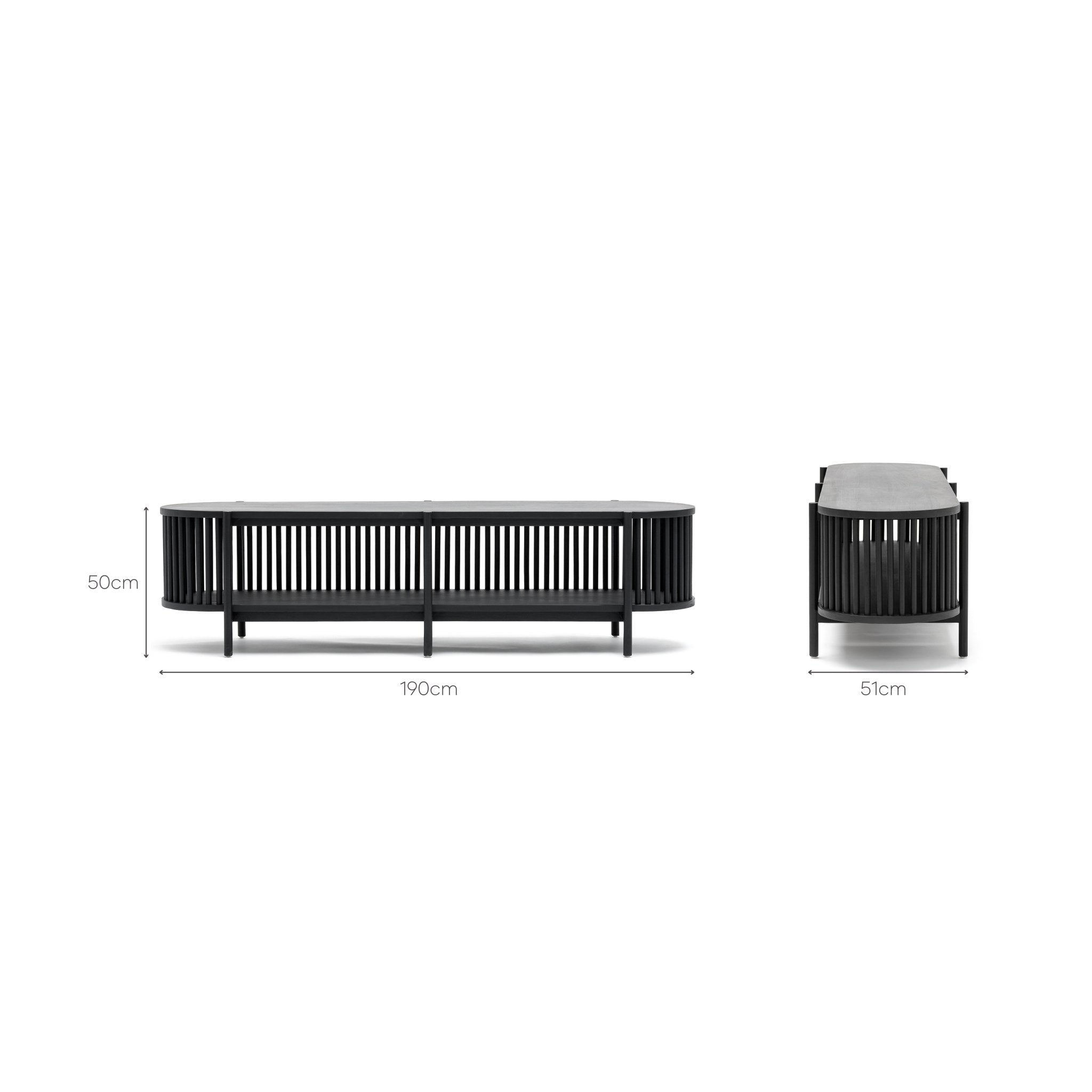 With a nod to the Balinese style, the Zara collection features dowel open shelving made from solid teak wood. The curvilinear shapes add visual interest and its clean-lined silhouette is elevated by detail-rich wood grain.