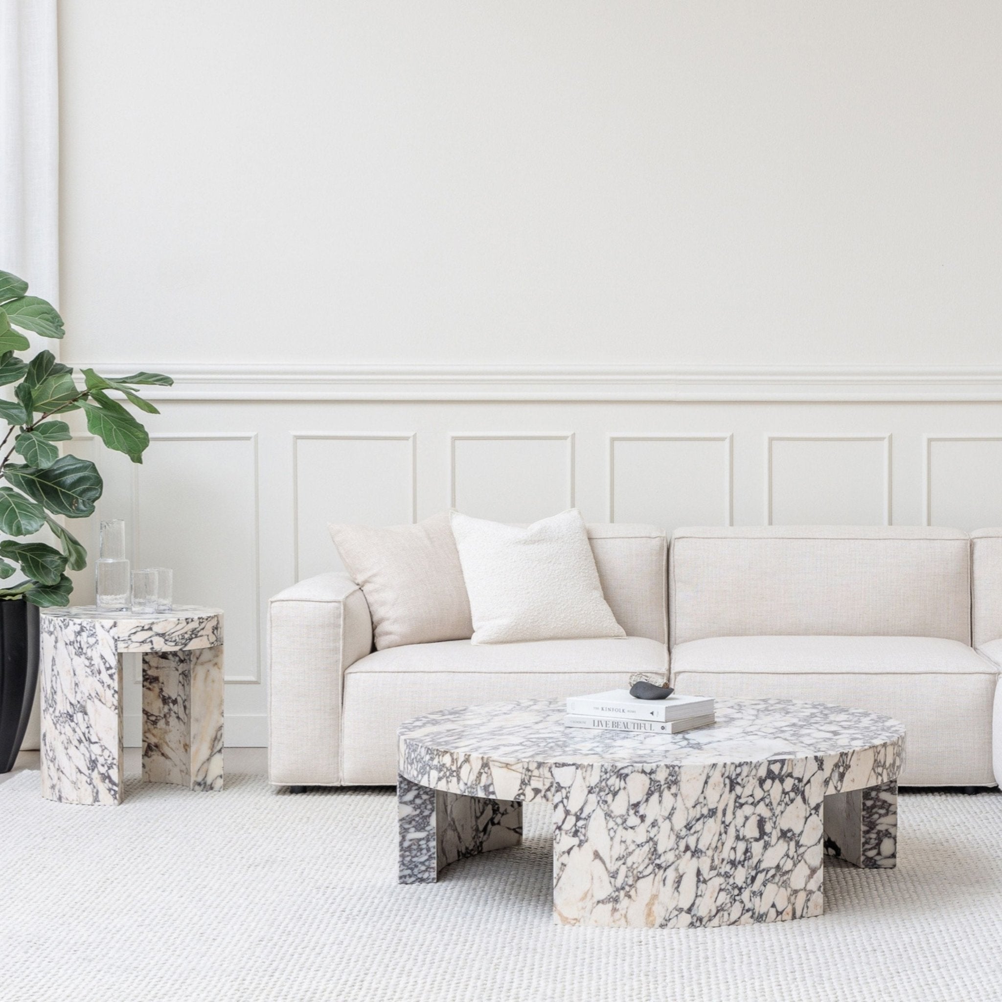 | Materials | Italian Calacatta Viola Marble veneer Honed and sealed |