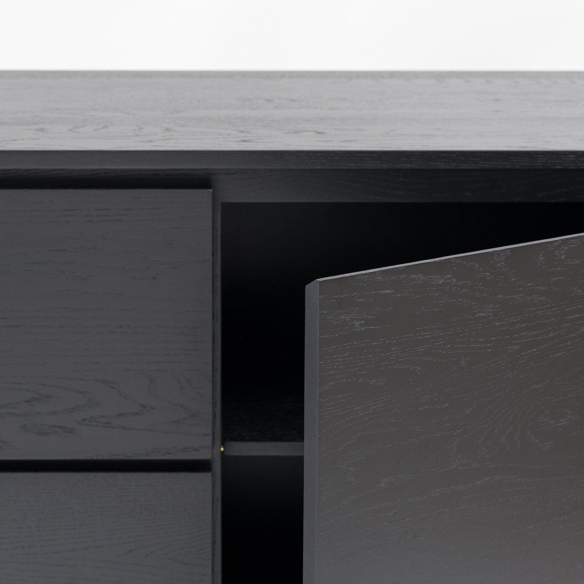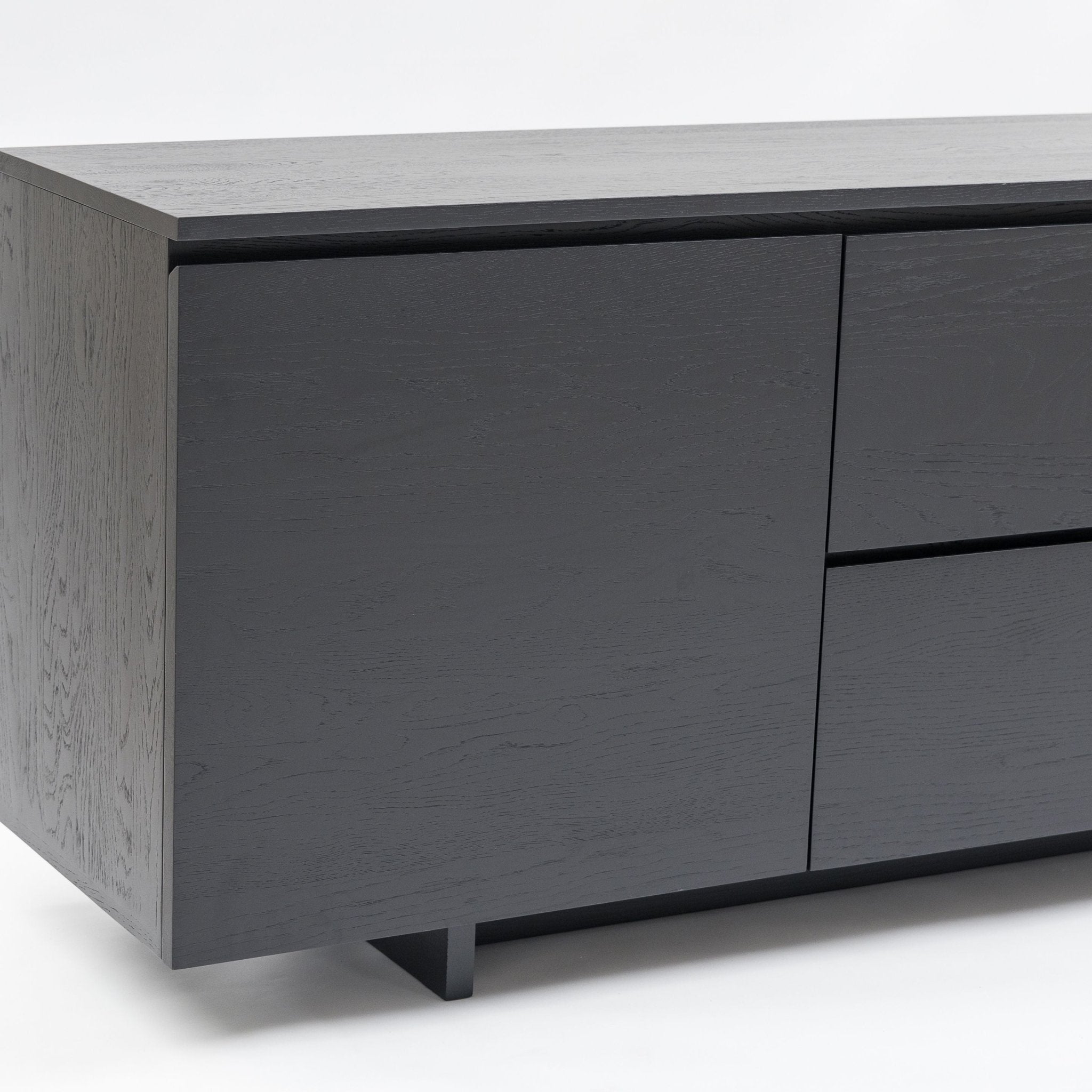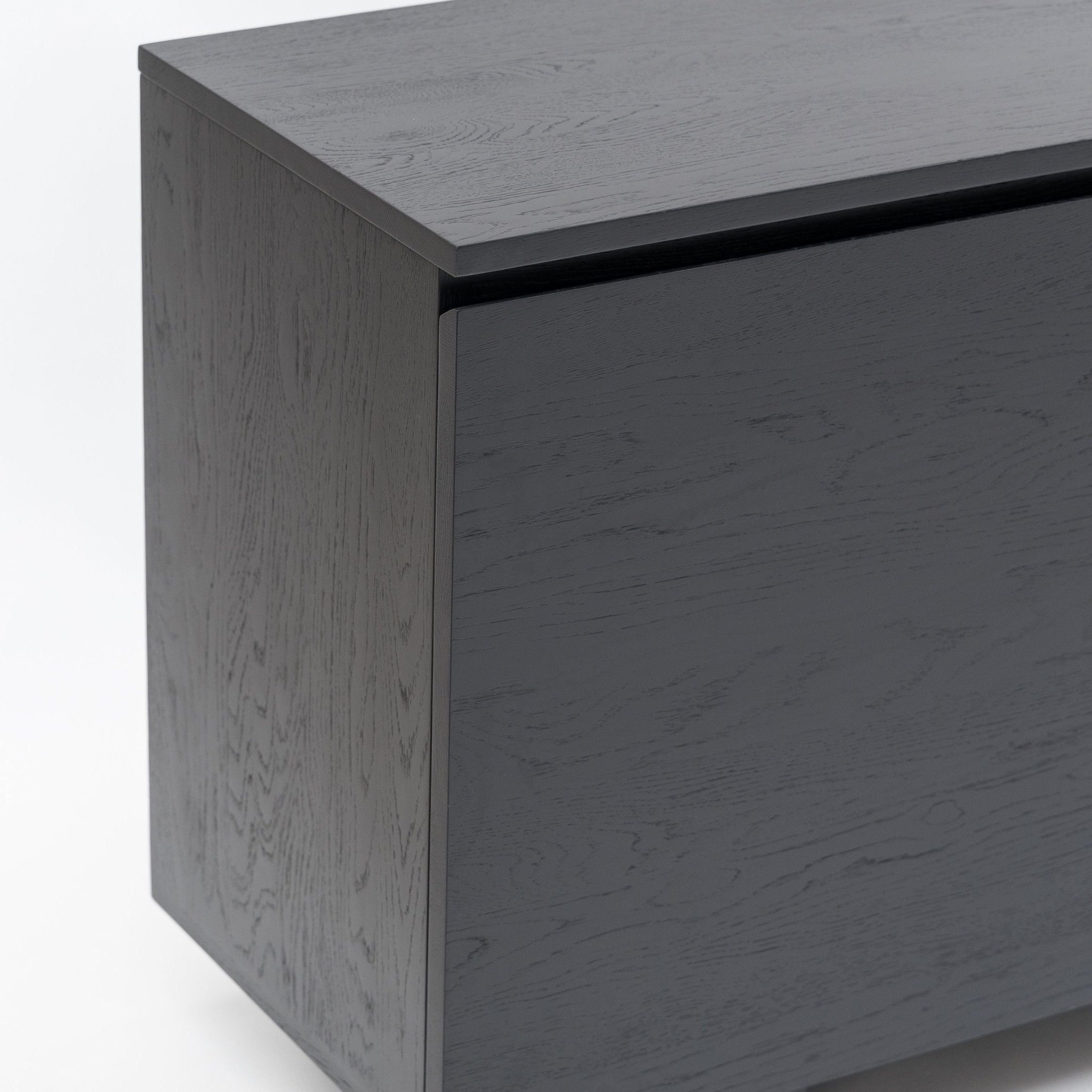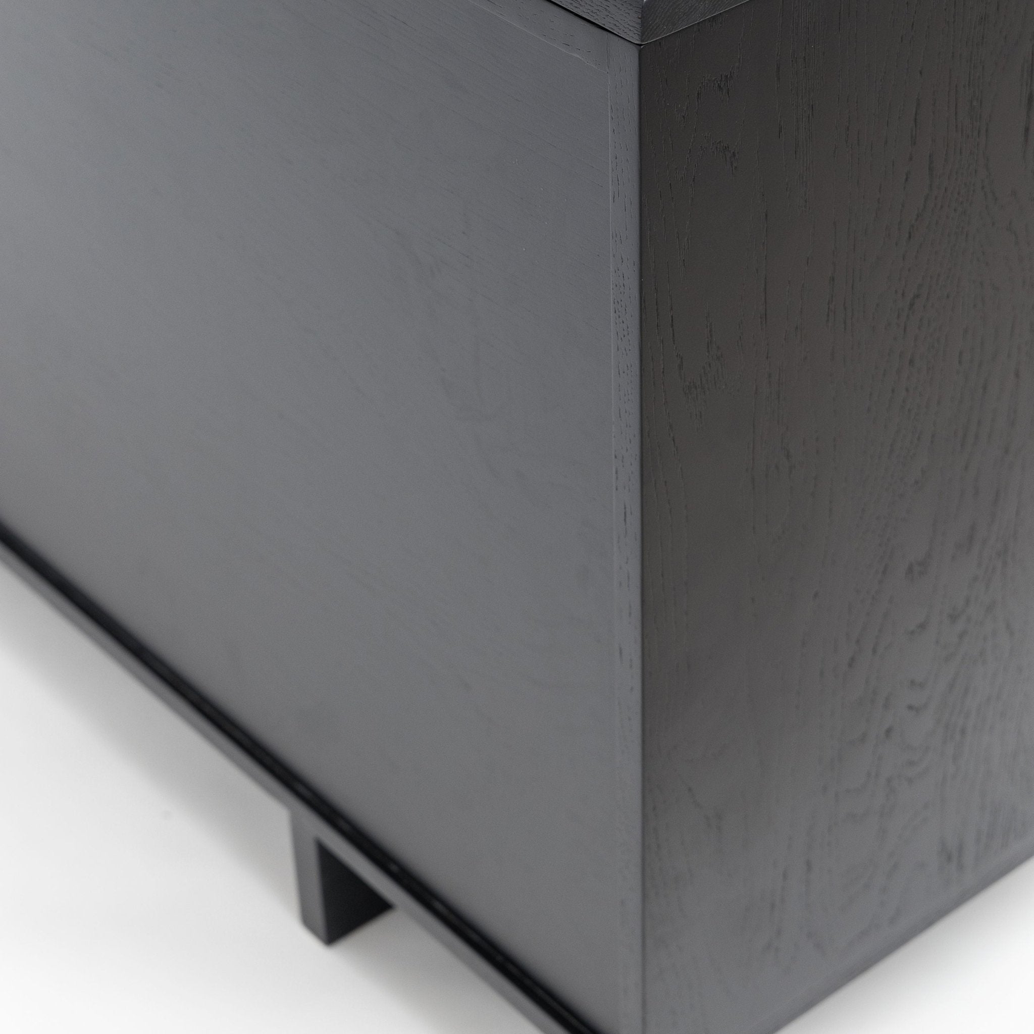 Solidity and practicality are themes of the Kami cabinets. Thick planks join together in a minimalist, unadorned style; generous storage spaces are framed by a clean, linear form boiled down to the essentials. A timber plinth base grounds the reassuringly chunky form. Solid oak or natural stone can be selected for the top panel