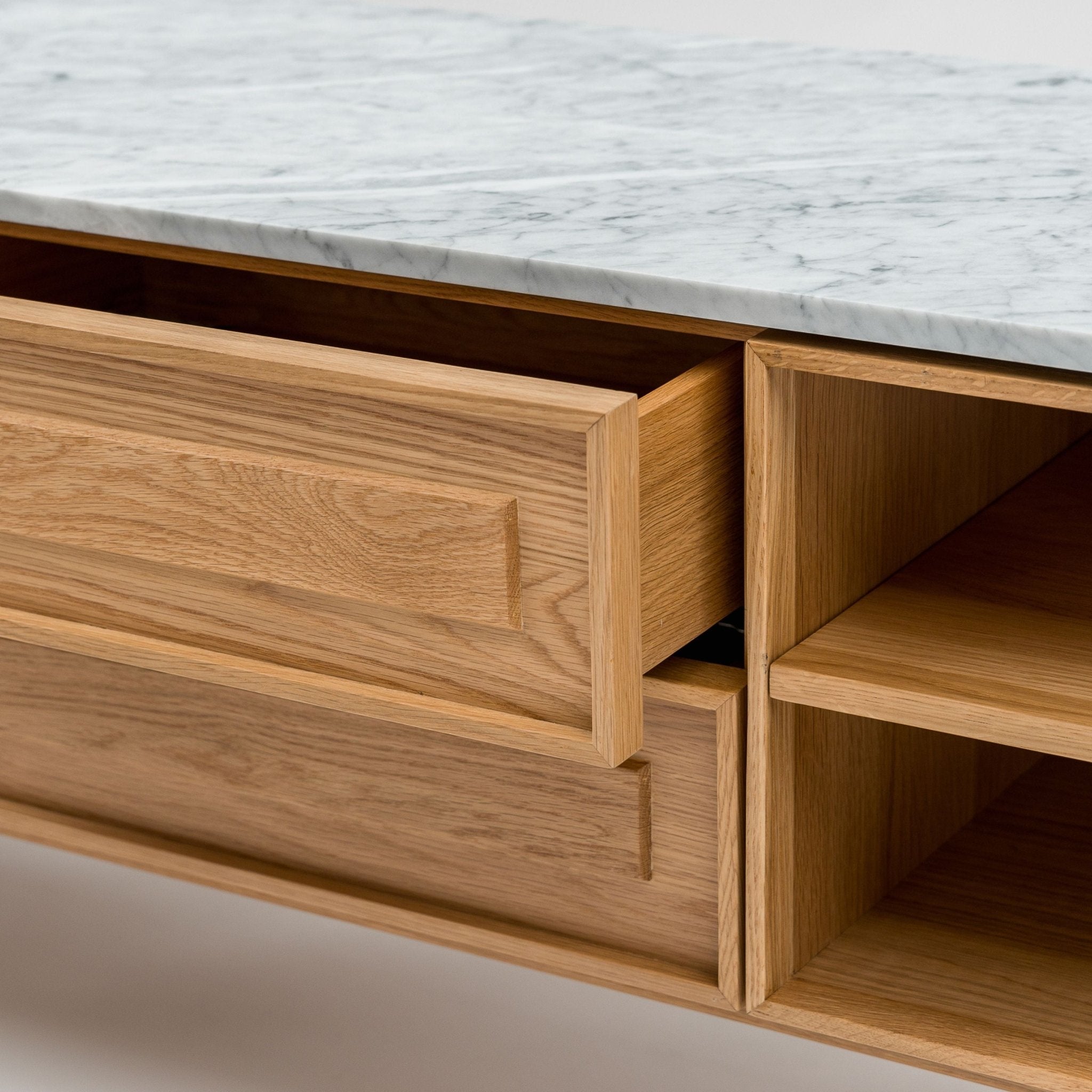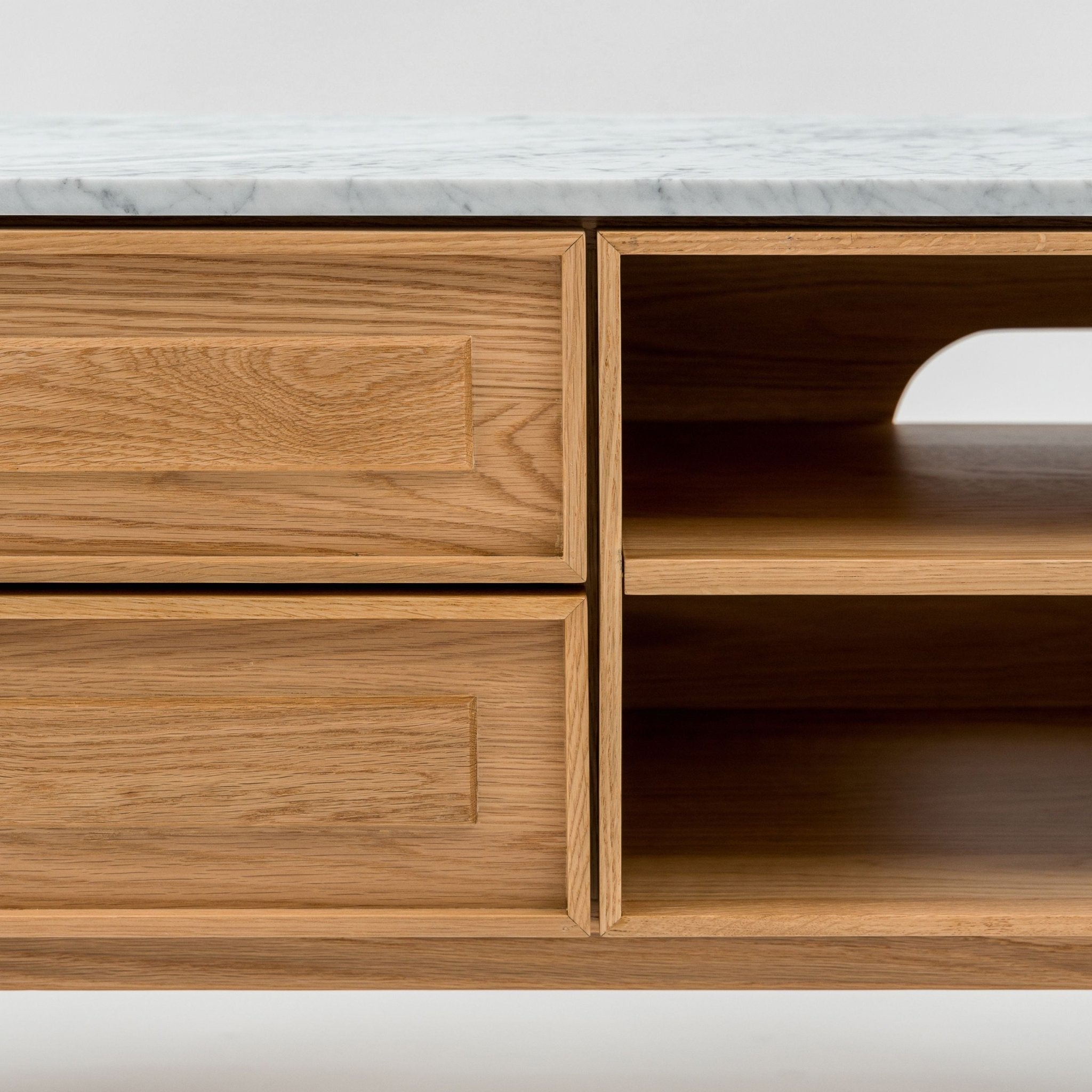 | Materials | Premium American solid oak Genuine Marble top MDF with oak veneer panels |