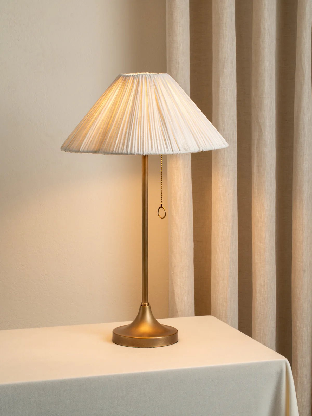 Lindi - Aged Brass And Scalloped Linen Table Lamp