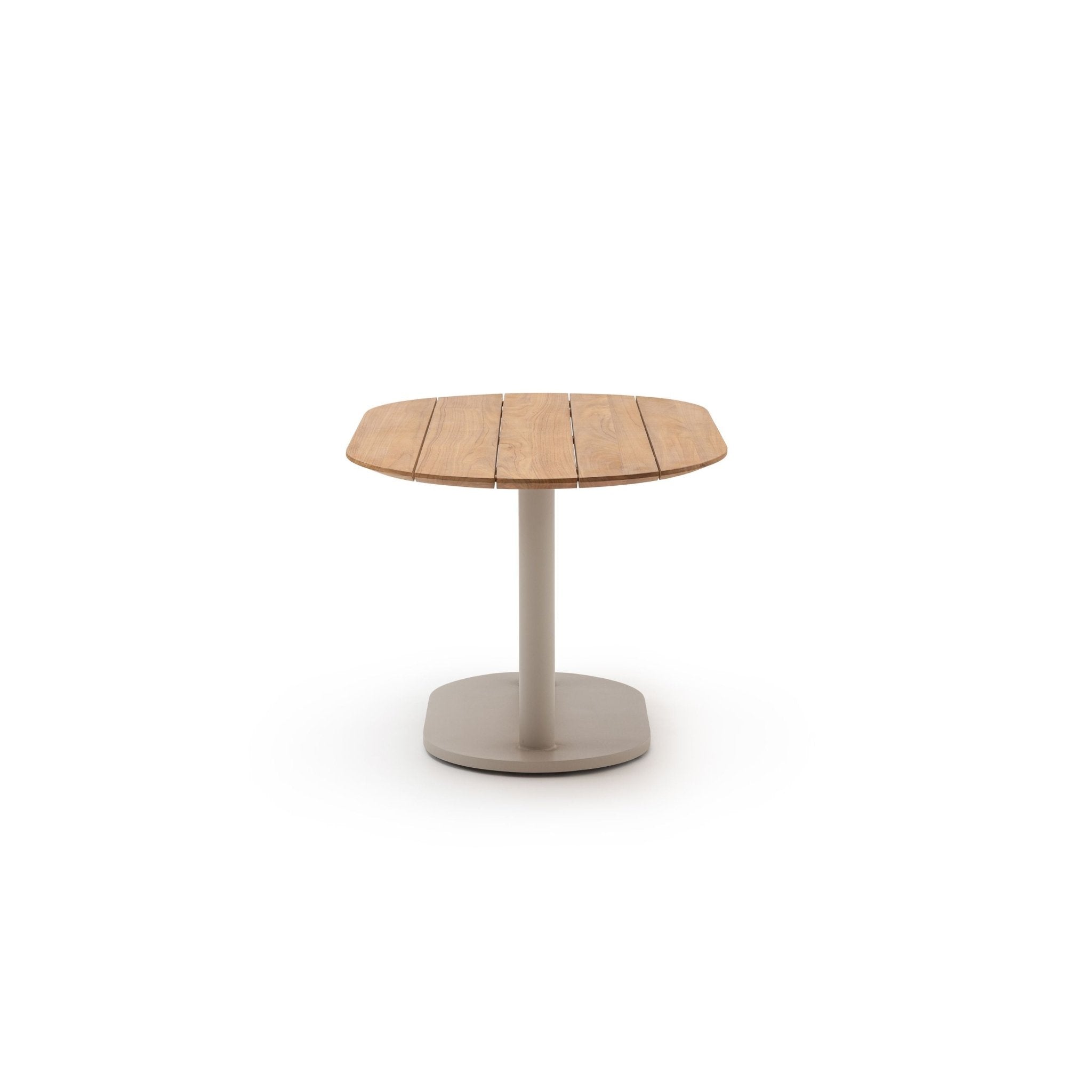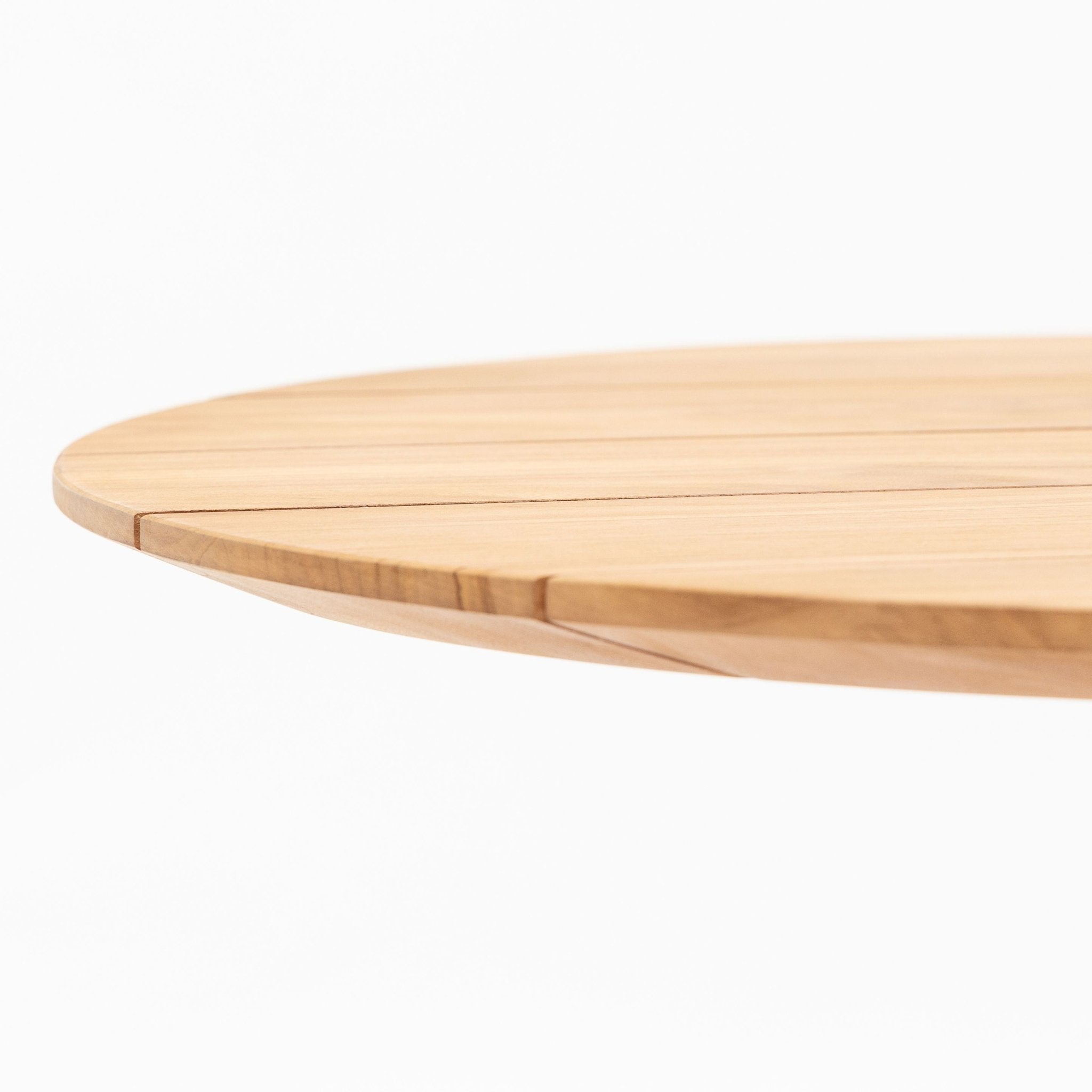 Materials  The tabletop is crafted from genuine hardwood teak, and Powder-coated steel base