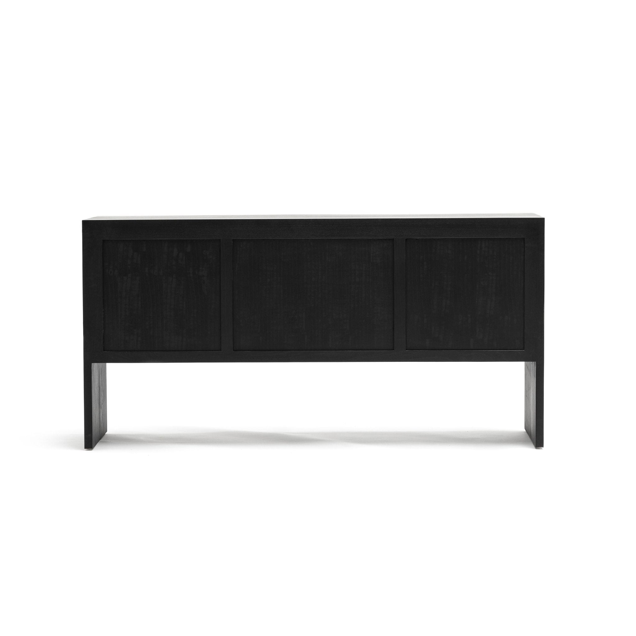This modern shaped piece, featuring a subtle ribbed motif, comes with generous, sophisticated storage including two drawers and two push open doors. Made out of solid teak wood, this modern sideboard offers a clean look with just the right amount of texture.