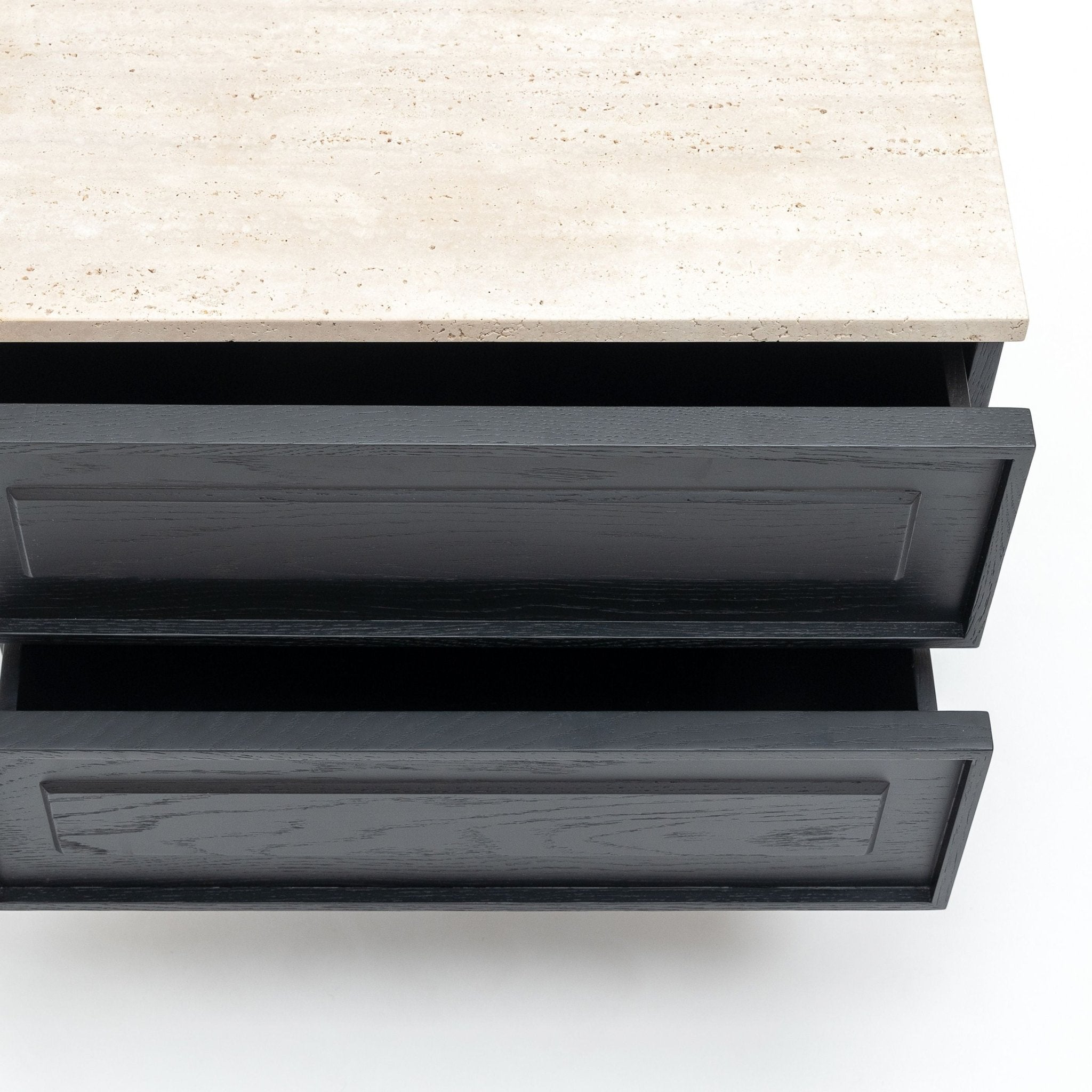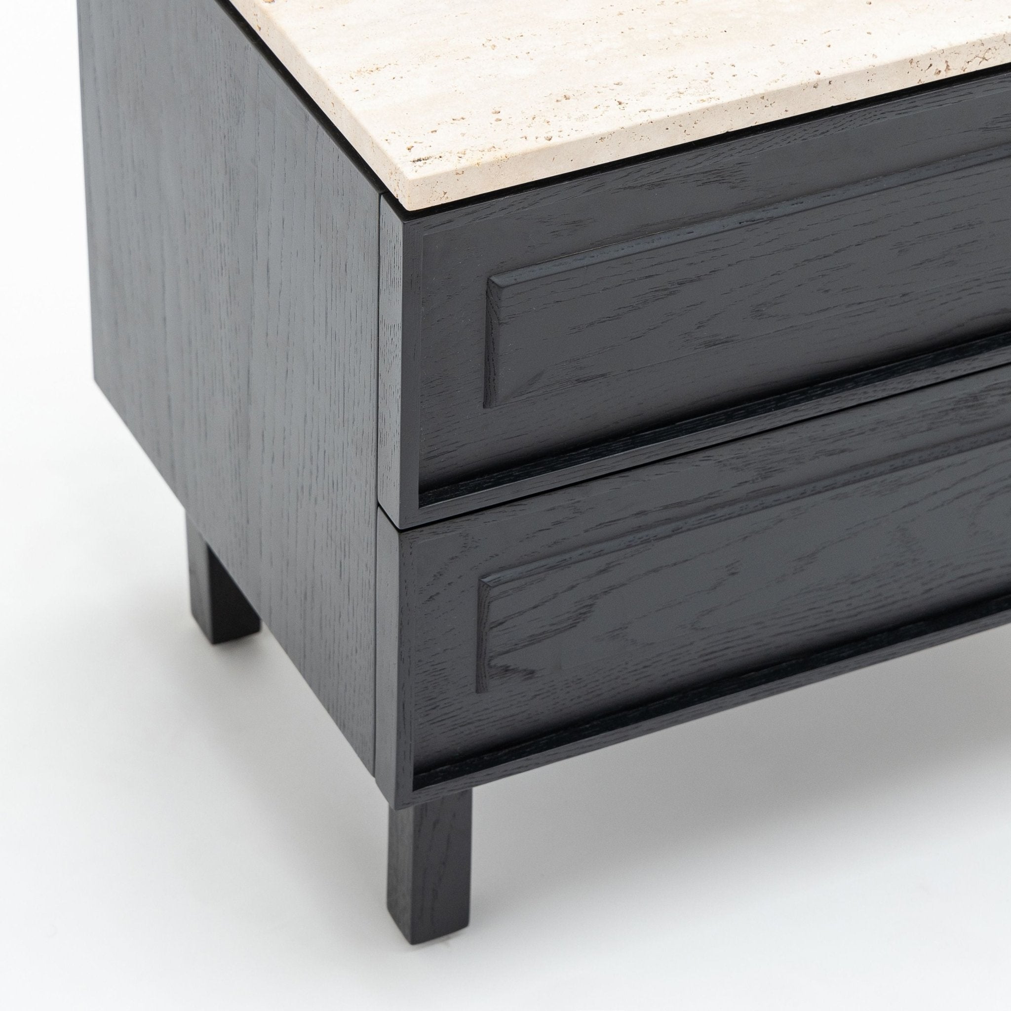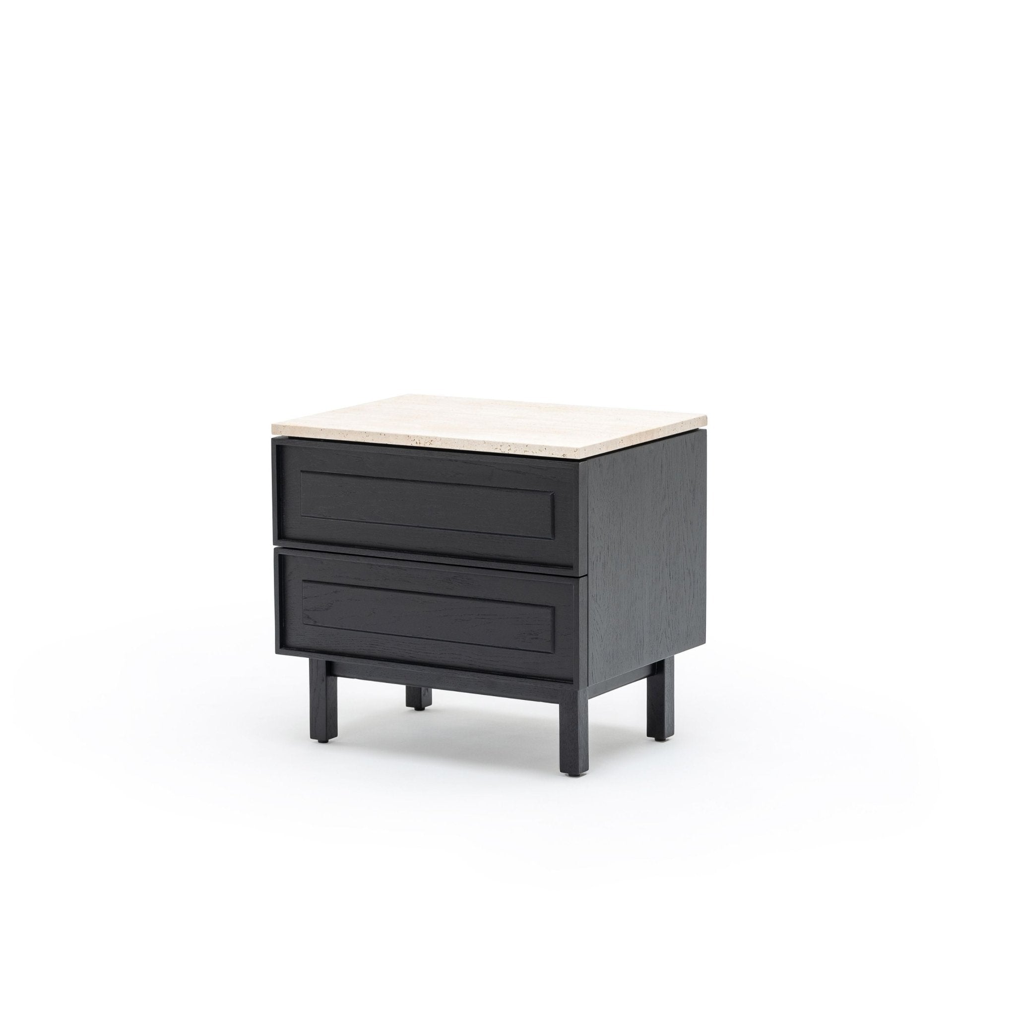 Yorke Nightstand - Black Oak & Travertine