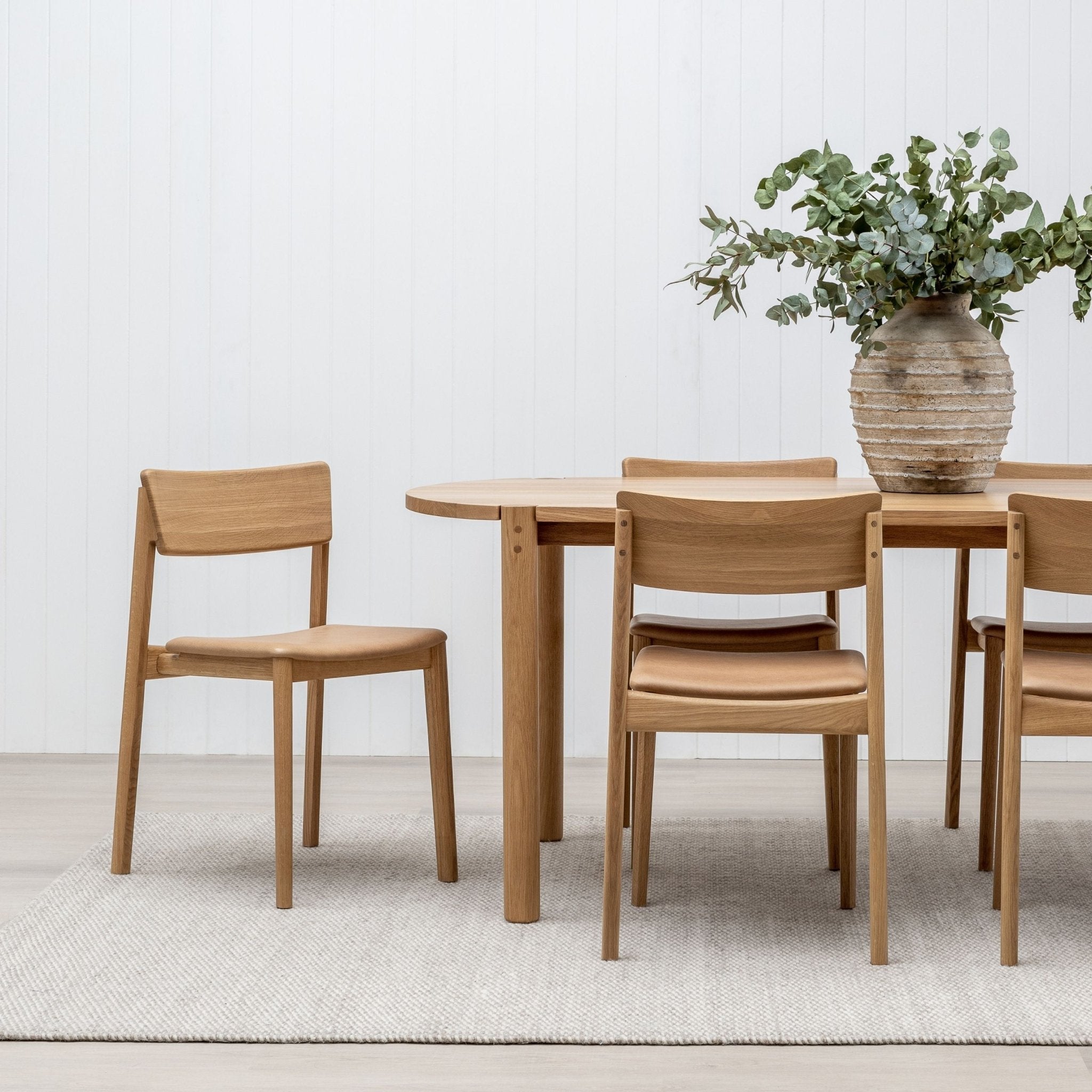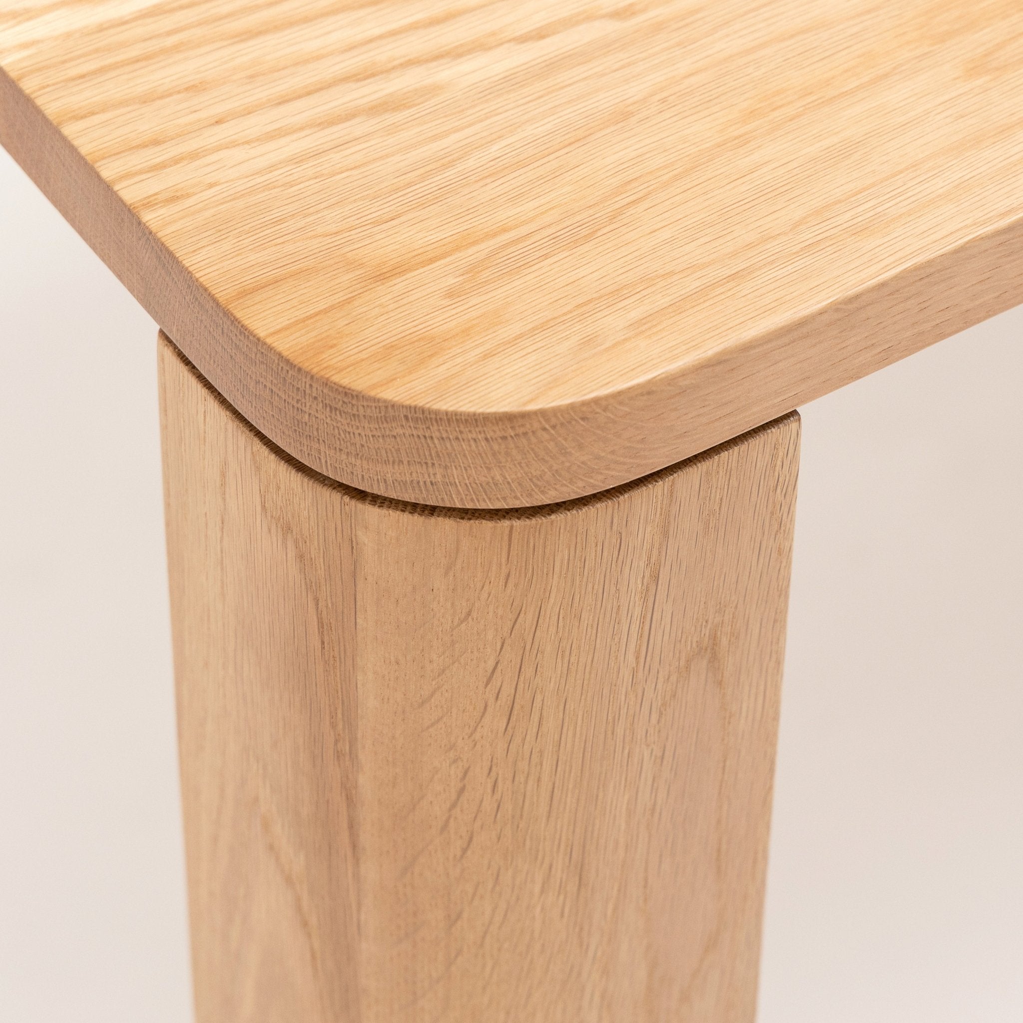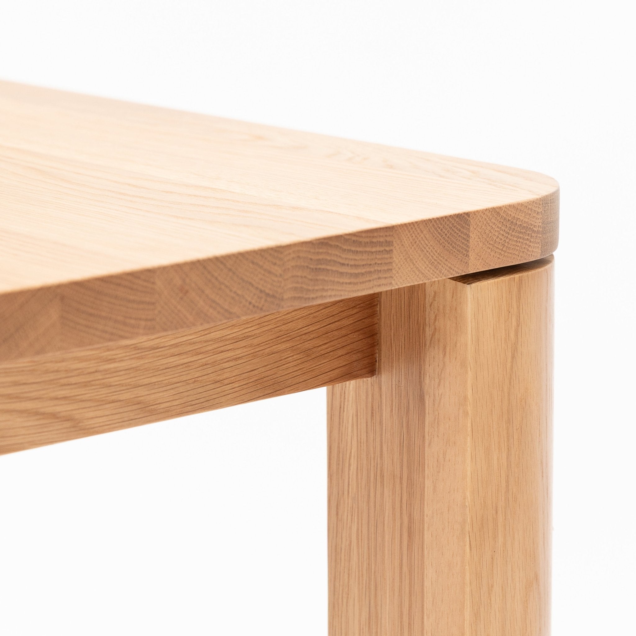 Oli is a steady, solid wooden table. A practical and elegant table characterized by its signature rounded corner detail, the pure use of oak wood and a clear, elegant design language.
