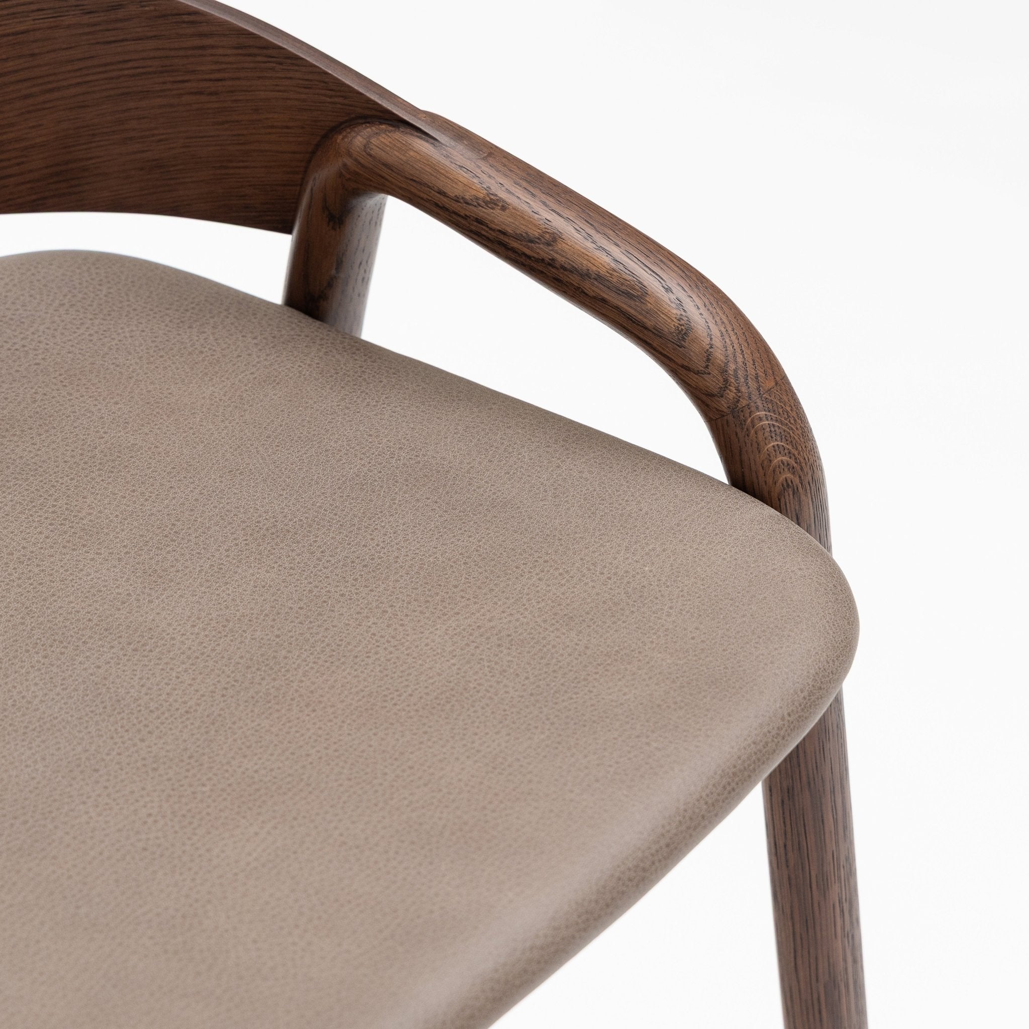 The design for Ryota Yokozeki’s Inlay counter chair comes from a desire to achieve new and challenging forms in wood while still showing respect for the material. Similar to an elegant letter form, the chair has a curving plywood backrest that merges seamlessly with the solid wood arms and frame. It’s available with an upholstered or wood seat.