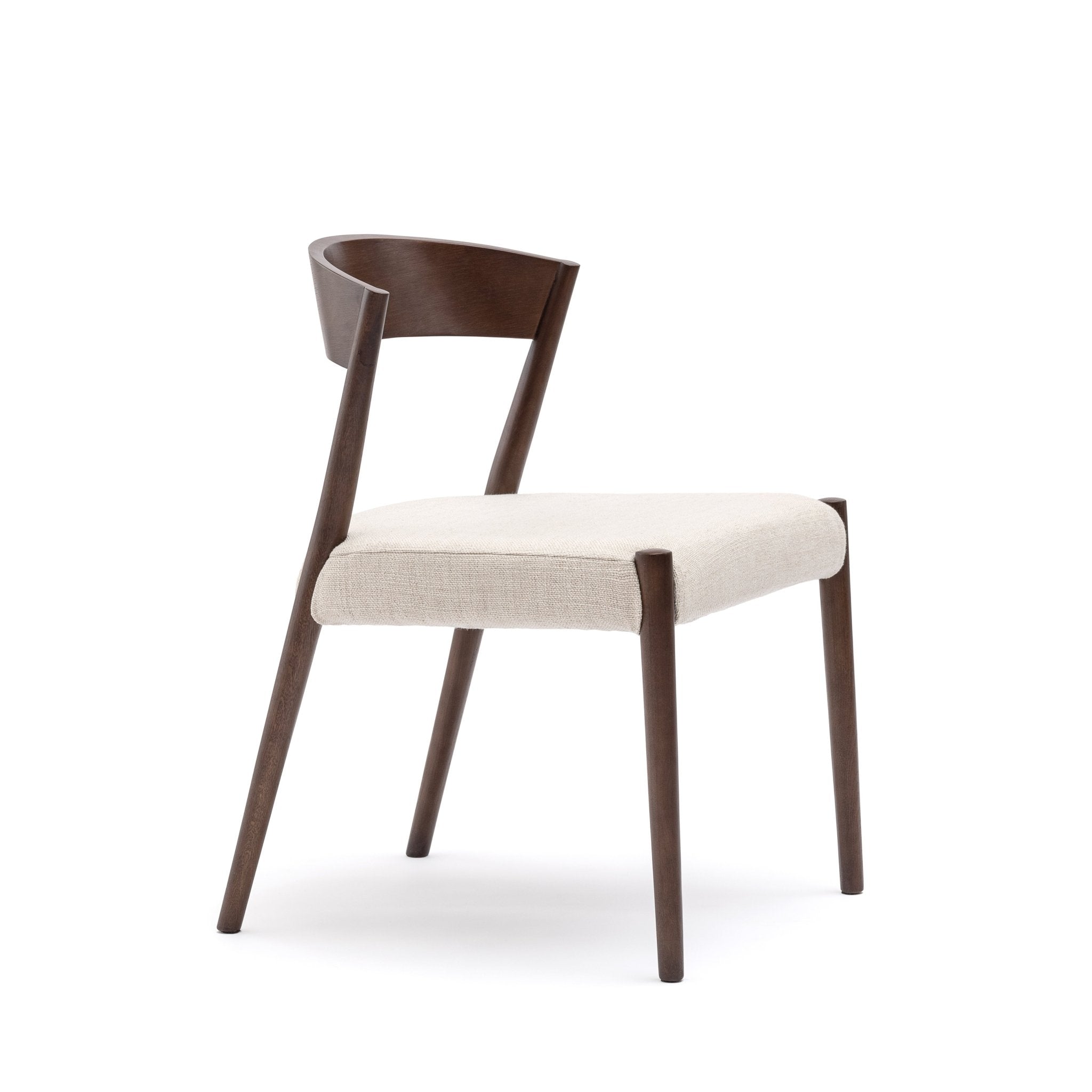 Ronda chair celebrates curves and carved shapes, and the happy marriage of solid oak to plywood. Satisfying comfort is provided by generous webbing support and high-density foam. with the practical advantage of being able to remove the seat cover for cleaning.