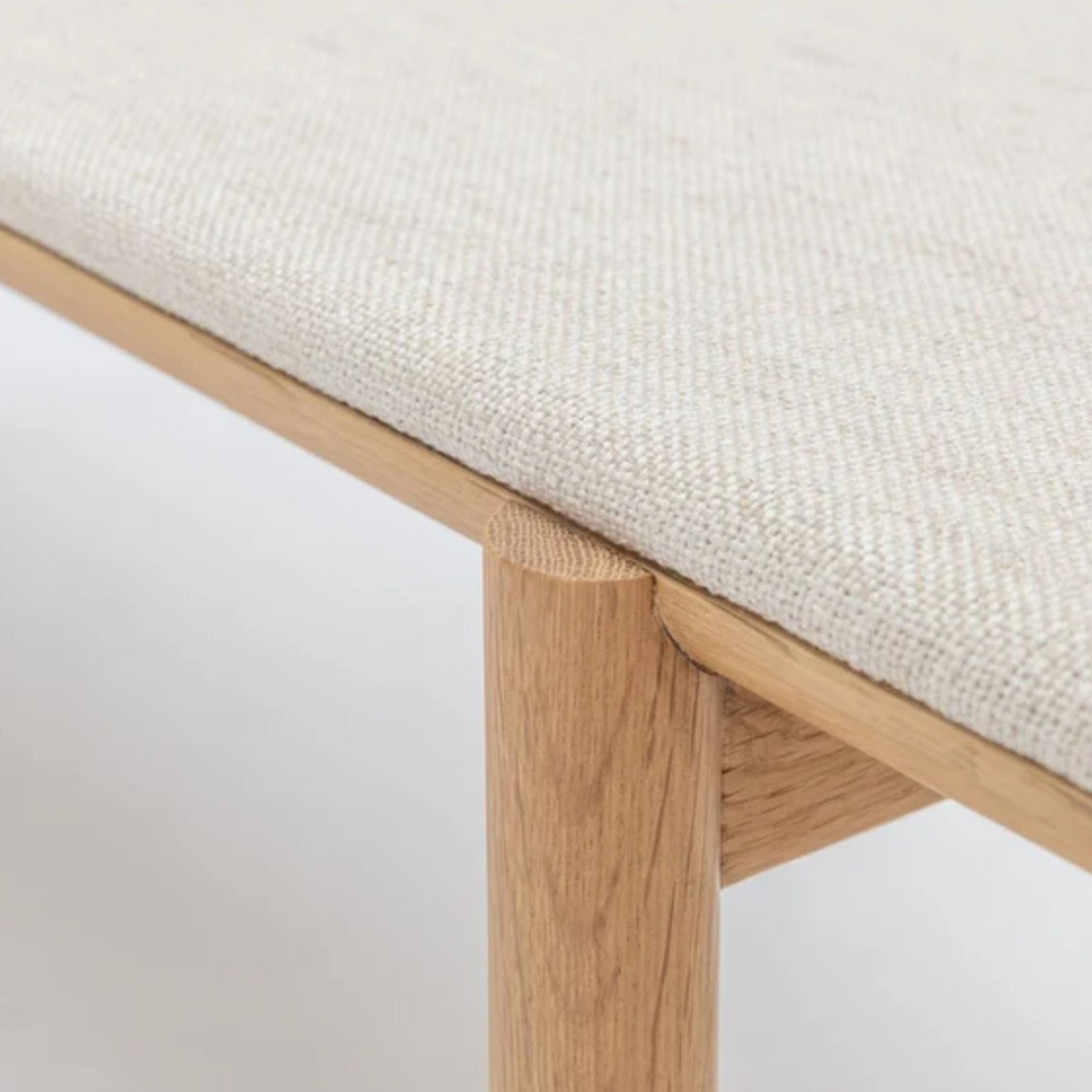 The Folk bench is a study in how to create a design which pleases the eye without resorting to superfluous decoration. The simple intersection of basic geometric shapes results in interesting and alluring forms while at the same time adhering to the less-is-more principle, and allowing the materials to shine. The clean and uncluttered look allows the Folk bench to combine easily with various dining tables, or to stand alone as a bedroom or hallway piece.
