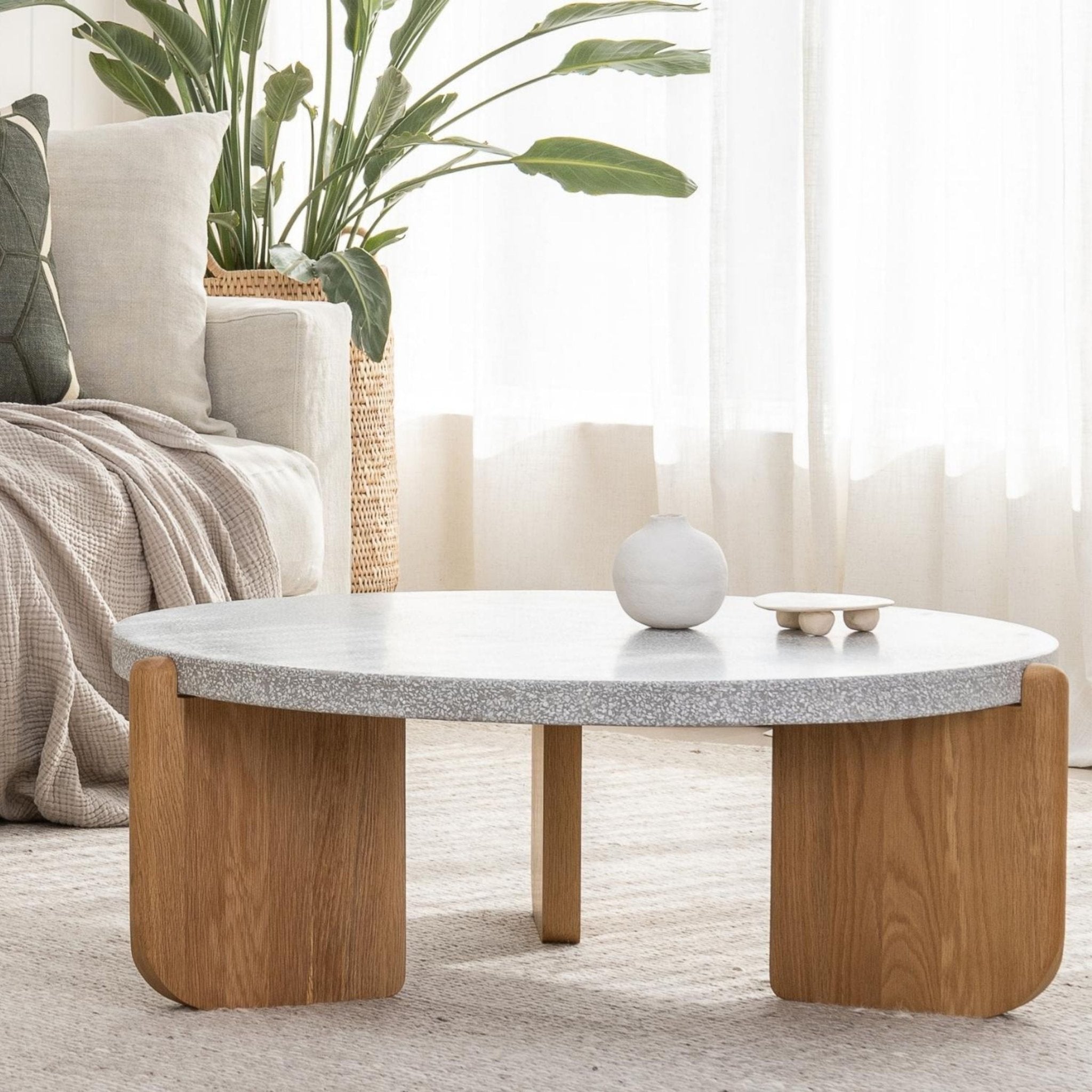 Native Coffee Table - Warm Cement & Light Oak