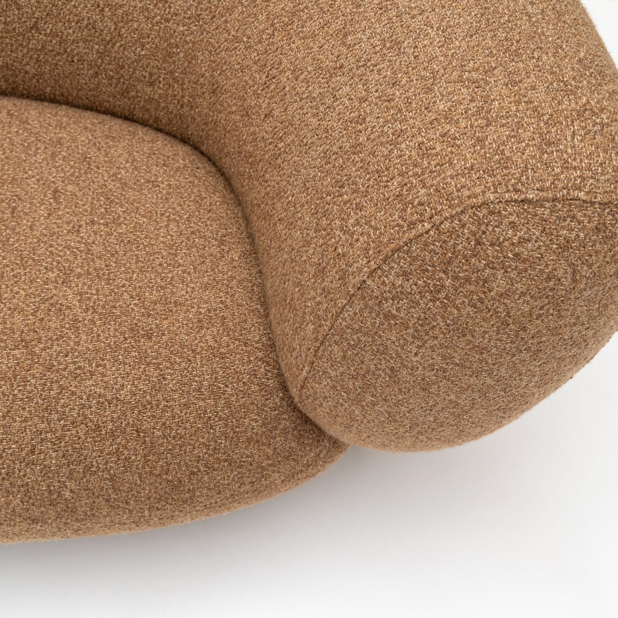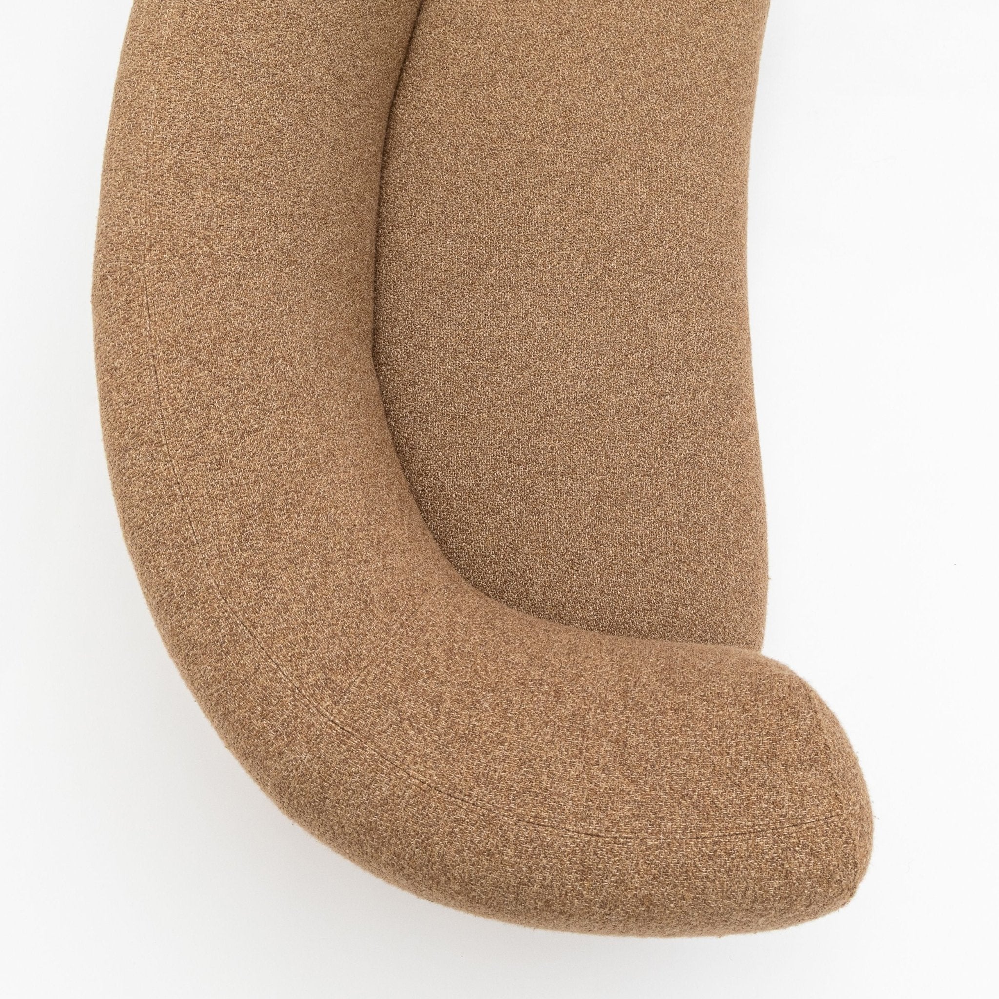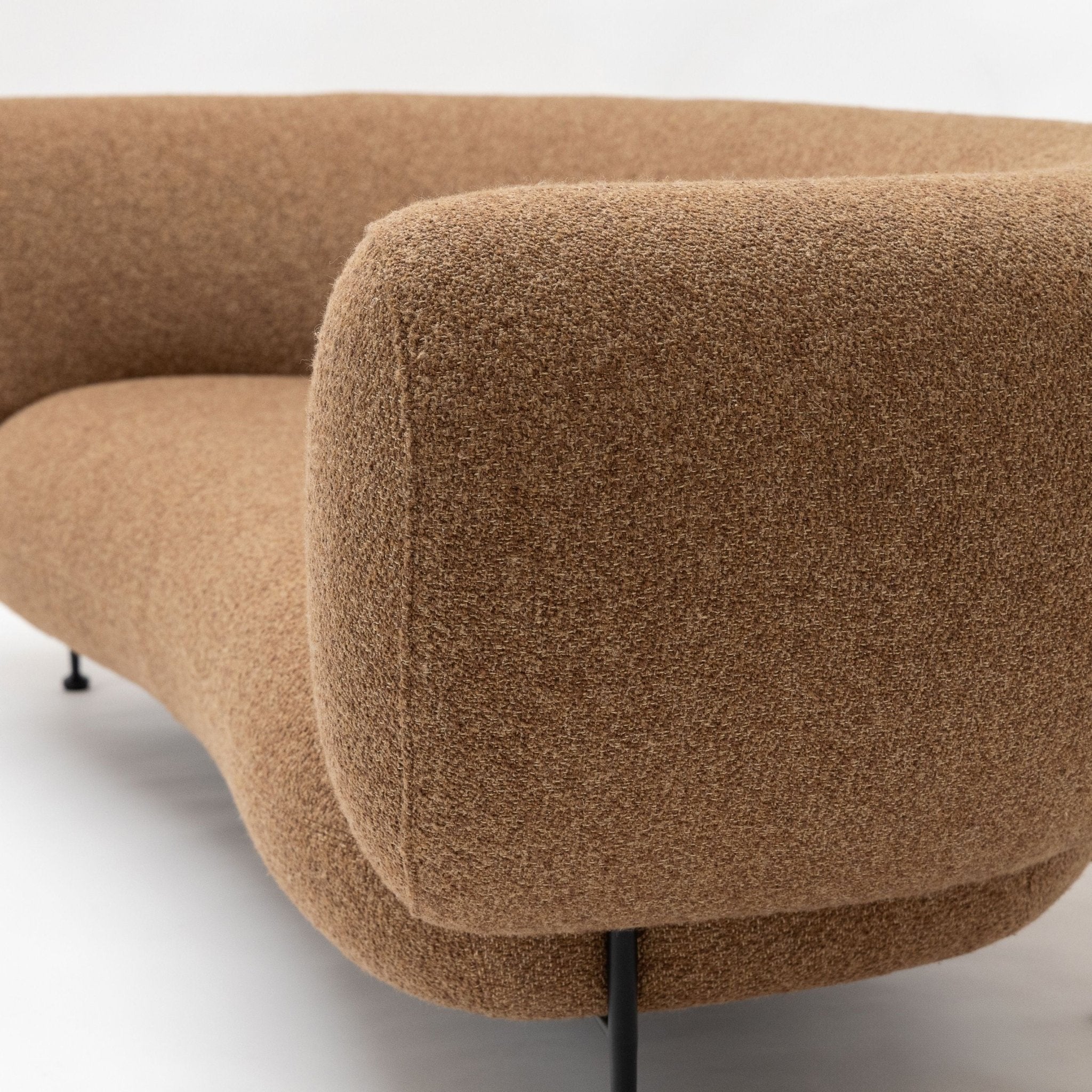 This sofa features a sculptural and organic design, characterised by smooth, flowing curves and rounded contours. Its bean-shaped form exudes a sense of natural elegance and fluidity, creating a striking focal point in any space. The undulating lines and ergonomic shape provide both aesthetic appeal and comfortable seating, embodying a harmonious balance between artistry and functionality.