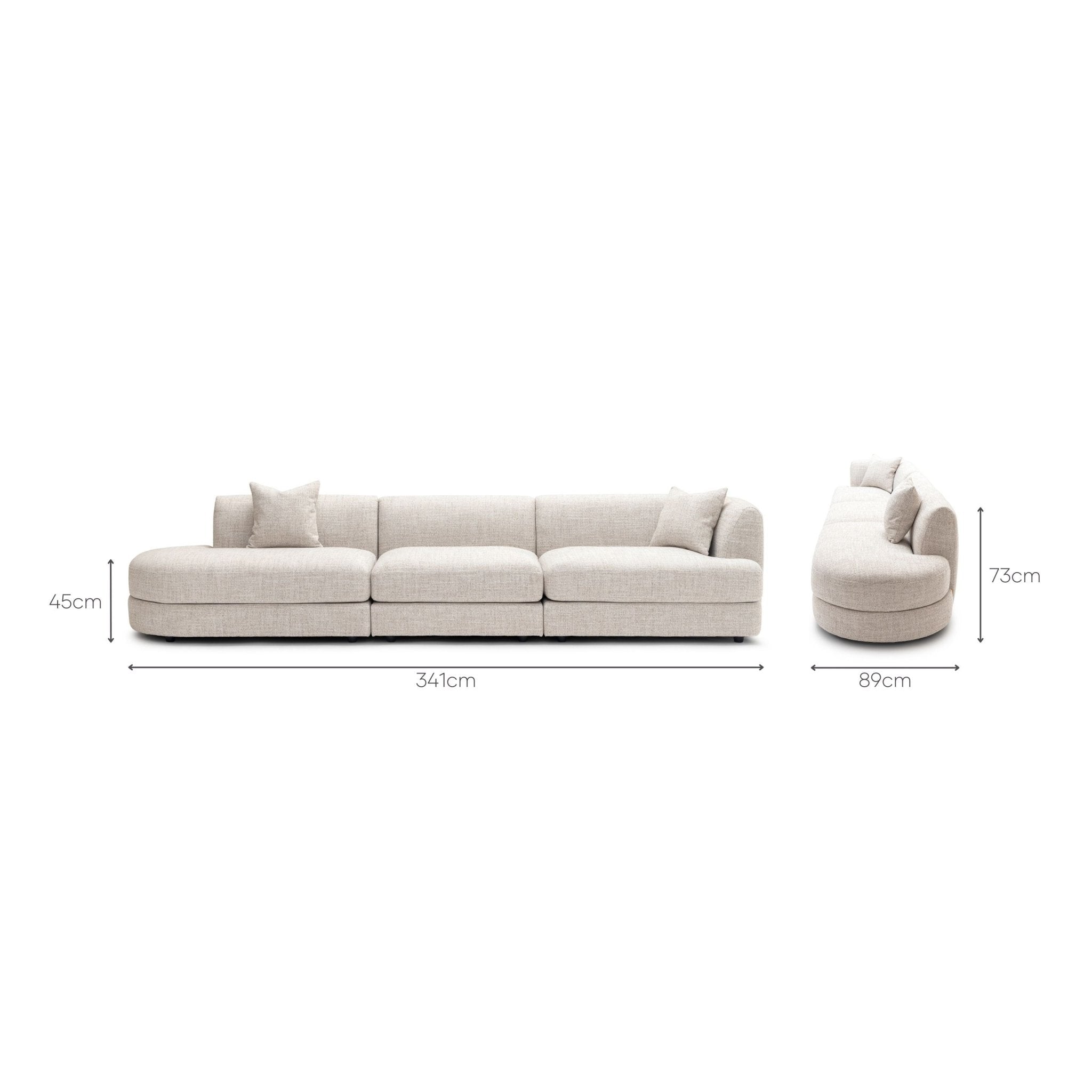| Dimensions | 341cmL x 89cmW x 73cmH |