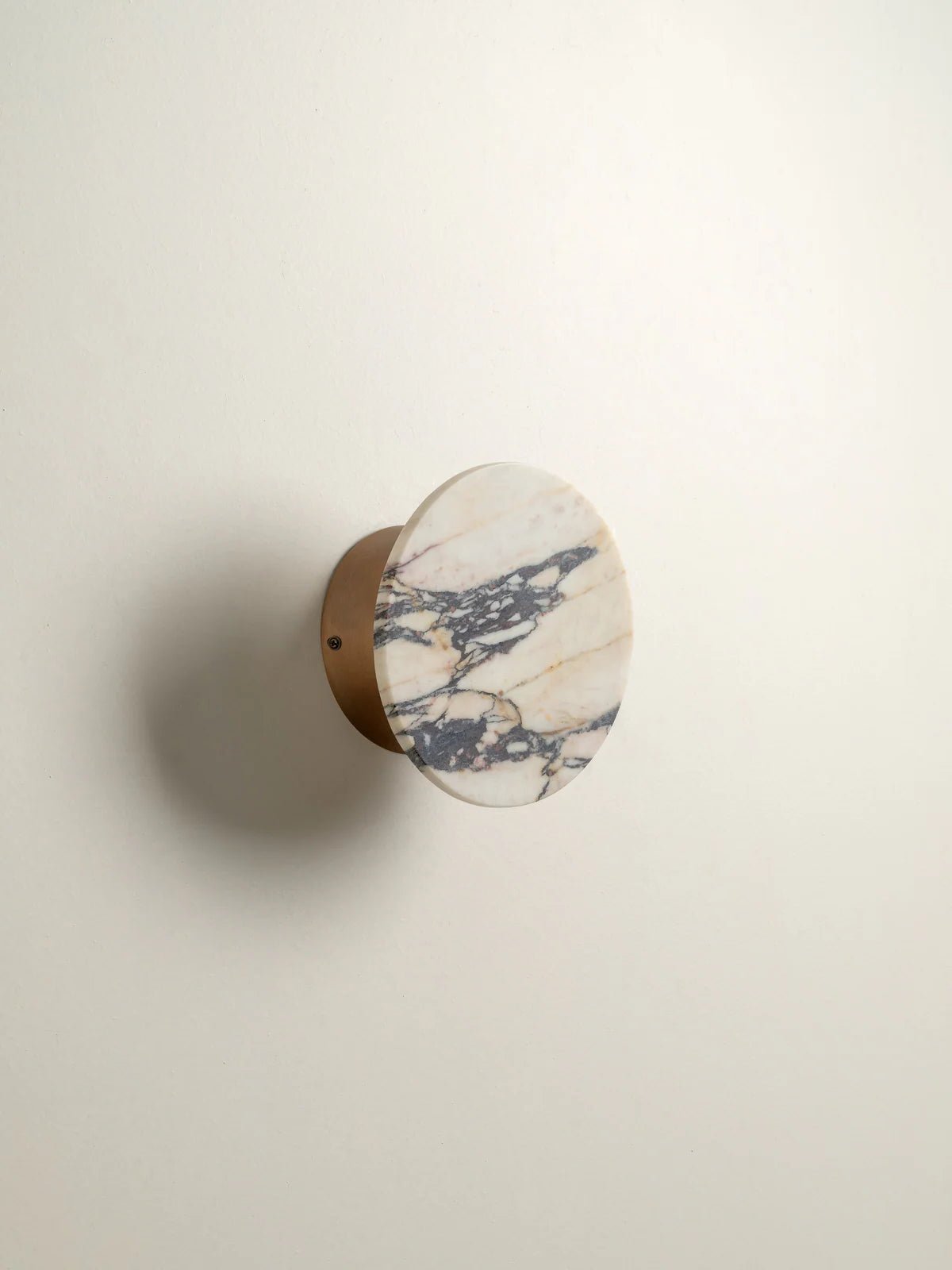 Artistic, versatile, generous. This wall light is a great example of what we always set out to achieve when we design our products. We aim to give more for less. A Calacatta Viola marble disk with fully integrated LEDs and an IP44 rating, which means it's suitable for use in bathrooms.